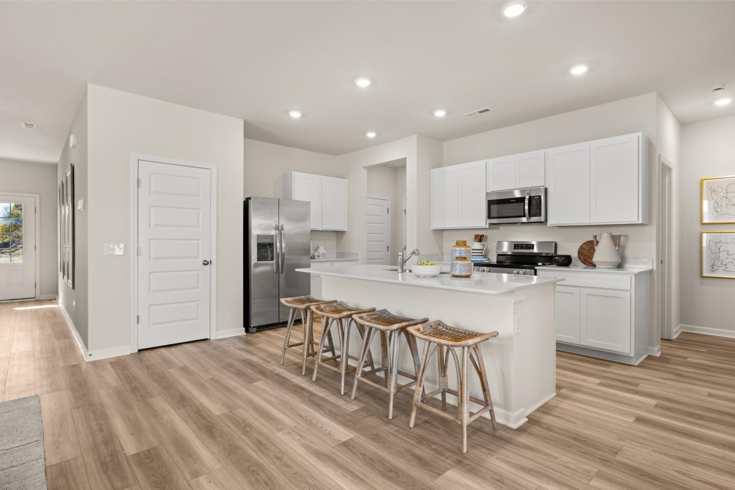This new two-story home features a pleasing contemporary design. At the heart of the first floor, the Great Room extends effortlessly to the dining room and modern kitchen in an open-plan layout. Flex space offers versatility. The second floor hosts a bonus room and four bedrooms including a spacious owner’s suite.