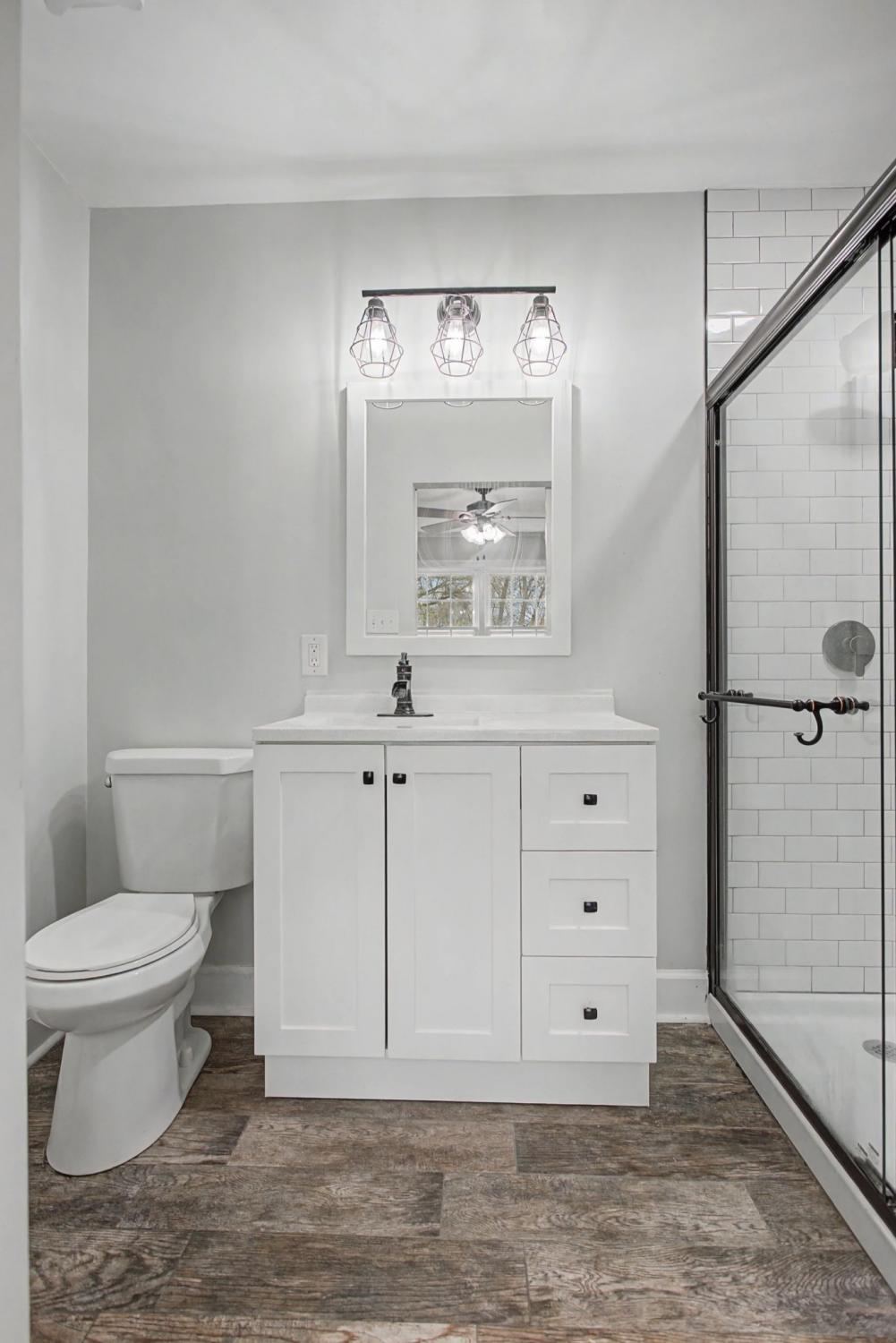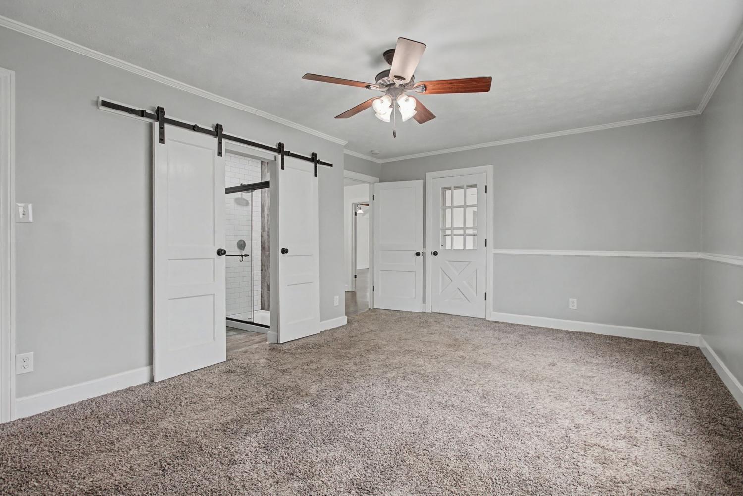 Beautiful 3-bedroom, 2 bath home situated on a spacious 2-acre lot in a quiet neighborhood in desirable Centerville. The stunning living room is the heart of the home, featuring soaring vaulted ceilings with a unique white shiplap finish, hardwood floors, a cozy gas fireplace, and two large ceiling fans. French doors lead to the bedroom wing, creating both charm and functionality. The kitchen offers granite countertops, white shaker cabinetry, and tile flooring with plenty of space for gathering and everyday living. Bedrooms are generously sized, and the primary bath includes vinyl flooring, a walk-in shower, and stylish barn doors for added character. Enjoy peaceful country living with room to spread out while still being conveniently located near town amenities. This property offers the perfect blend of comfort, style, and space both inside and out.