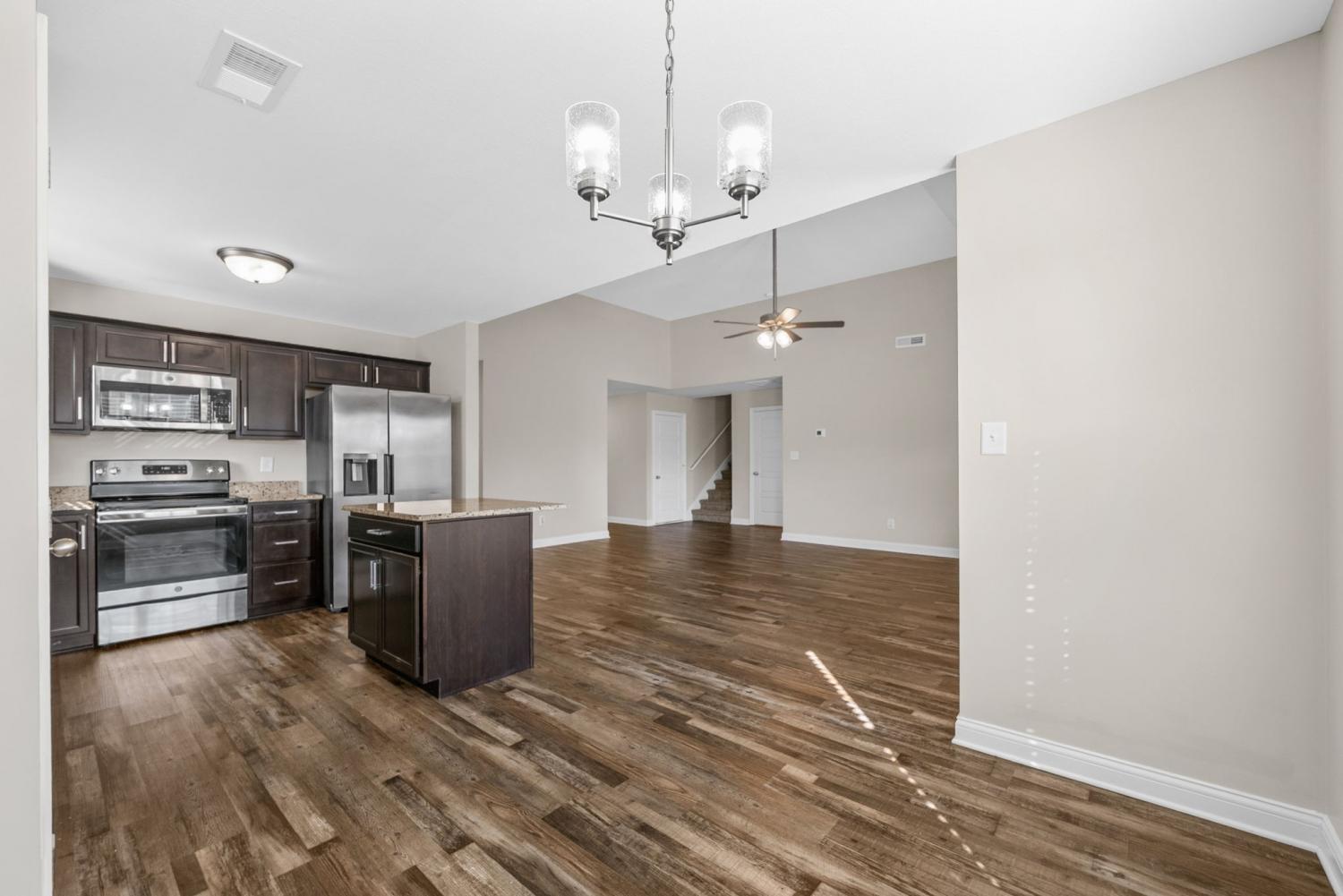 Private landlord! This stunning 2022-built ranch home has been meticulously maintained and is move-in ready for a new tenant. The open-concept main living area is perfect for gathering and entertaining. The living room features vaulted ceilings and a beautiful floor-to-ceiling shiplap fireplace with gas logs, creating a warm and inviting atmosphere. The kitchen includes an upgraded island, ample counter space, and a spacious pantry for excellent storage. Pet-friendly: $400 pet deposit and $25/month per pet.