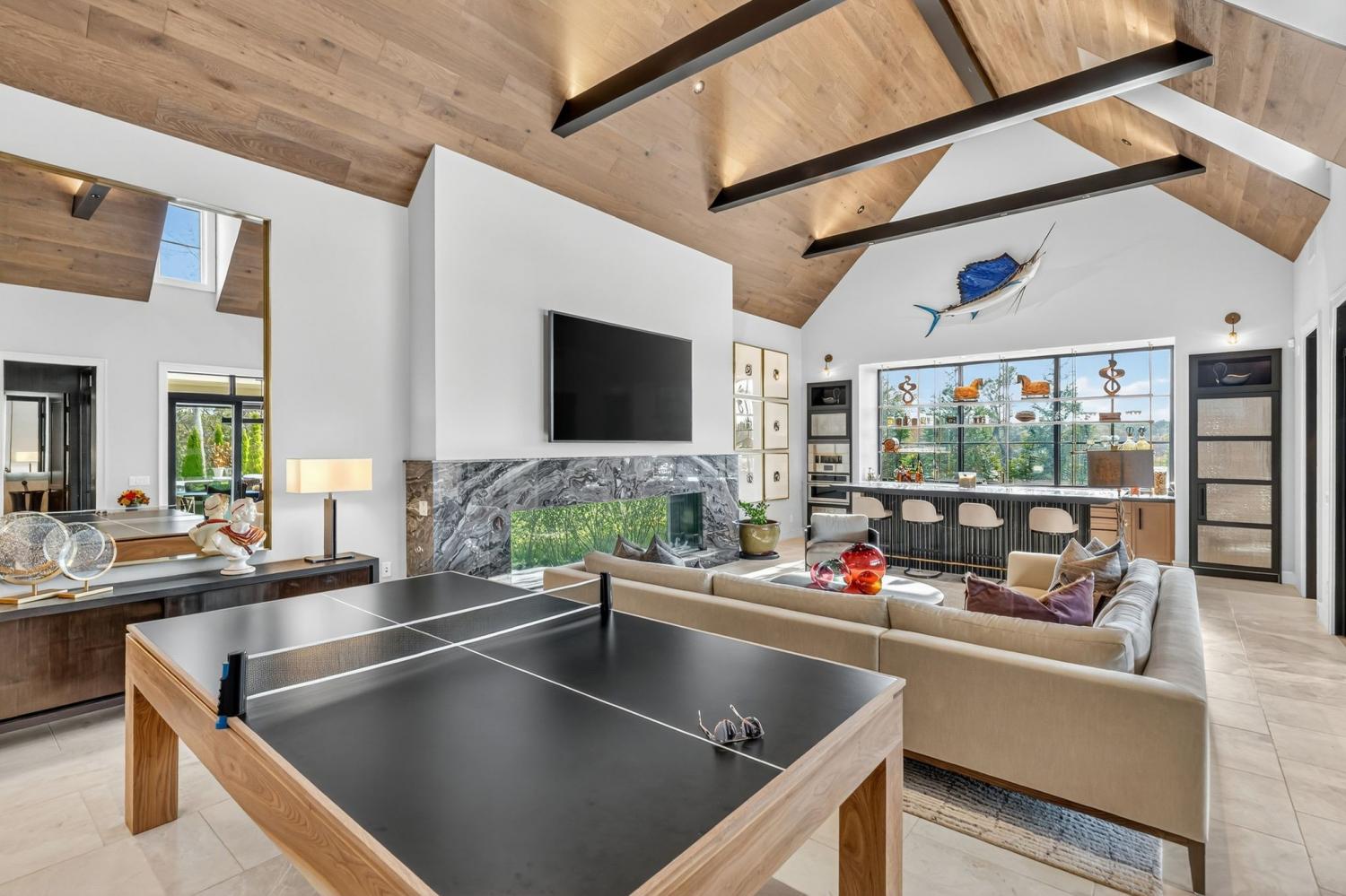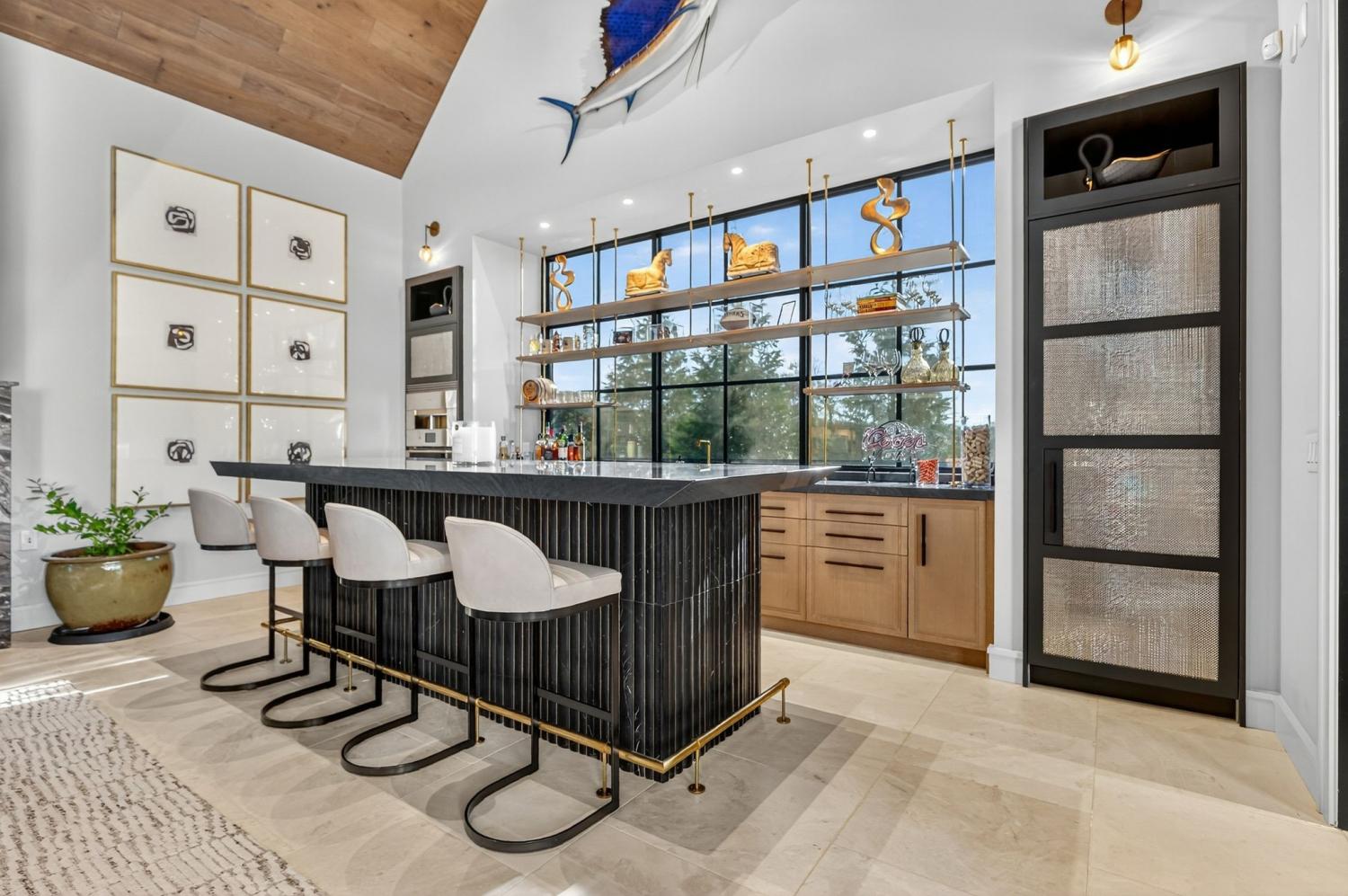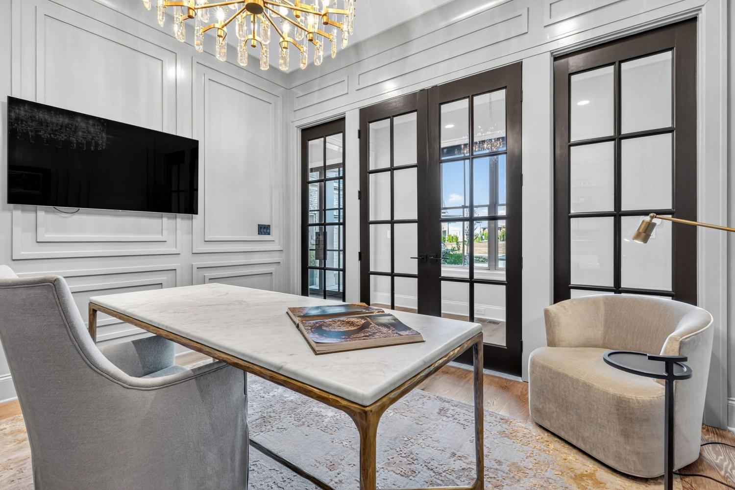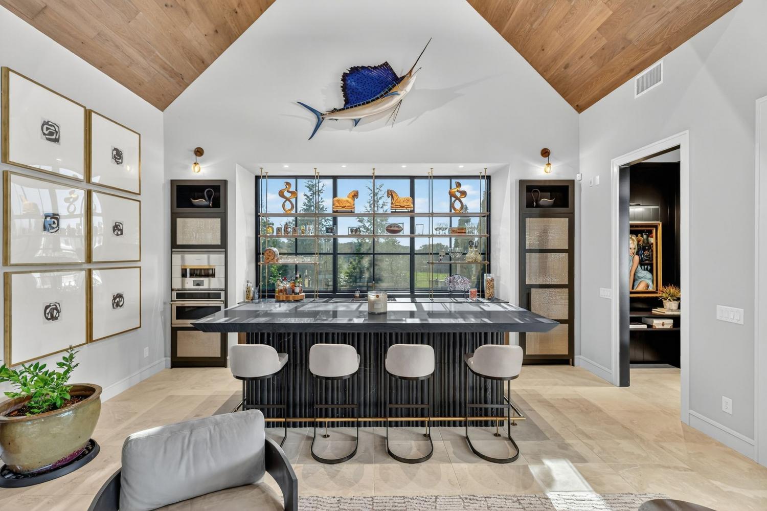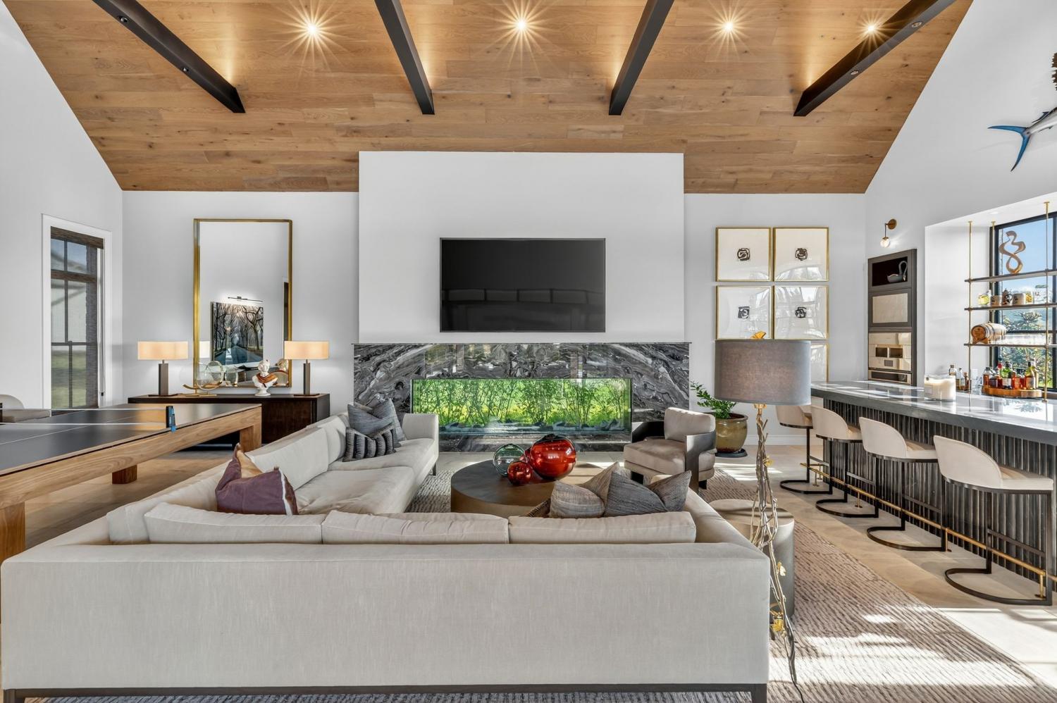 Discover refined luxury in the stunning custom built residence offering 5bdrms, 5 full baths, and 3 1/2 . Backing to a private common area-ideal for serene sunsets and total privacy. Step inside to find hardwood throughout excluding wet areas, 12 foot ceilings down and 10 foot ceilings up .Exceptional craftsmanship at every turn. Gourmet kitchen entertaining spaces flow seamlessly, highlighted by a climate controlled walk in wine room storing up to 252 bottles, perfect for the collector or entertainer. Primary suite is a true retreat featuring a cozy fireplace, remote controlled shades and 2 custom walk in closets. Upstairs, fitness room, state of the art medial room equipped with Della projector system. Step out side to your private resort a 20x50 gunite pool with hot tub, surrounded by expansive outdoor living. The pool house showcases travertine flooring, a striking 10 foot fireplace, electric shades, and ample space for gatherings. This home is filled with upgrades and details can be found in media. Your personal paradise awaits.