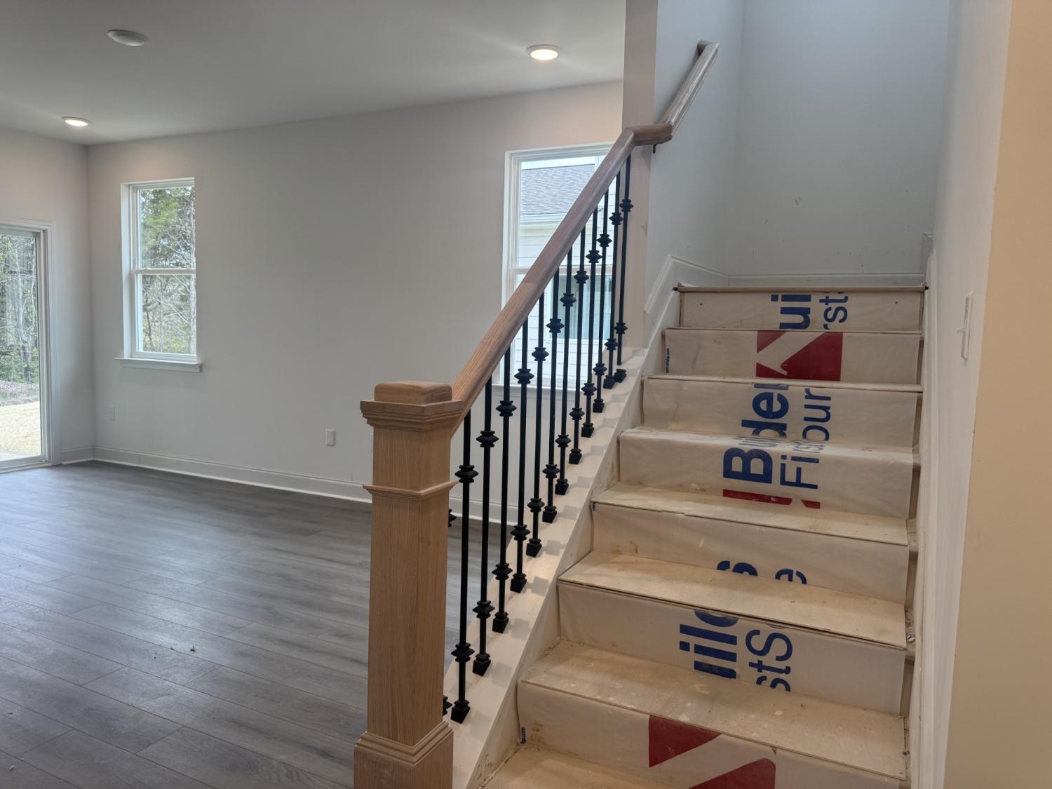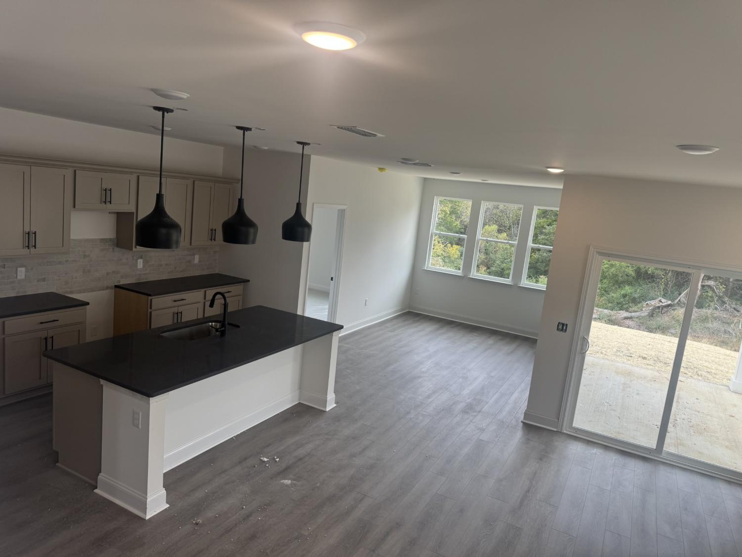 Lot 154. This open-concept Blake floorplan by Ashton Woods is full of natural light and plenty closet space. Enjoy the three large windows in the dining area adjacent to the kitchen which includes an extra long island and designer-curated finishes from the industrial Foundry Collection such as black modern pendant lights, brick tile backsplash, Manhattan Gray quartz counters, pebble cabinets with black hardware, and a single-bowl stainless sink. Soak in the wooded view from the covered back patio. Downstairs you'll find an inviting guest retreat with full bath as well as the primary suite with tray ceiling. The primary bath features dual vanities, easy access shower with tiled bench, and a walk-in closet. Oak stairs lead to an upstairs loft as well as three large secondary bedrooms each with spacious closets. An additional full bath with dual vanity is centered upstairs. See sales agent for current incentives.