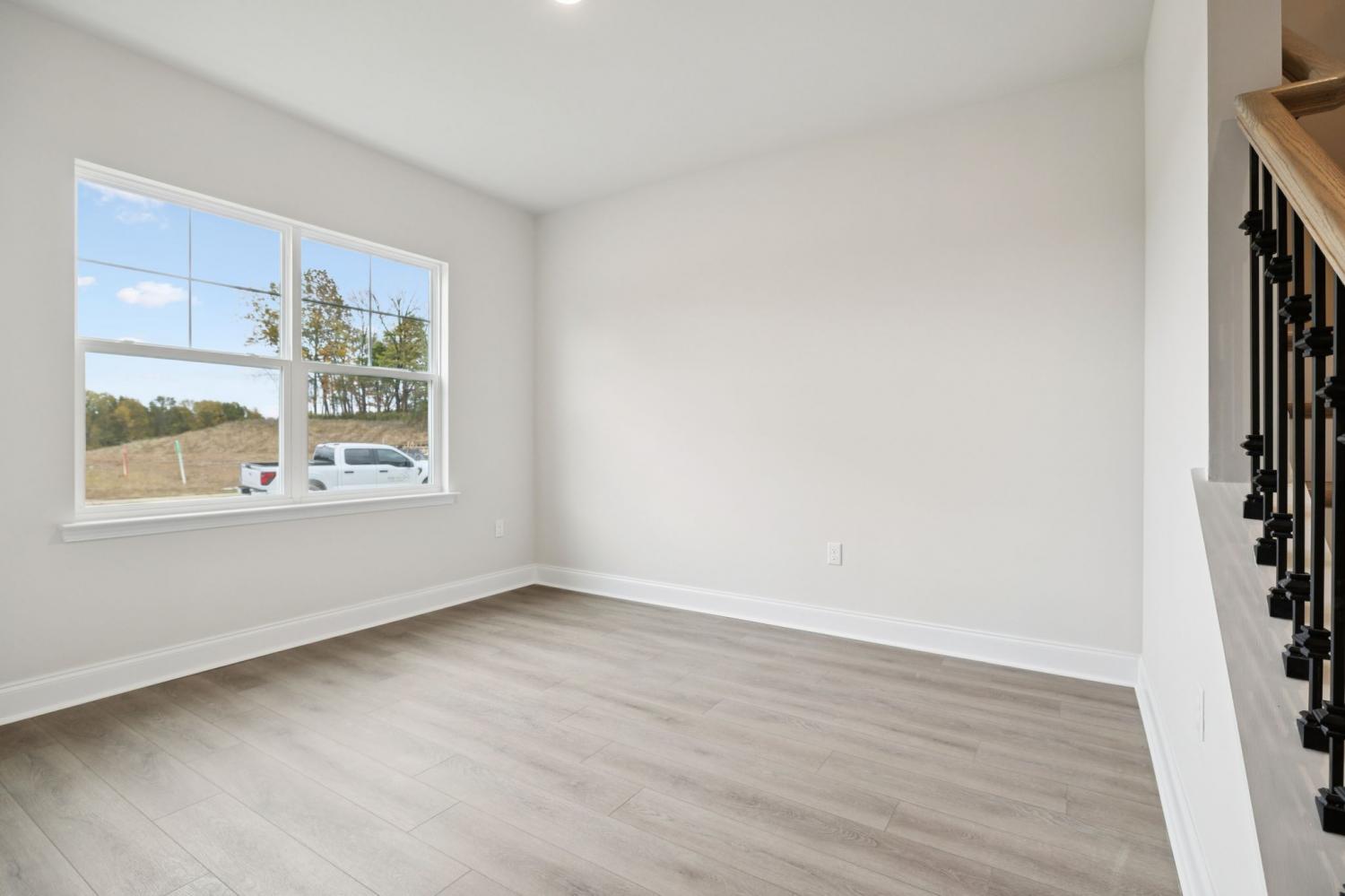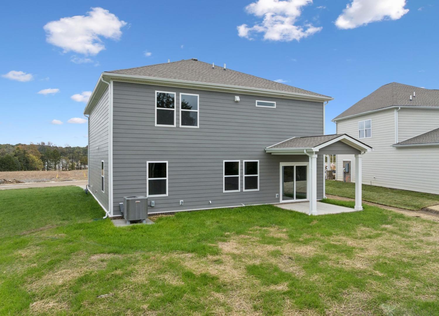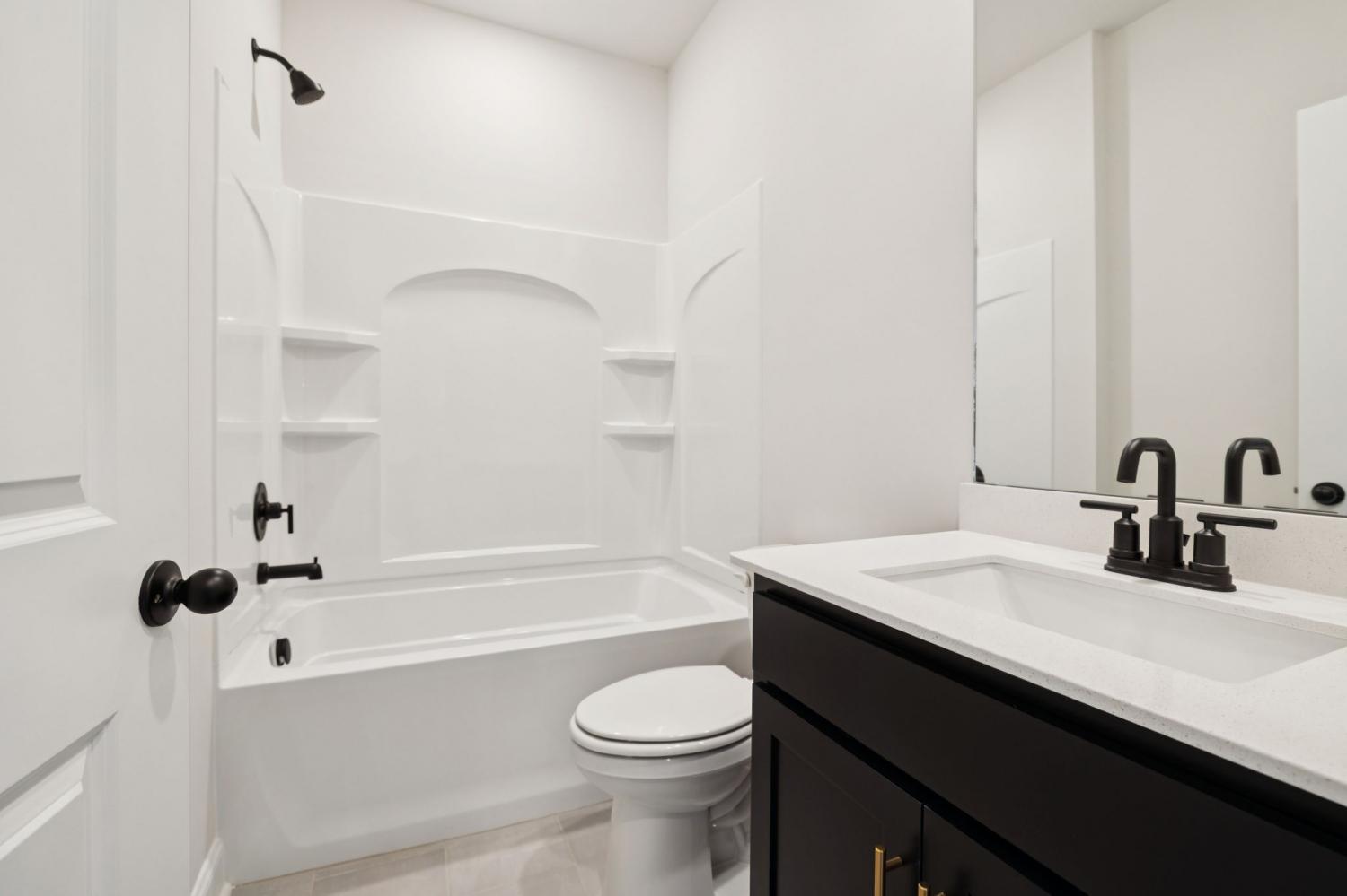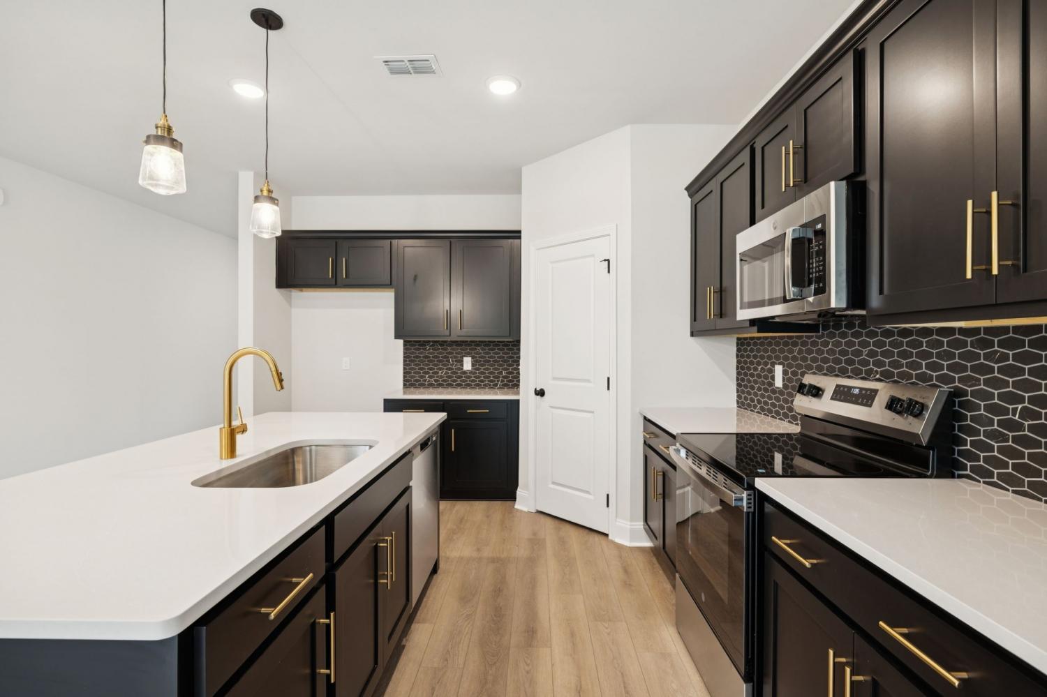 Lot 156. This open-concept Bartlett floorplan by Ashton Woods has spacious living areas ideal for entertaining. The L-shaped layout features the dining area adjacent to the kitchen which includes designer-curated finishes from the luxurious Noir Collection such as black and gold pendant lights, black tile backsplash, grey quartz counters, black cabinets with gold hardware, and a single-bowl stainless sink. Enjoy outdoor living on this wooded lot with a covered back porch. Flex room off the foyer is suitable for a home office, formal dining or sitting room. Upstairs you'll find a versatile loft space and oversized primary suite with large walk-in closet as well as three secondary bedrooms, additional full bath with dual vanity, and upstairs laundry room. See sales agent for amazing holiday incentives.