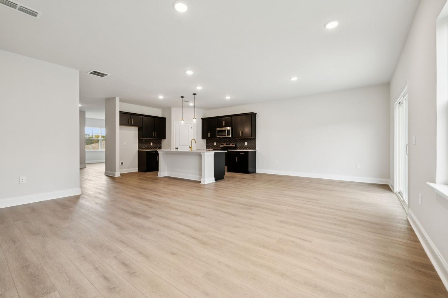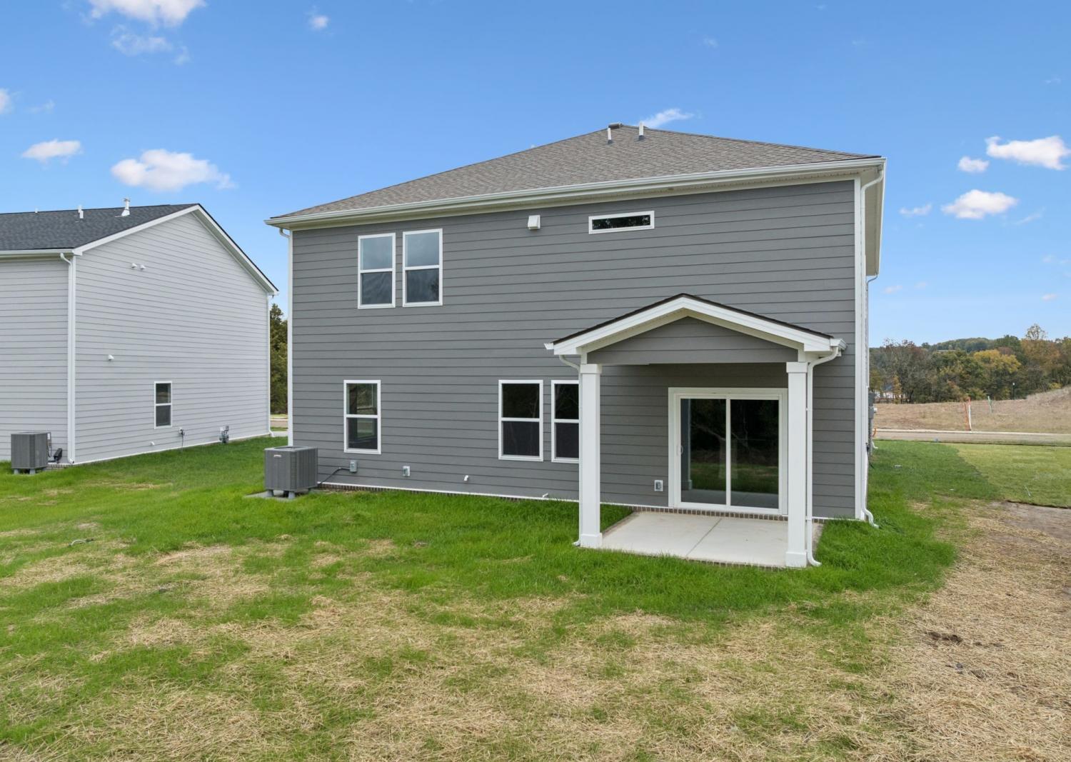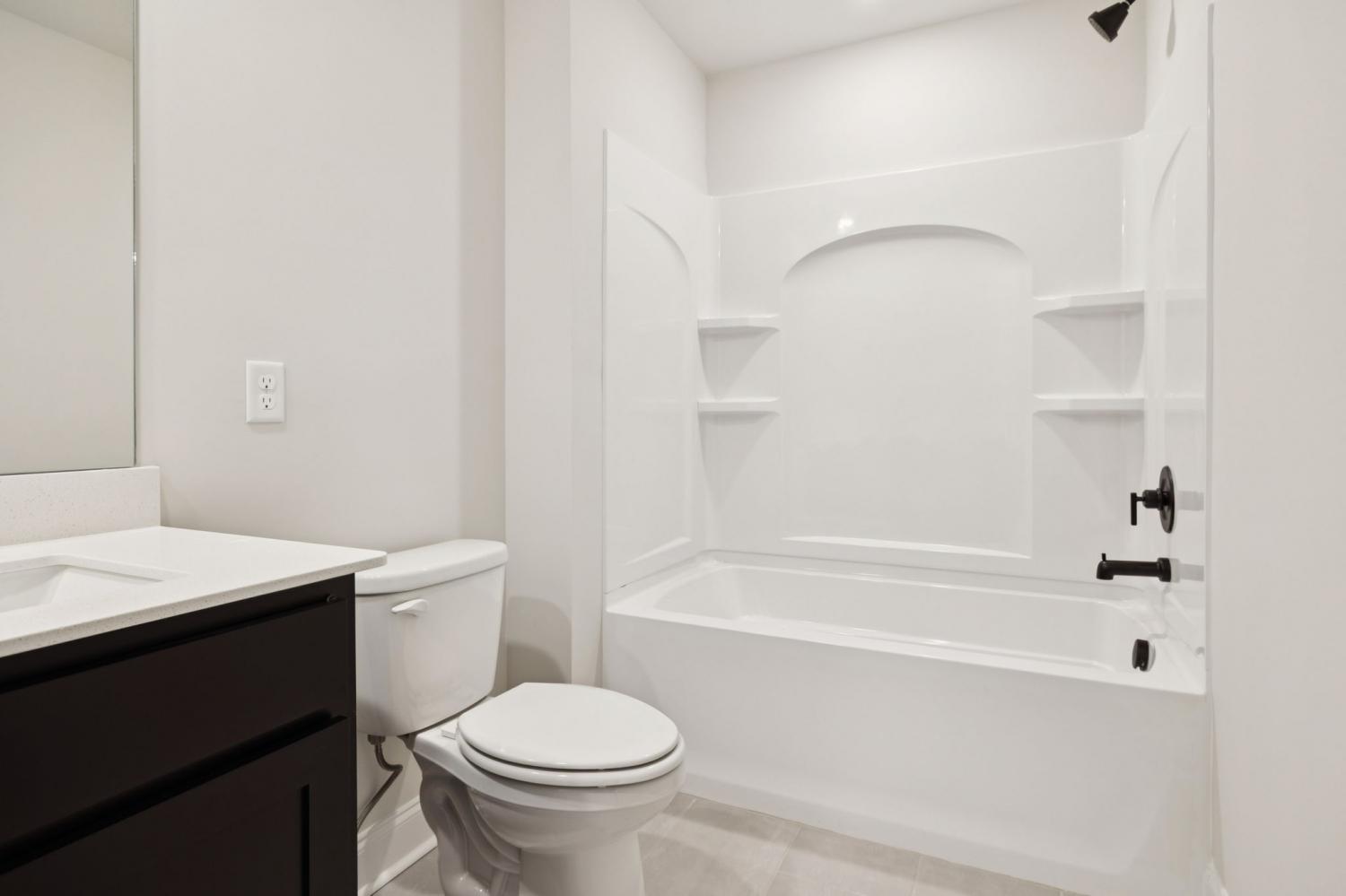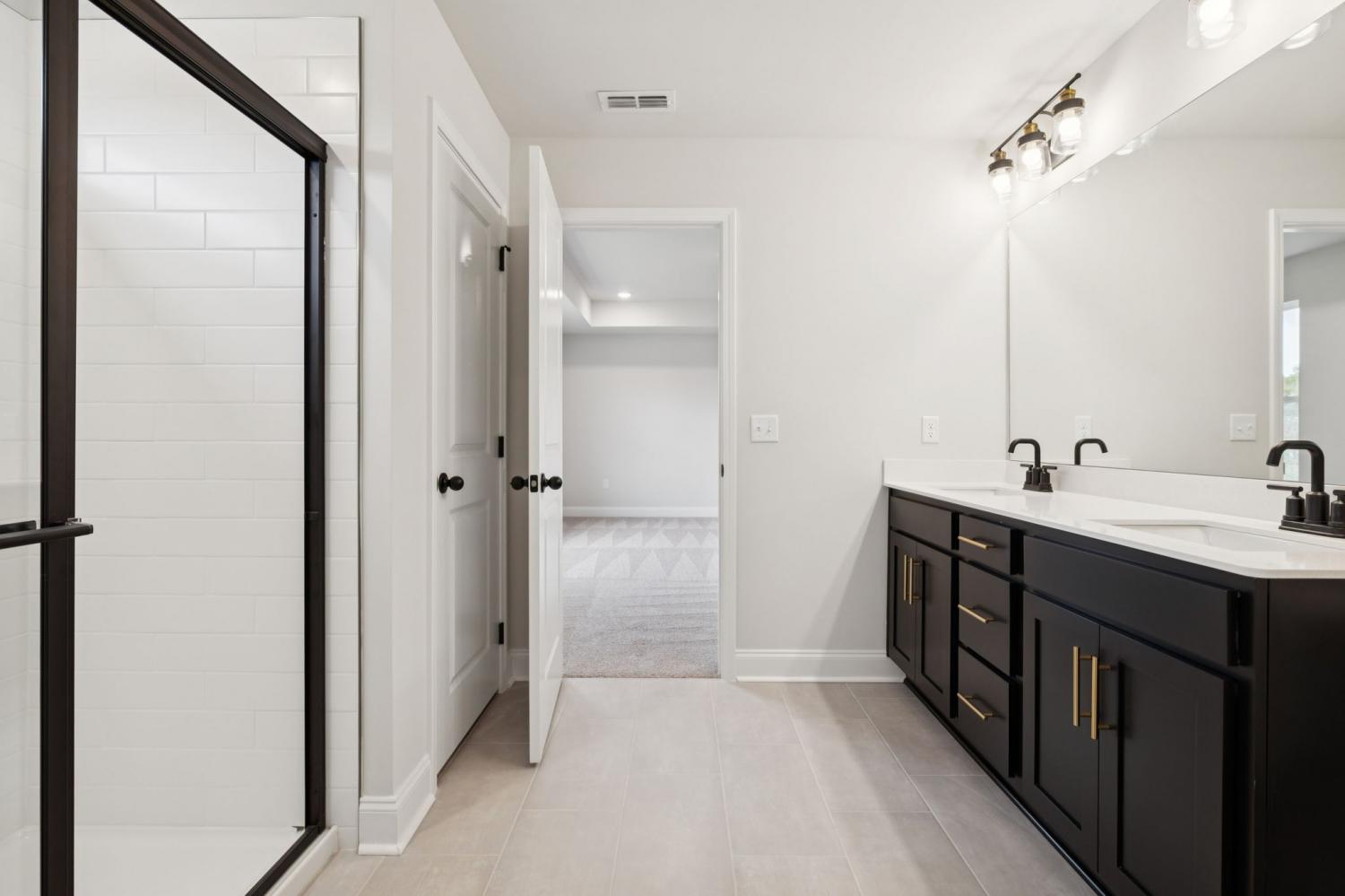 Lot 156. This open-concept Bartlett floorplan by Ashton Woods has spacious living areas ideal for entertaining. The L-shaped layout features the dining area adjacent to the kitchen which includes designer-curated finishes from the luxurious Noir Collection such as black and gold pendant lights, black tile backsplash, grey quartz counters, black cabinets with gold hardware, and a single-bowl stainless sink. Enjoy outdoor living on this wooded lot with a covered back porch. Flex room off the foyer is suitable for a home office, formal dining or sitting room. Upstairs you'll find a versatile loft space and oversized primary suite with large walk-in closet as well as three secondary bedrooms, additional full bath with dual vanity, and upstairs laundry room. See sales agent for amazing holiday incentives.