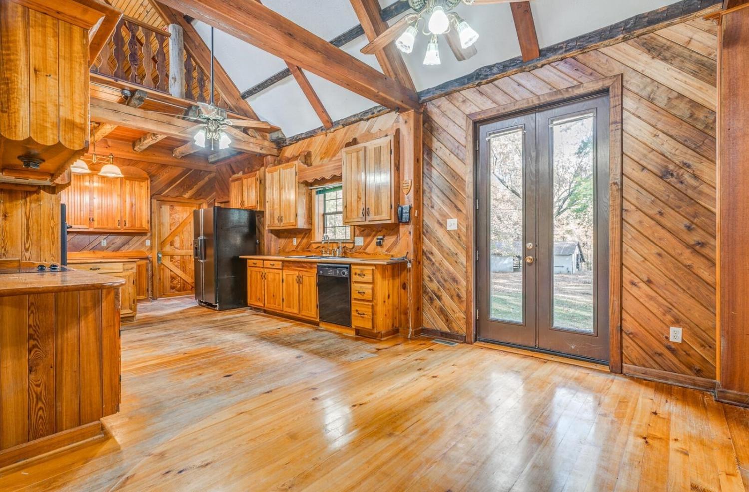 Custom built ranch style home with metal roof on 6.23 acres +- This is not a log cabin. Rustic built out of heart pine wood. Approx. 2,221 sq ft of living space with open concept. The unique 1.1 story home offers privacy, space and potential. The home sits back off the road through a driveway lined with beautiful pine trees. Large workshop with concrete floor once used as a sawmill to harvest the rare heart pine wood. This land was once used to stable horses. So horses are welcome. This is two parcels. 4624 was demolished. Price reflects needed updates. Conventional loan or cash. Open Sunday Nov. 23 from 2-4.