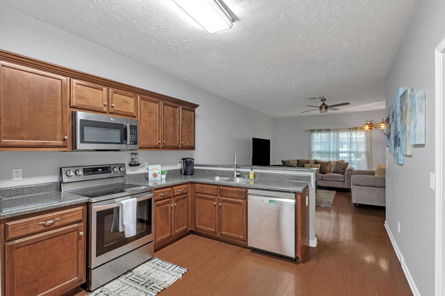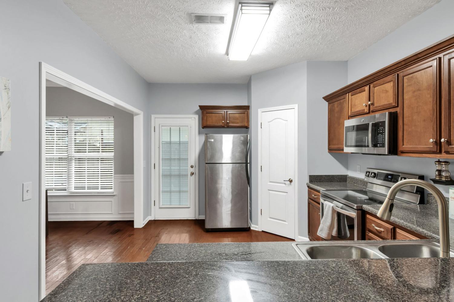 Welcome home! This beautiful townhouse has an open floor plan featuring 2 bedrooms with walk-in closets each with their own bathrooms, 2 1/2 Baths, and 2 assigned parking spaces w/ extra visitor parking. Convenient to I-24 & restaurants & shopping. Hardwood floors down, and stainless steel appliances. Unit has a private fenced patio w/attractive landscaping & added storage. Make this one your new home today!