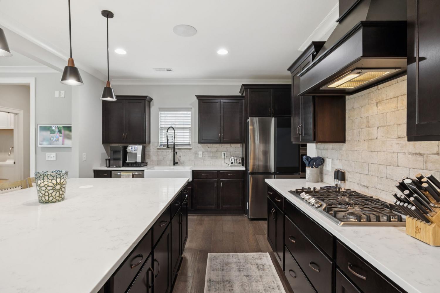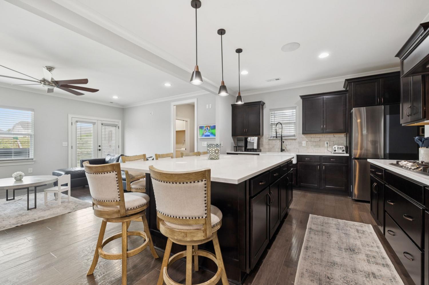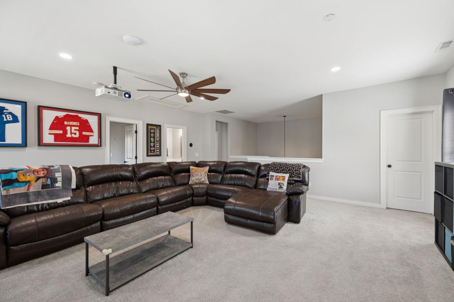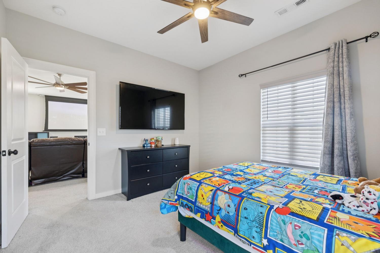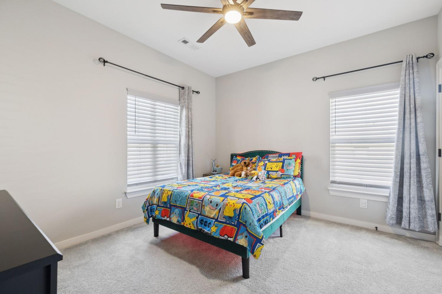 Pre-Inspection completed and ONE YEAR HOME WARRANTY INCLUDED! This stunning 4-bedroom, 3 full bath home offers 3,198 sq. ft. of thoughtfully designed living space in the highly sought-after Jackson Hills community complete with sidewalks, playground, pool, clubhouse, and even a wiffle ball field! This floor plan features 2 bedrooms on the main level, including the spacious primary suite with a walk-in closet, double vanities, tiled shower, and relaxing soaker tub. The open kitchen is an entertainer’s dream with quartz countertops, massive island, 5 burner gas stove, double ovens, walk-in pantry, and all kitchen appliances to remain. The bright and airy living room is filled with natural light, and a convenient drop zone is located just off the garage. A separate formal dining room, walk-in utility room & tankless water heater are some additional features you will love! Upstairs, you will find a large bonus room with a projection system to remain, two generously sized secondary bedrooms, & a full bathroom. Outdoors, enjoy an extended patio, fenced backyard, and full irrigation in front and back!