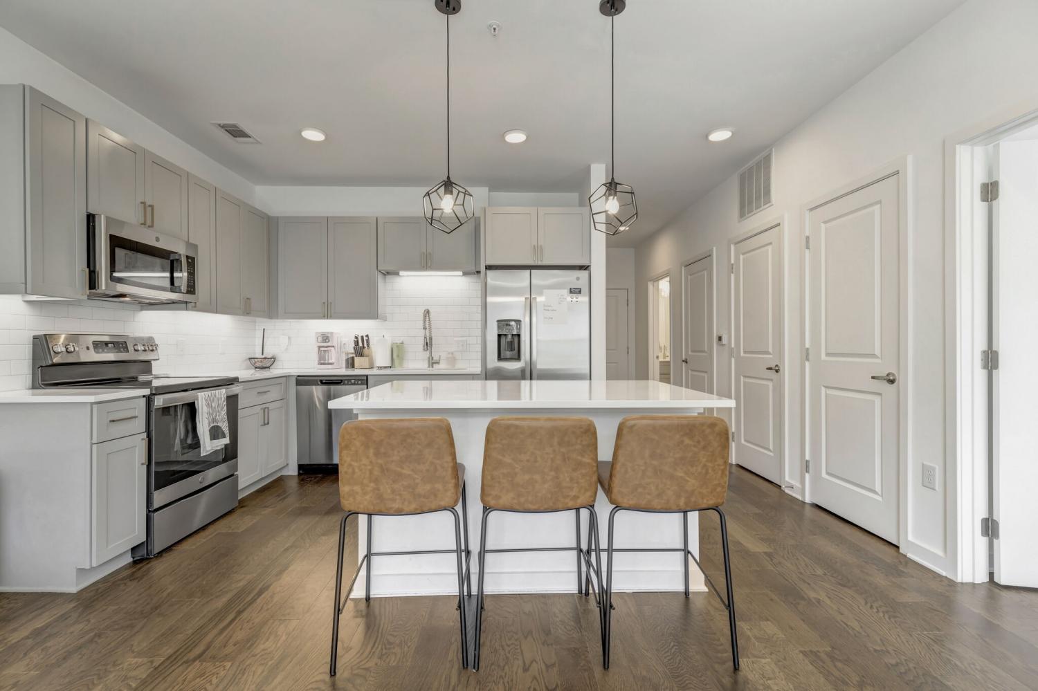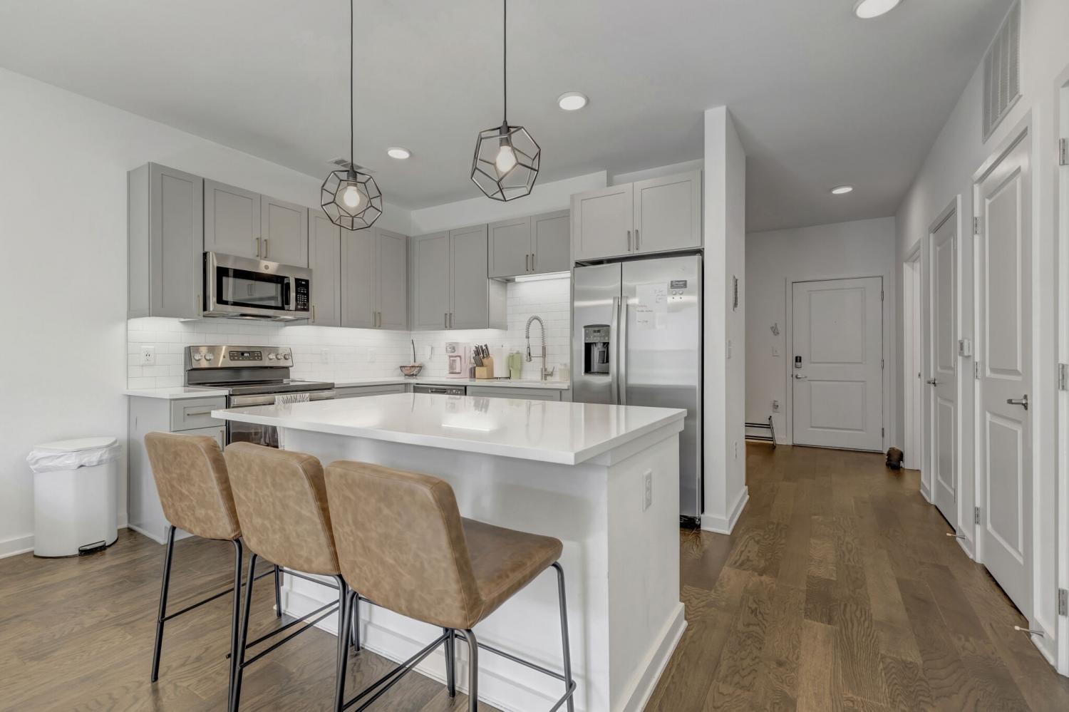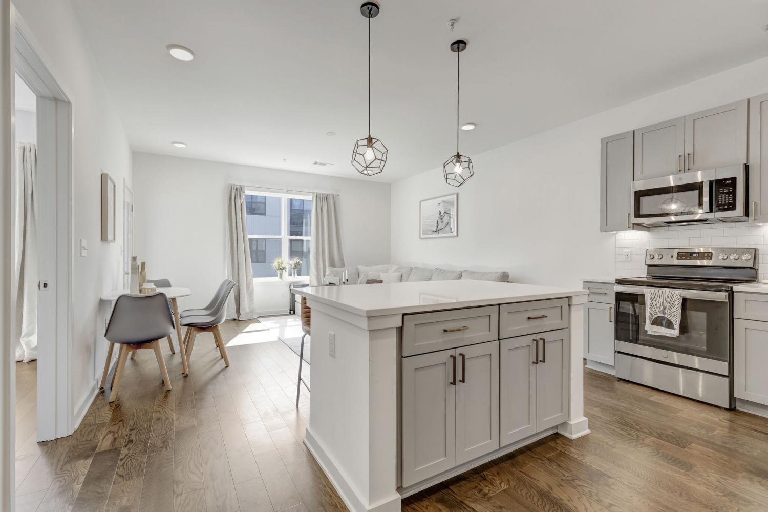 Stunning Silo West Condo in the heart of the Nations! This unit is light and bright and features beautiful hardwoods, stainless steel appliances, large walk in closet, tile shower and more. Flex Space is perfect for home office/guest bedroom. Assigned parking. Washer and Dryer included. Enjoy the community amenities including workout facility with yoga/stretch zone, pet spa, grill area, swimming pool, and owner's lounge. Minutes from Entertainment, Dining and Shopping with easy access to Downtown Nashville!