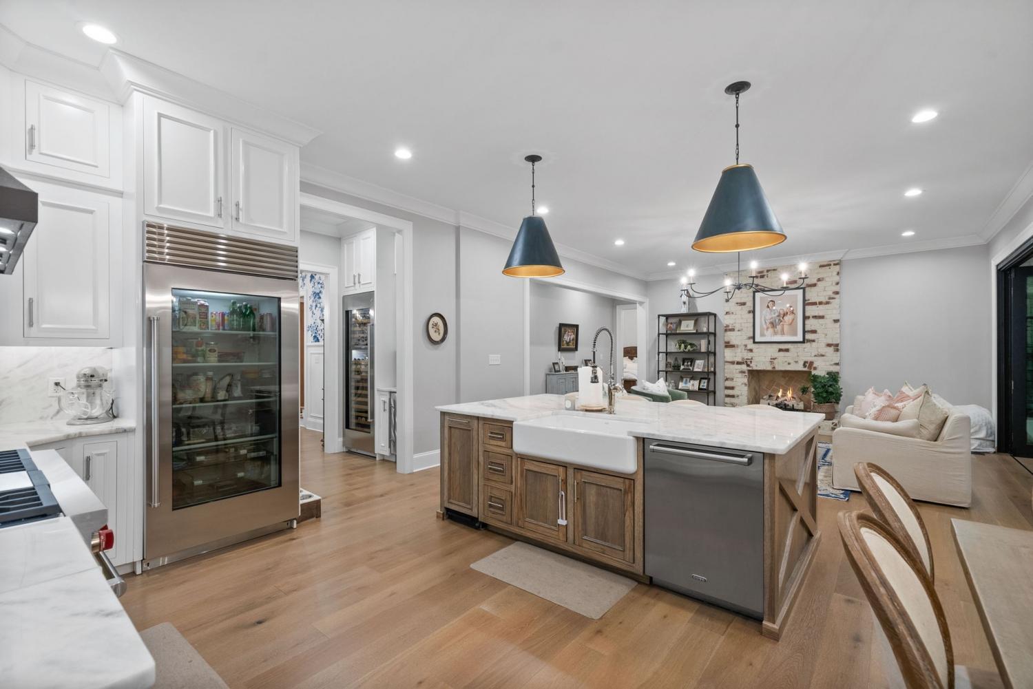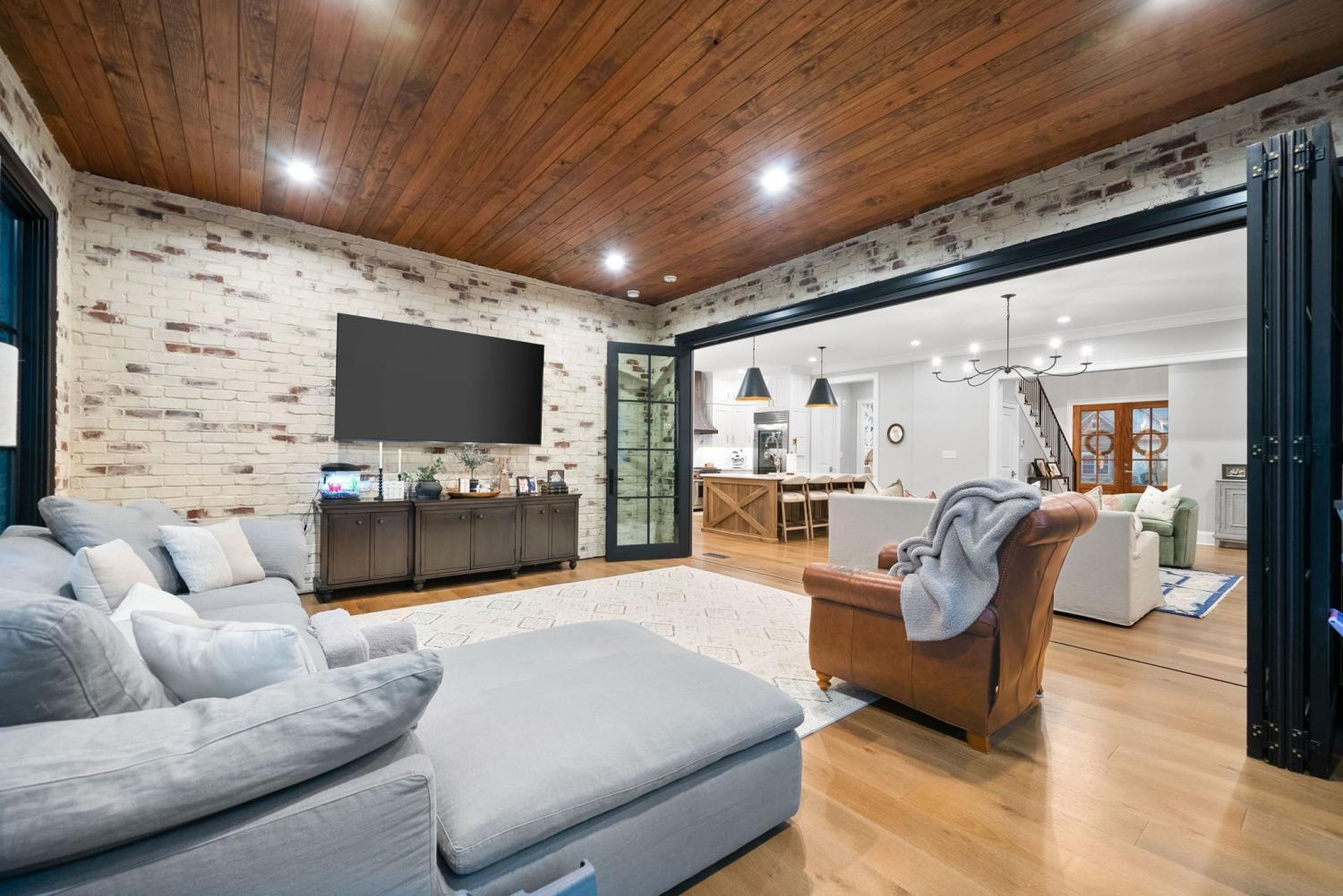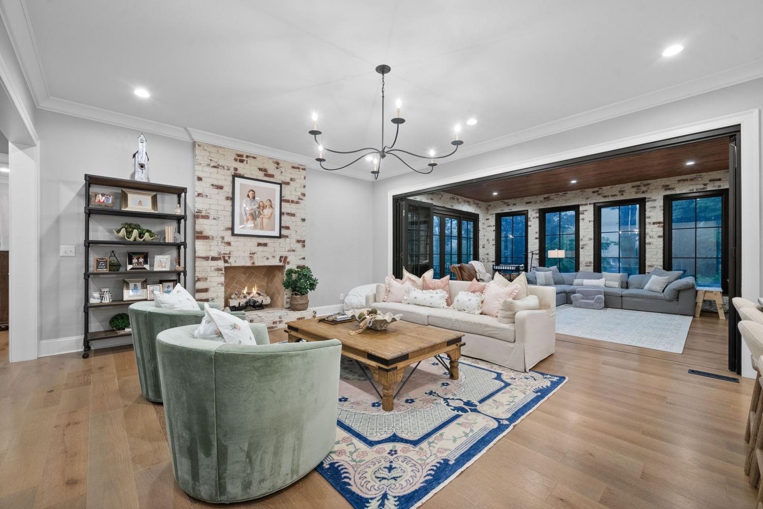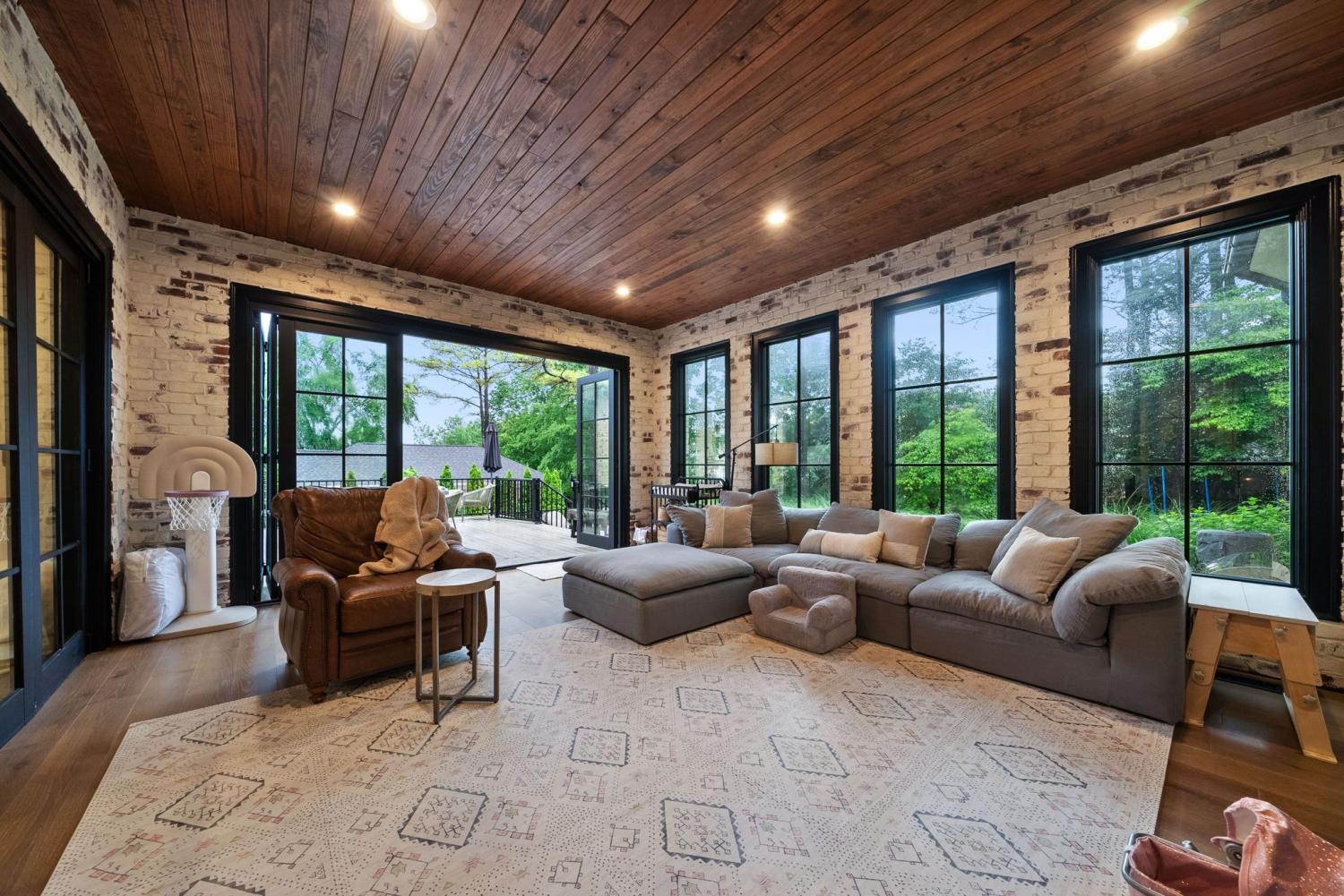 Relaunched and now offered at its professionally appraised value, this distinguished Stonehenge residence delivers an exceptional blend of luxury, craftsmanship, and thoughtful design. Lush, architect-curated landscaping, natural gas lanterns, 6" OrnaMetal copper gutters, and elegant cedar garage doors set an elevated tone from the moment you arrive. Inside, the home unfolds with sophisticated flow—an open living room and eat-in kitchen, a formal dining room, and a dedicated home office. The chef’s kitchen features Wolf/Subzero/Cove appliances, a 6-burner Wolf gas range with infrared griddle, quartzite countertops, a striking vent hood, walk-in pantry with Elkay bottle filler, Subzero wine storage, and a Scotsman nugget ice maker. A stunning sunroom expands the living experience with two full walls of glass accordion doors that open the length of the room in both the living room and the patio, create seamless indoor/outdoor living. The main-floor primary suite offers a limestone fireplace, vaulted ceilings, dual walk-in closets, and a spa-level bath with heated tile floors throughout, including a steam shower. Upstairs are three generous bedrooms with walk-in closets, a Jack-and-Jill bath, an additional full bath, an expansive bonus room over the 3-car garage, and a second laundry room. The tiered backyard provides multiple terraces for elegant entertaining, dining, or relaxation. A rare luxury offering in one of Clarksville’s most coveted communities.