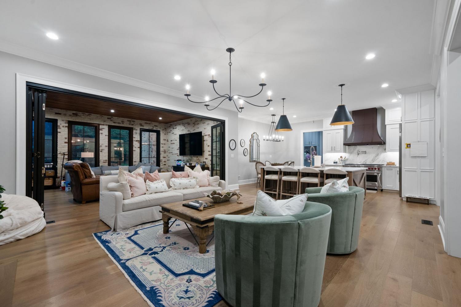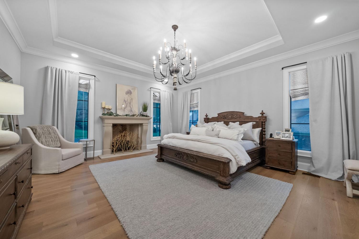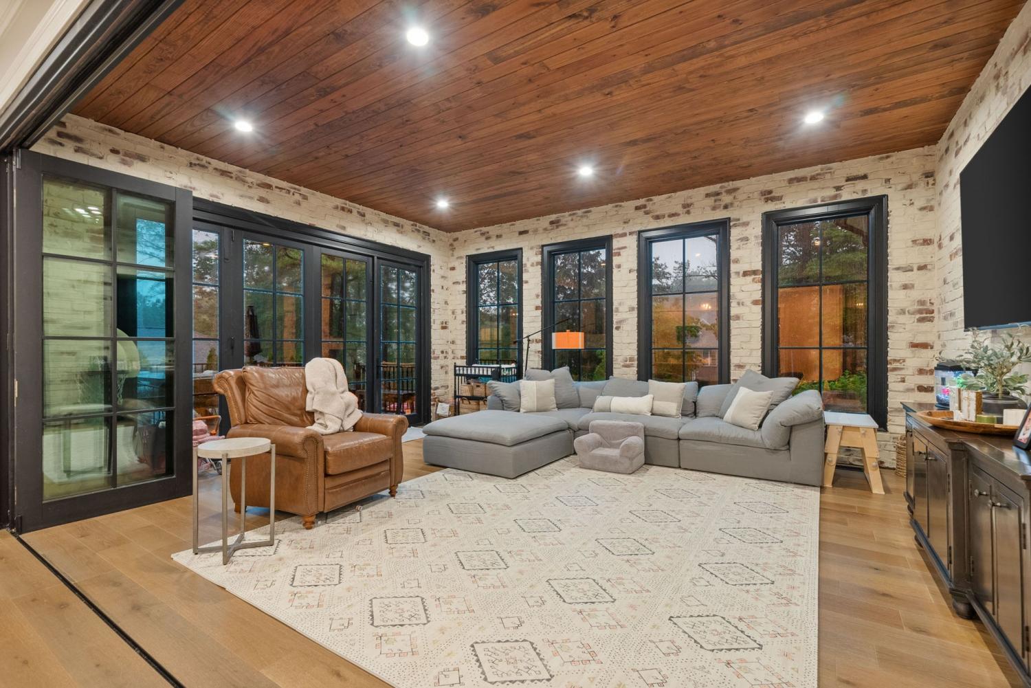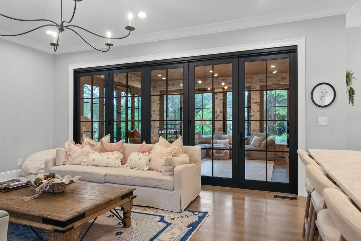Relaunched and now offered at its professionally appraised value, this distinguished Stonehenge residence delivers an exceptional blend of luxury, craftsmanship, and thoughtful design. Lush, architect-curated landscaping, natural gas lanterns, 6" OrnaMetal copper gutters, and elegant cedar garage doors set an elevated tone from the moment you arrive. Inside, the home unfolds with sophisticated flow—an open living room and eat-in kitchen, a formal dining room, and a dedicated home office. The chef’s kitchen features Wolf/Subzero/Cove appliances, a 6-burner Wolf gas range with infrared griddle, quartzite countertops, a striking vent hood, walk-in pantry with Elkay bottle filler, Subzero wine storage, and a Scotsman nugget ice maker. A stunning sunroom expands the living experience with two full walls of glass accordion doors that open the length of the room in both the living room and the patio, create seamless indoor/outdoor living. The main-floor primary suite offers a limestone fireplace, vaulted ceilings, dual walk-in closets, and a spa-level bath with heated tile floors throughout, including a steam shower. Upstairs are three generous bedrooms with walk-in closets, a Jack-and-Jill bath, an additional full bath, an expansive bonus room over the 3-car garage, and a second laundry room. The tiered backyard provides multiple terraces for elegant entertaining, dining, or relaxation. A rare luxury offering in one of Clarksville’s most coveted communities.