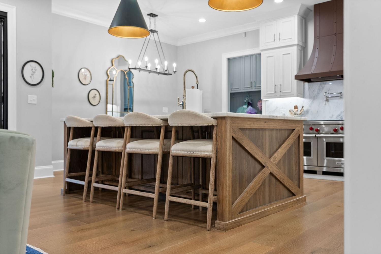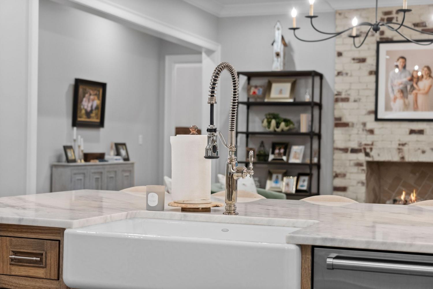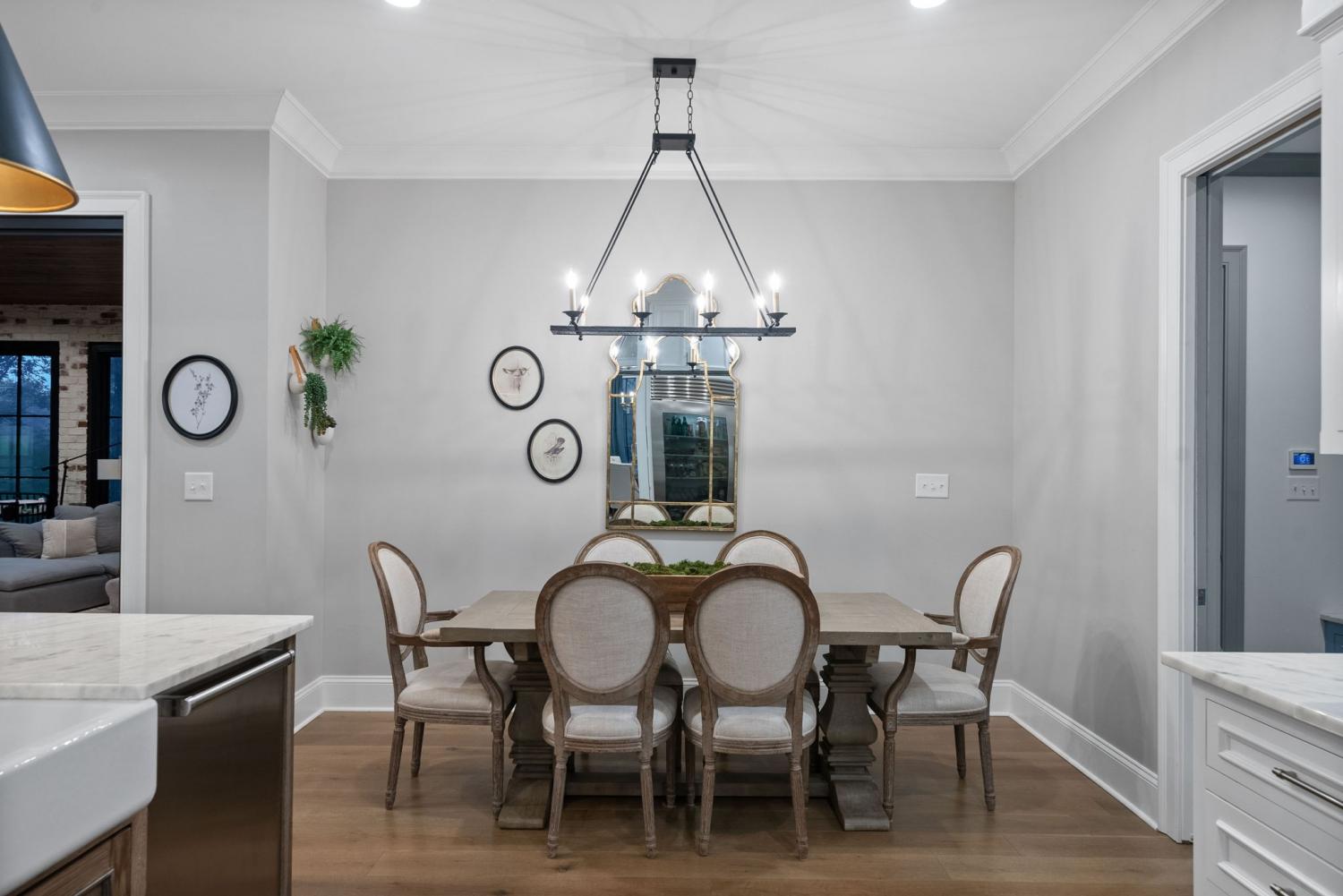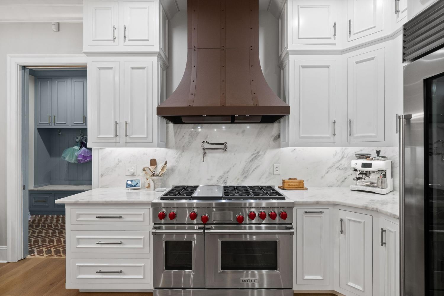 Relaunched and now offered at its professionally appraised value, this distinguished Stonehenge residence delivers an exceptional blend of luxury, craftsmanship, and thoughtful design. Lush, architect-curated landscaping, natural gas lanterns, 6" OrnaMetal copper gutters, and elegant cedar garage doors set an elevated tone from the moment you arrive. Inside, the home unfolds with sophisticated flow—an open living room and eat-in kitchen, a formal dining room, and a dedicated home office. The chef’s kitchen features Wolf/Subzero/Cove appliances, a 6-burner Wolf gas range with infrared griddle, quartzite countertops, a striking vent hood, walk-in pantry with Elkay bottle filler, Subzero wine storage, and a Scotsman nugget ice maker. A stunning sunroom expands the living experience with two full walls of glass accordion doors that open the length of the room in both the living room and the patio, create seamless indoor/outdoor living. The main-floor primary suite offers a limestone fireplace, vaulted ceilings, dual walk-in closets, and a spa-level bath with heated tile floors throughout, including a steam shower. Upstairs are three generous bedrooms with walk-in closets, a Jack-and-Jill bath, an additional full bath, an expansive bonus room over the 3-car garage, and a second laundry room. The tiered backyard provides multiple terraces for elegant entertaining, dining, or relaxation. A rare luxury offering in one of Clarksville’s most coveted communities.
