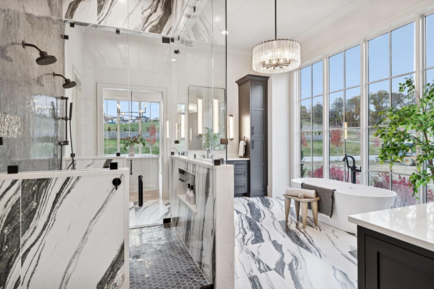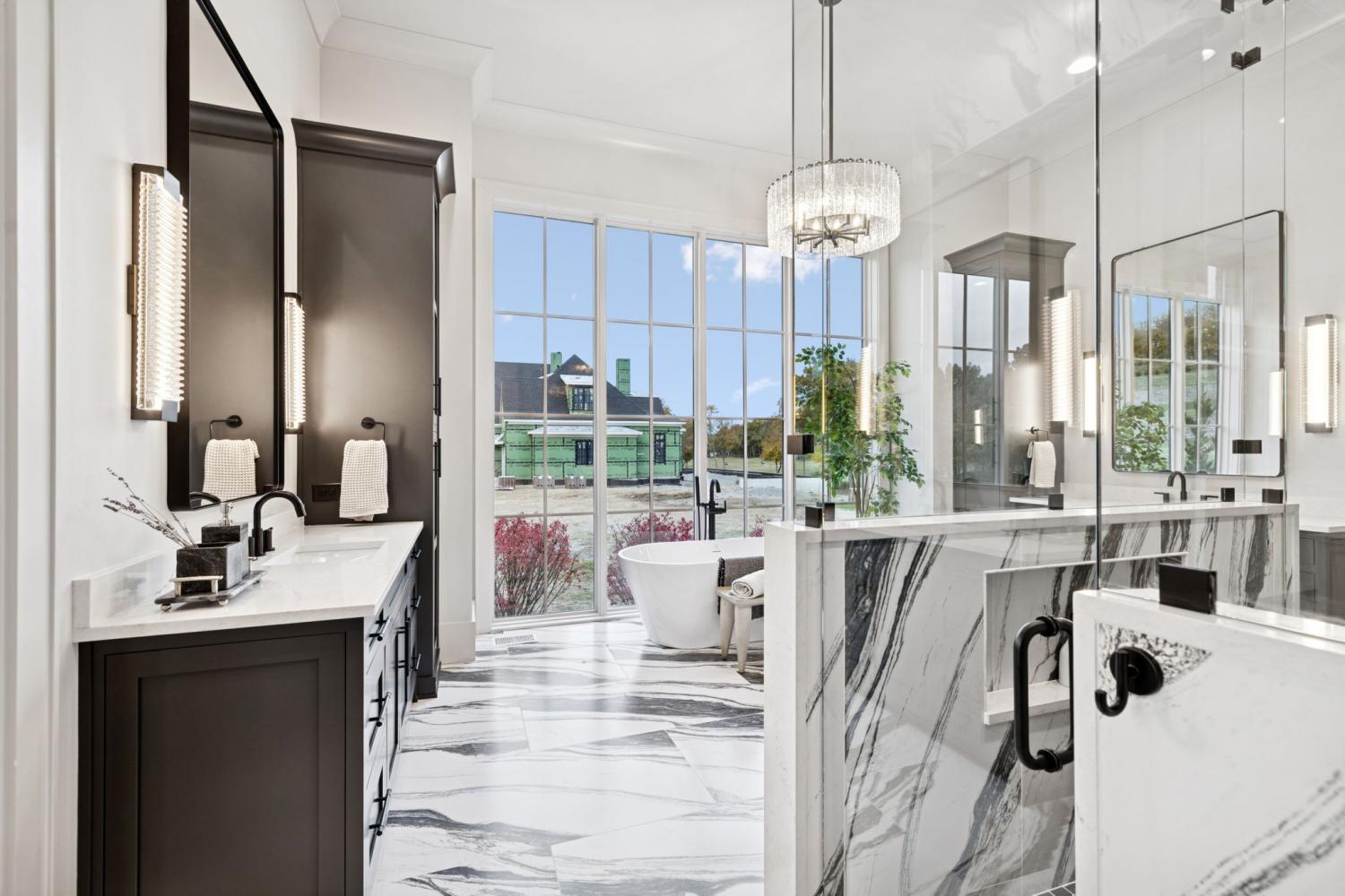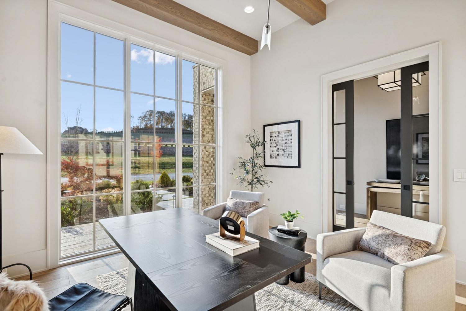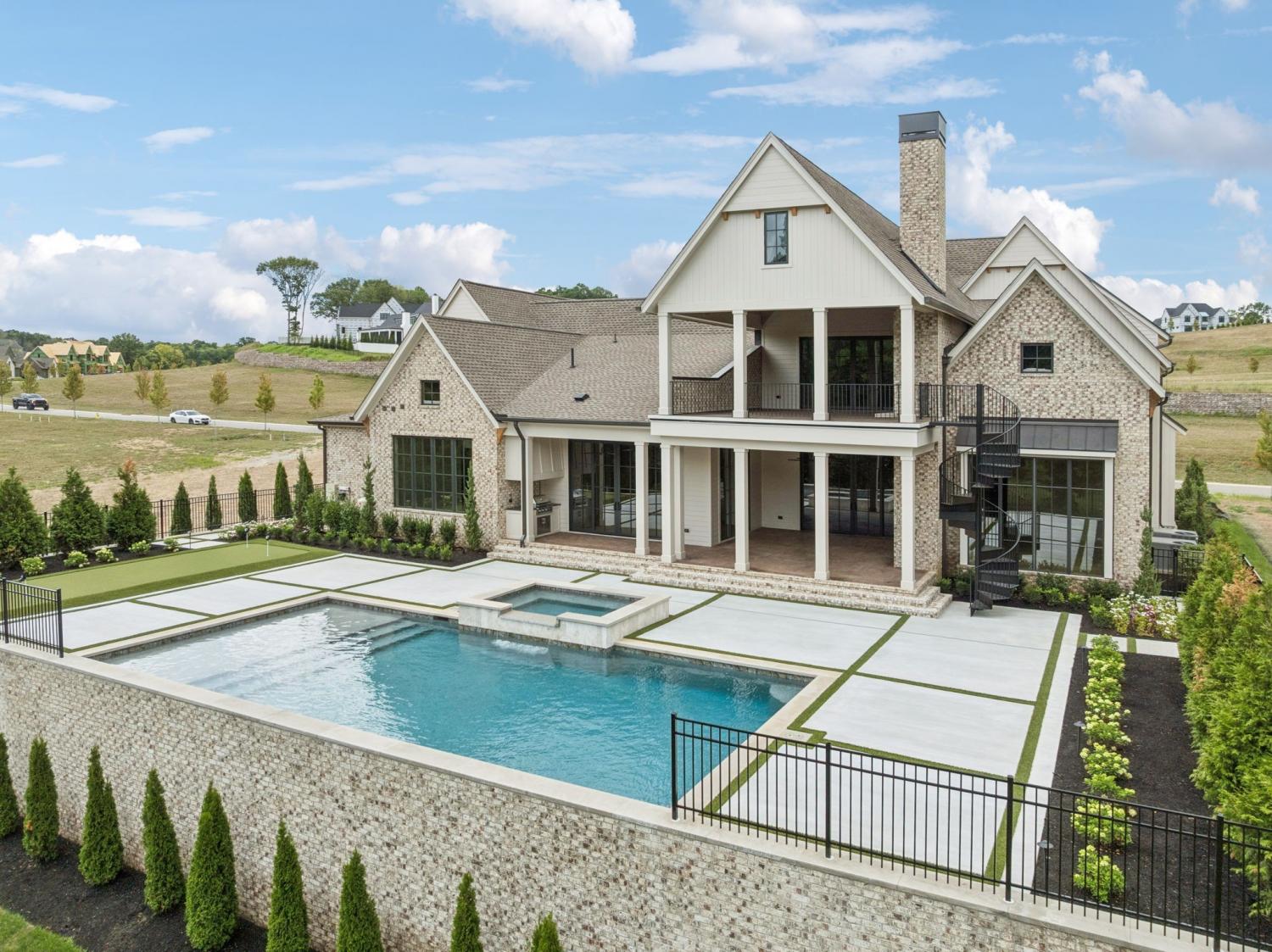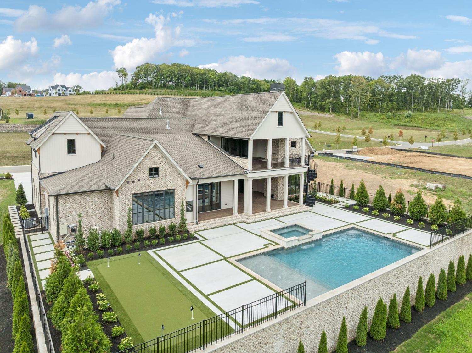 Builder to include Grove Golf Membership Fee with Full Price Offer. Magnificent Modern Tudor by Trace Construction at The Grove!! Looking for a new home with all the custom finishes you want, with a beautiful location backing up to open space, and with a new pool too? Here it is! As you enter this beautiful home you're immediately drawn to the private study with custom built-in bookcases, floor-to-ceiling picture windows and lots of light. The Great Room and Kitchen draw you into the living spaces, where you'll no doubt enjoy entertaining friends and family each evening. Oversized Chef's Kitchen with prep island and serving island, with views through the Dining Room to the pool terrace. Don't miss the working Scullery with an oversized Pantry as well. Luxury extends to the oversized Primary Suite with 16' ceilings, beautiful walk-in shower, garden tub and laundry station. Her closet will dazzle you with a 14'x15' space with custom closet built-ins, dressing table and large island in the center of the room. With 6 bedroom suites (2 down/4 up) there is room for everyone!! Step out back and spend lazy afternoons in the pool by Top Tier Pools with Baja lounge step, and oversized hot tub! Putting green to practice your game as well! One of the best features of this home is the elevated covered porch off the second level, with views to the 11th green, the community orchard and creek below! Wood-burning fireplace makes this the perfect outdoor living space year-round!