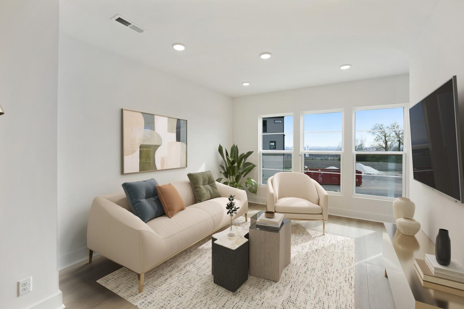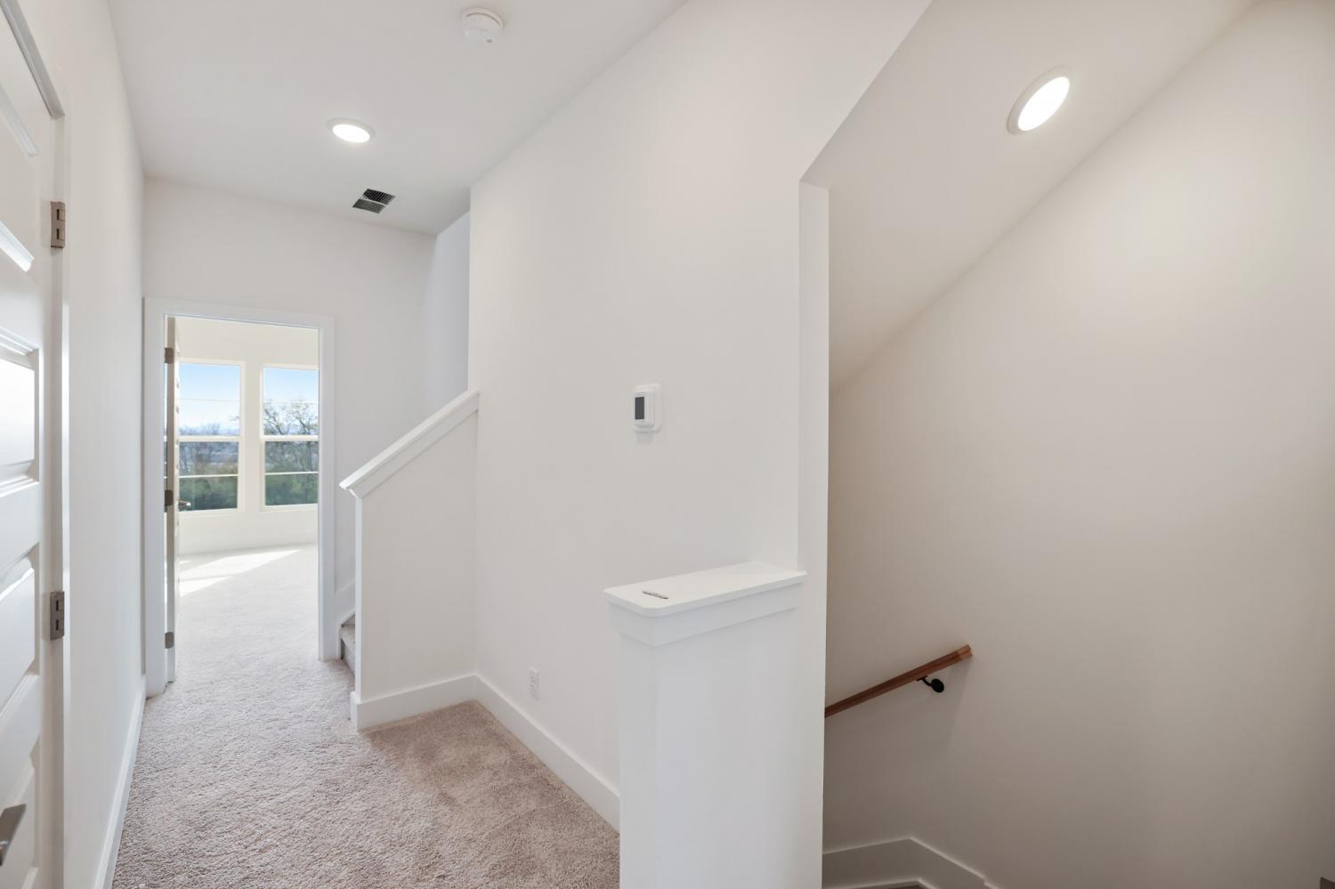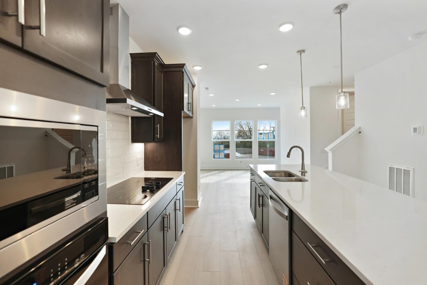 Up to 2% lender credit on the loan amount when buyer uses Seller's Preferred Lender. Introducing Skyline, a modern townhome community set atop a scenic rise with sweeping views of Nashville’s iconic skyline. Tucked in a quiet, wooded pocket just minutes from Downtown and Germantown, this home blends contemporary style with everyday comfort. Inside, you’ll find thoughtful upgrades throughout—wide-plank flooring, wood-accent cabinetry, quartz surfaces, brushed-nickel details, and a beautifully tiled walk-in shower in the owner’s retreat. The kitchen features built-in stainless appliances and opens directly to the main living area, creating an easy flow for gathering or entertaining. Both bedrooms include spacious walk-in closets, offering plenty of storage. A dedicated office nook with built-ins and natural light provides the perfect place to work or unwind. The private rooftop terrace elevates the experience even further, giving you a peaceful spot to enjoy the outdoors and city views. Built by John Wieland Homes, known for craftsmanship and reliable warranties, this residence delivers modern urban living wrapped in quality, convenience, and a secluded natural setting.