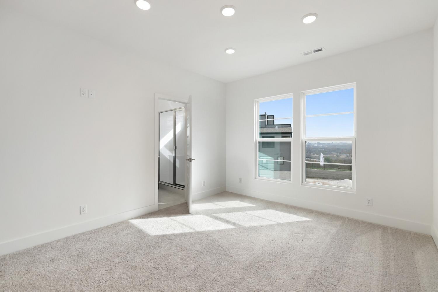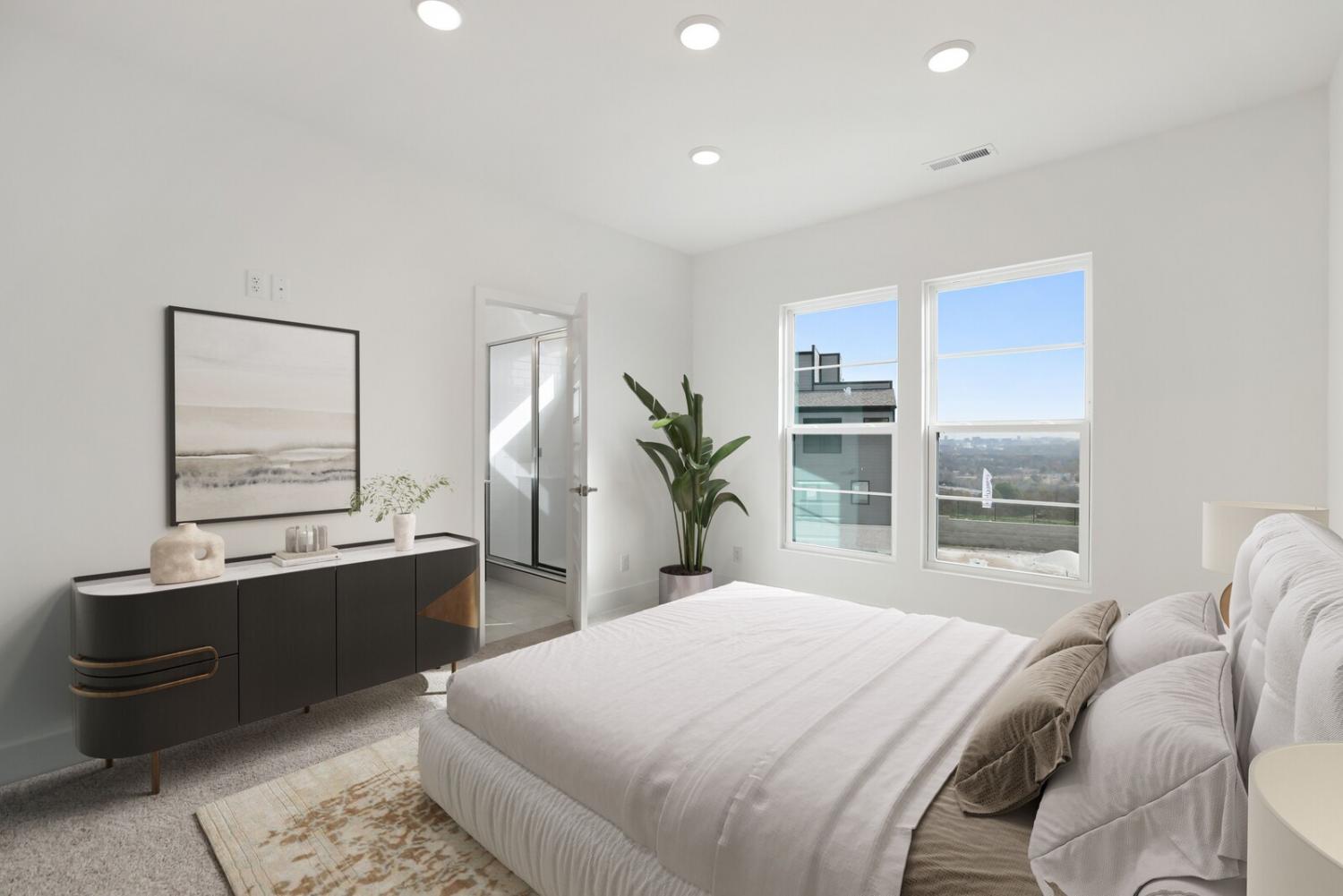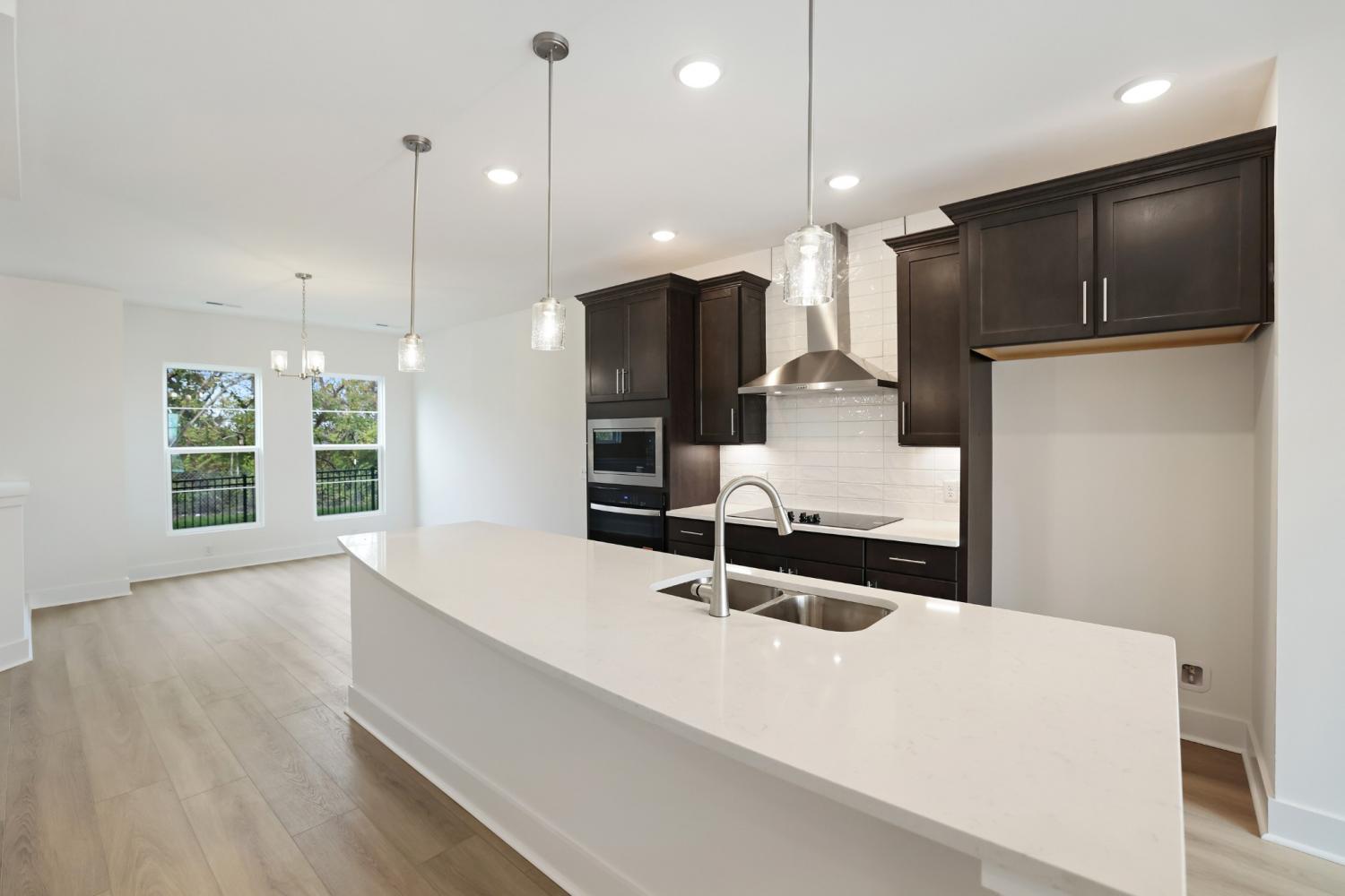 Up to 2% lender credit on the loan amount when buyer uses Seller's Preferred Lender. Introducing Skyline, a modern townhome community set atop a scenic rise with sweeping views of Nashville’s iconic skyline. Tucked in a quiet, wooded pocket just minutes from Downtown and Germantown, this home blends contemporary style with everyday comfort. Inside, you’ll find thoughtful upgrades throughout—wide-plank flooring, wood-accent cabinetry, quartz surfaces, brushed-nickel details, and a beautifully tiled walk-in shower in the owner’s retreat. The kitchen features built-in stainless appliances and opens directly to the main living area, creating an easy flow for gathering or entertaining. Both bedrooms include spacious walk-in closets, offering plenty of storage. A dedicated office nook with built-ins and natural light provides the perfect place to work or unwind. The private rooftop terrace elevates the experience even further, giving you a peaceful spot to enjoy the outdoors and city views. Built by John Wieland Homes, known for craftsmanship and reliable warranties, this residence delivers modern urban living wrapped in quality, convenience, and a secluded natural setting.