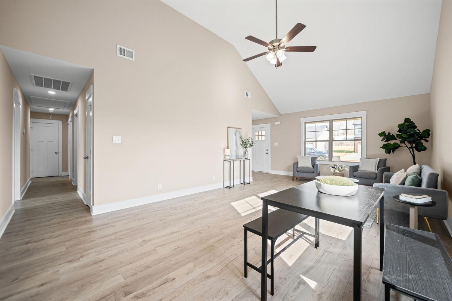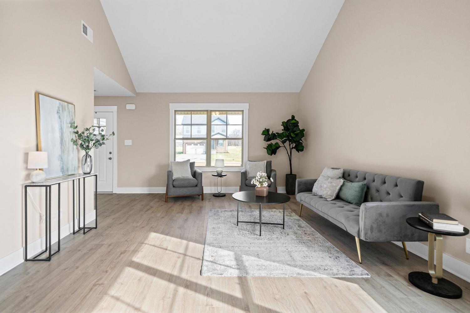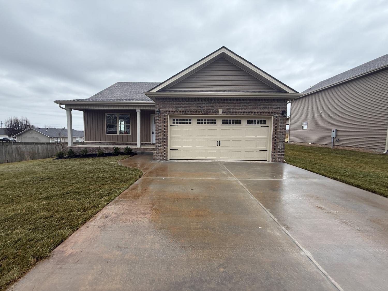 This beautiful modern ranch offers true first-floor living with an inviting open-concept design, high vaulted ceilings, and an extra-large living area filled with natural light. This home is walking distance to Wades Way City park, which has basketball courts, playground, and batting fences Located just minutes to Fort Campbell, this home sits in a large flat lot with NO HOA—giving you freedom and flexibility you won’t find in most new builds. Still under construction, there’s time to personalize with your own custom selections, making it uniquely yours from day one. The Big Easy floor plan features high-quality laminate flooring, a spacious kitchen with granite or quartz countertops and stainless-steel appliances, and a private Owner’s Suite with a walk-in shower and XL walk-in closet. Enjoy outdoor living from the huge rocking-chair front porch, covered patio, and generous yard. A true laundry room and epoxy-finished garage complete this thoughtfully designed home. Plus, the seller is offering 4% in concessions to use however you’d like!