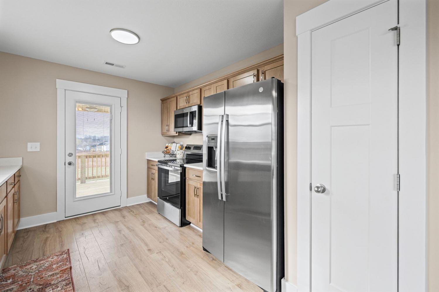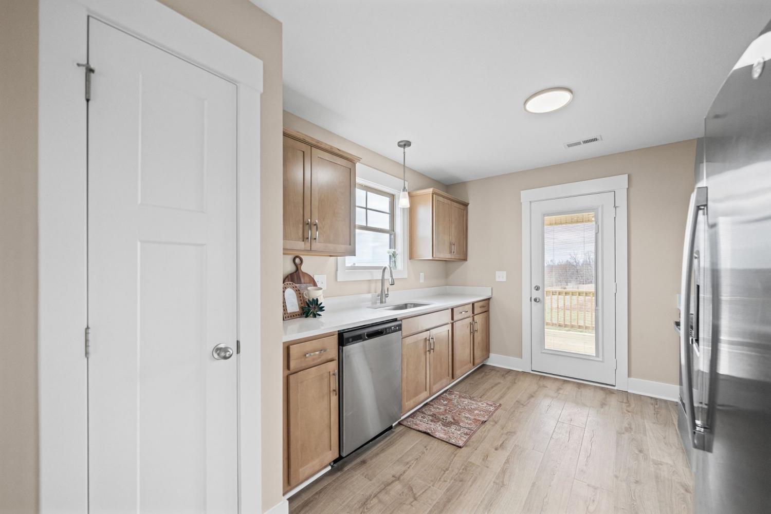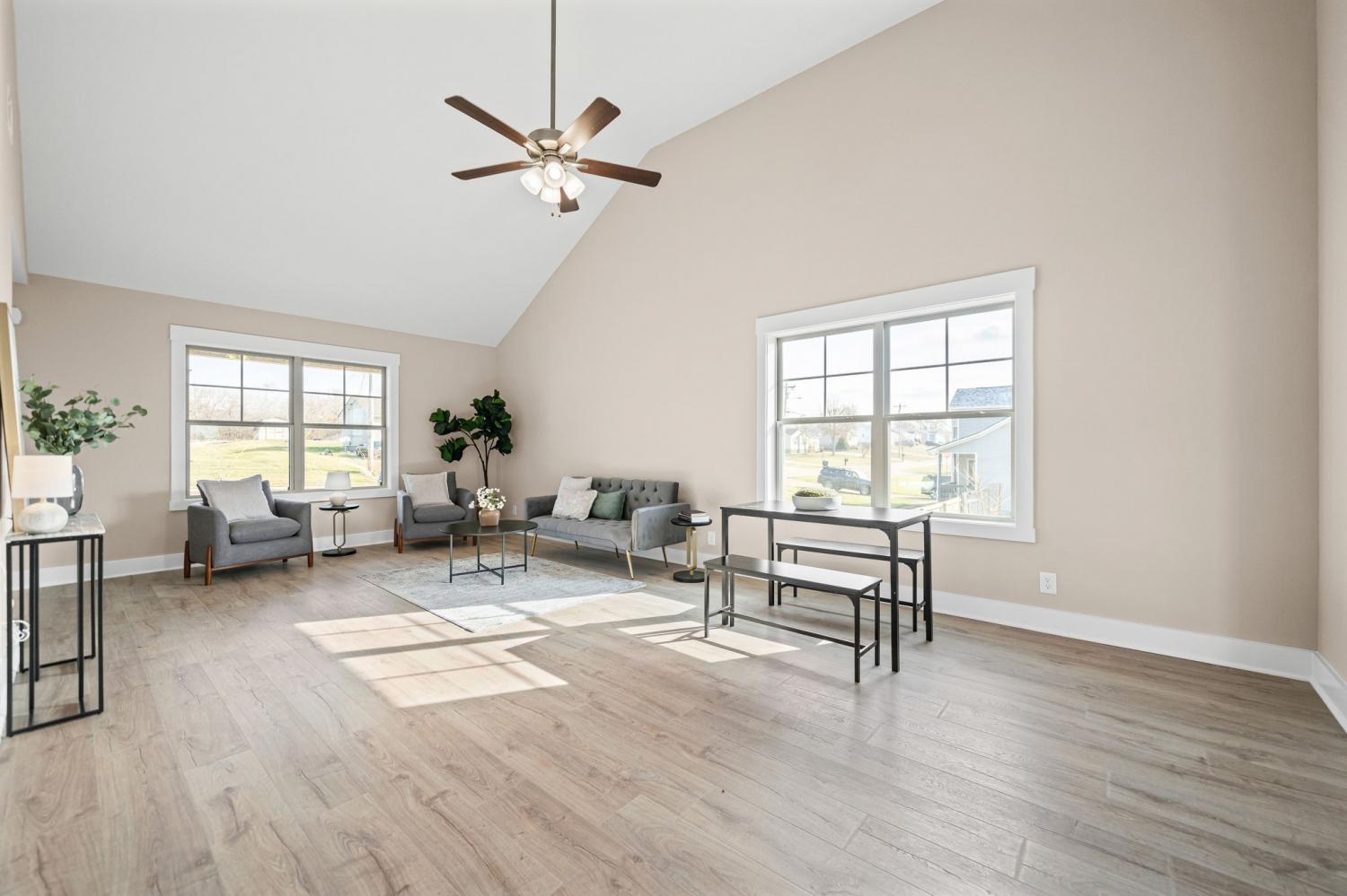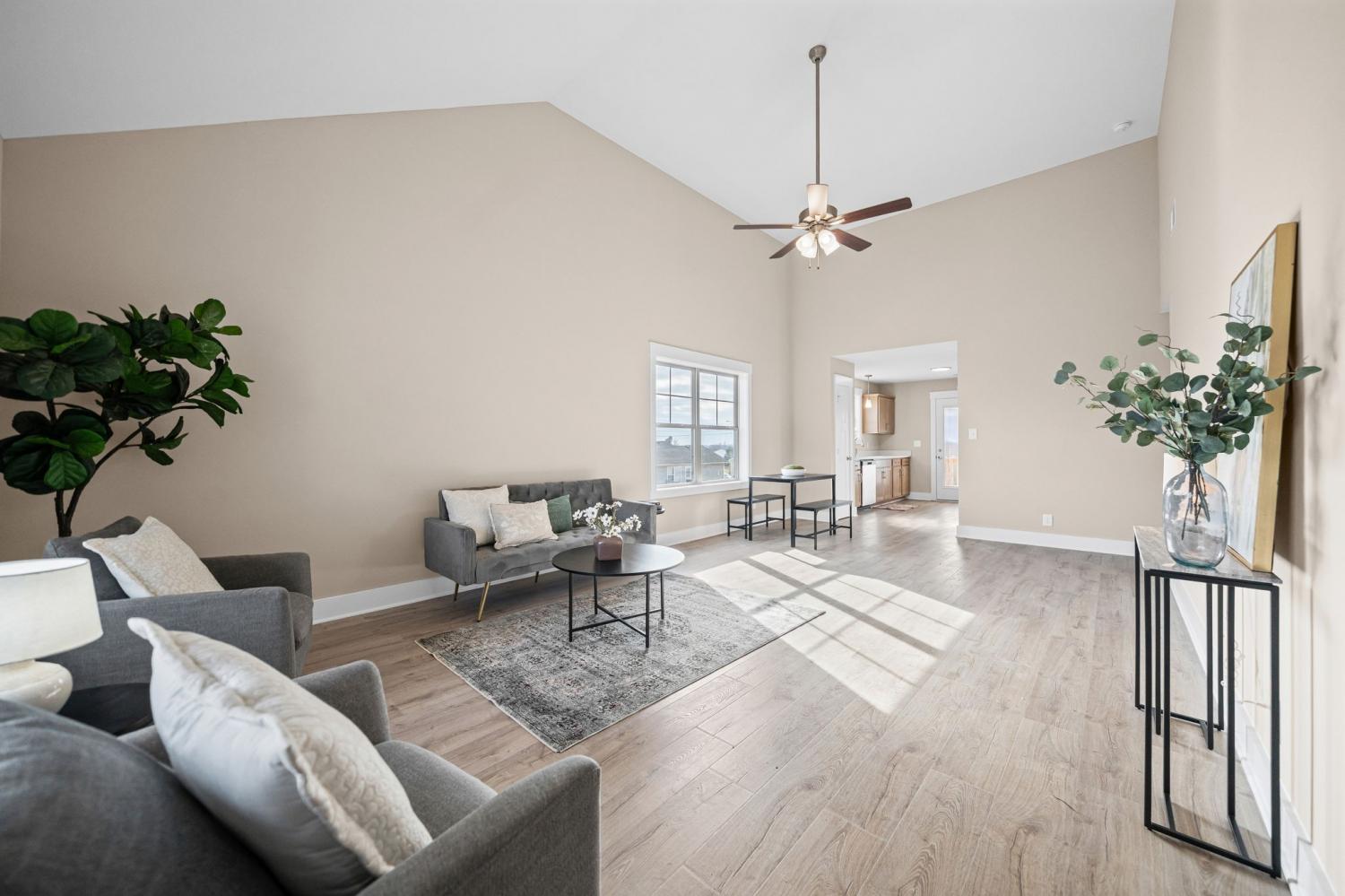 This beautiful modern ranch offers true first-floor living with an inviting open-concept design, high vaulted ceilings, and an extra-large living area filled with natural light. This home is walking distance to Wades Way City park, which has basketball courts, playground, and batting fences Located just minutes to Fort Campbell, this home sits in a large flat lot with NO HOA—giving you freedom and flexibility you won’t find in most new builds. Still under construction, there’s time to personalize with your own custom selections, making it uniquely yours from day one. The Big Easy floor plan features high-quality laminate flooring, a spacious kitchen with granite or quartz countertops and stainless-steel appliances, and a private Owner’s Suite with a walk-in shower and XL walk-in closet. Enjoy outdoor living from the huge rocking-chair front porch, covered patio, and generous yard. A true laundry room and epoxy-finished garage complete this thoughtfully designed home. Plus, the seller is offering 4% in concessions to use however you’d like!