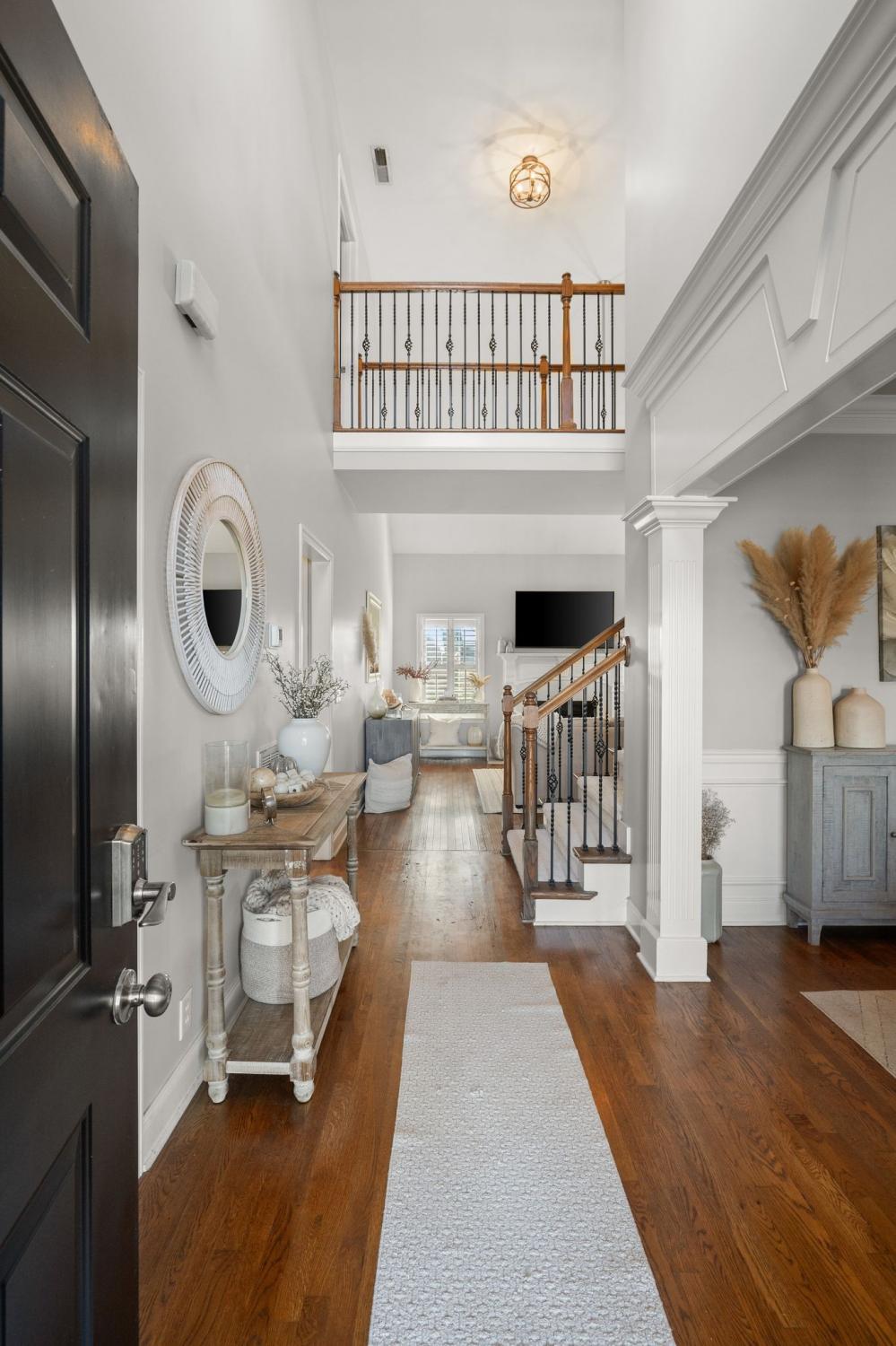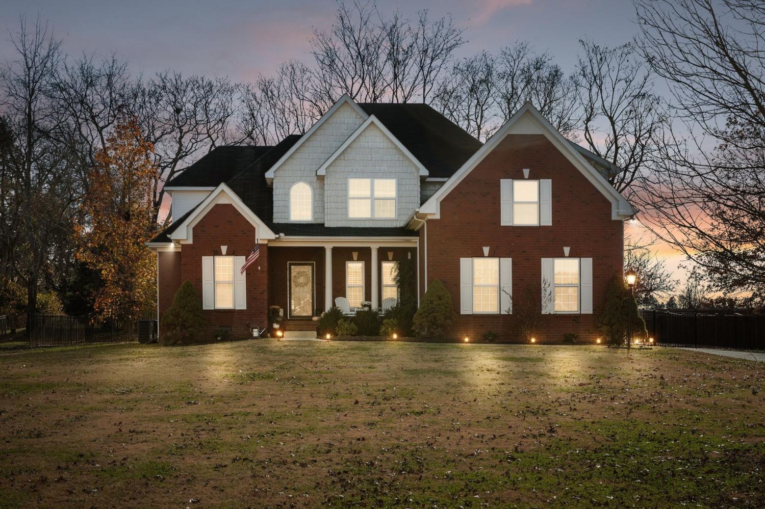 Welcome to this beautifully maintained all-brick home in the highly desirable Rockvale Meadows neighborhood~ Rich hardwood floors, neutral paint, and upgraded lighting greet you as you enter~ The beautifully refreshed kitchen features quartz countertops, white subway tile, white cabinetry, stainless appliances, and a walk-in pantry~ A gorgeous white porcelain farmhouse sink is truly the centerpiece of this bright and open kitchen~ A thoughtfully designed layout provides exceptional flow between the kitchen, breakfast area, living room, and dining room…ideal for gatherings and everyday living~The living room impresses with a two-story design filled with natural light, a graceful catwalk overlook, and a cozy gas fireplace—the perfect place to unwind~The spacious primary suite located on the main level features an updated bathroom with a new vanity, new flooring, and new lighting~ A roomy walk-in closet within the primary suite is perfect for storage and organization~Added window shutters & updated ceiling fans~Upstairs offers incredible versatility with two bedrooms, a large bonus room perfect for movie nights, billiards, or entertaining, plus an additional flex room that works beautifully as an optional 4th bedroom or dedicated office~Outdoor living is highlighted with two covered porches—a covered front porch overlooking the large, level front yard, and a covered side porch perfect for grilling and entertaining~ The fenced backyard backs up to open farmland, creating a peaceful, country atmosphere with privacy…perfect for gardening, play, or pets~Additional features include a two-car garage, mature landscaping, a community pool and pavilion, low HOA, and convenient access to triple Rockvale schools, Murfreesboro shopping, and I-24~ This move-in ready home has been lovingly updated and thoughtfully designed—offering space, comfort, and modern style in one of Rockvale’s favorite neighborhoods~ Shows like a model home…Schedule a showing today!