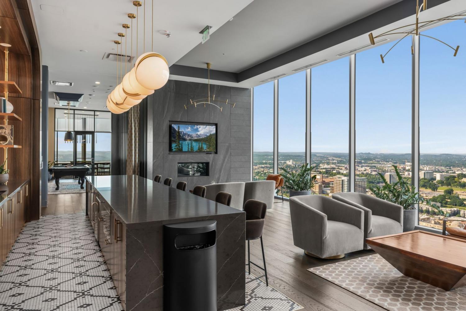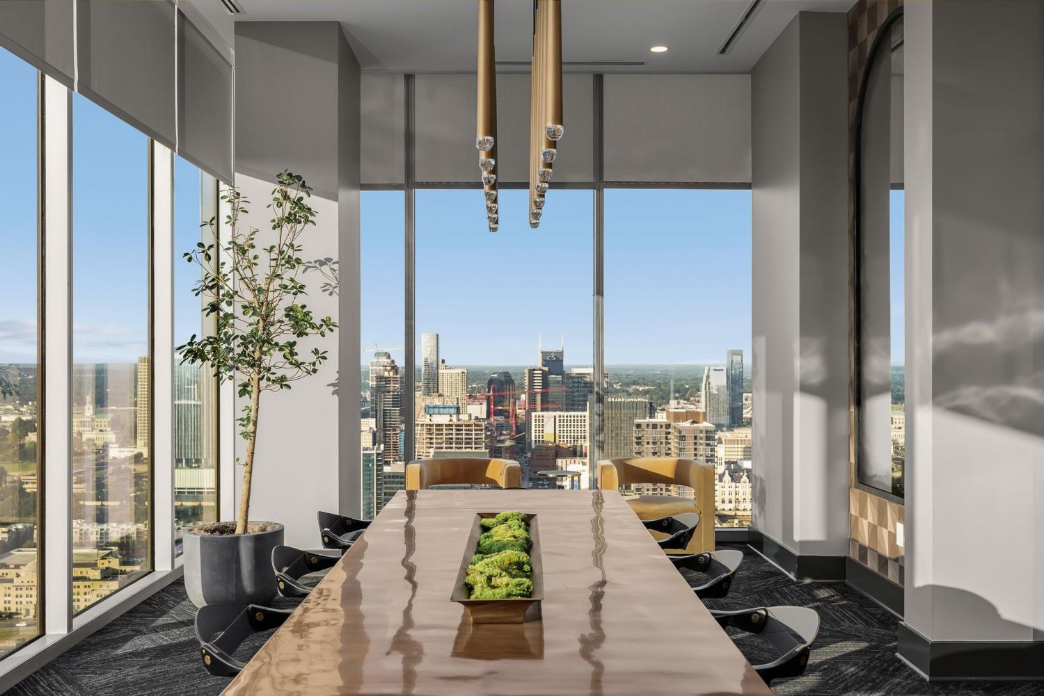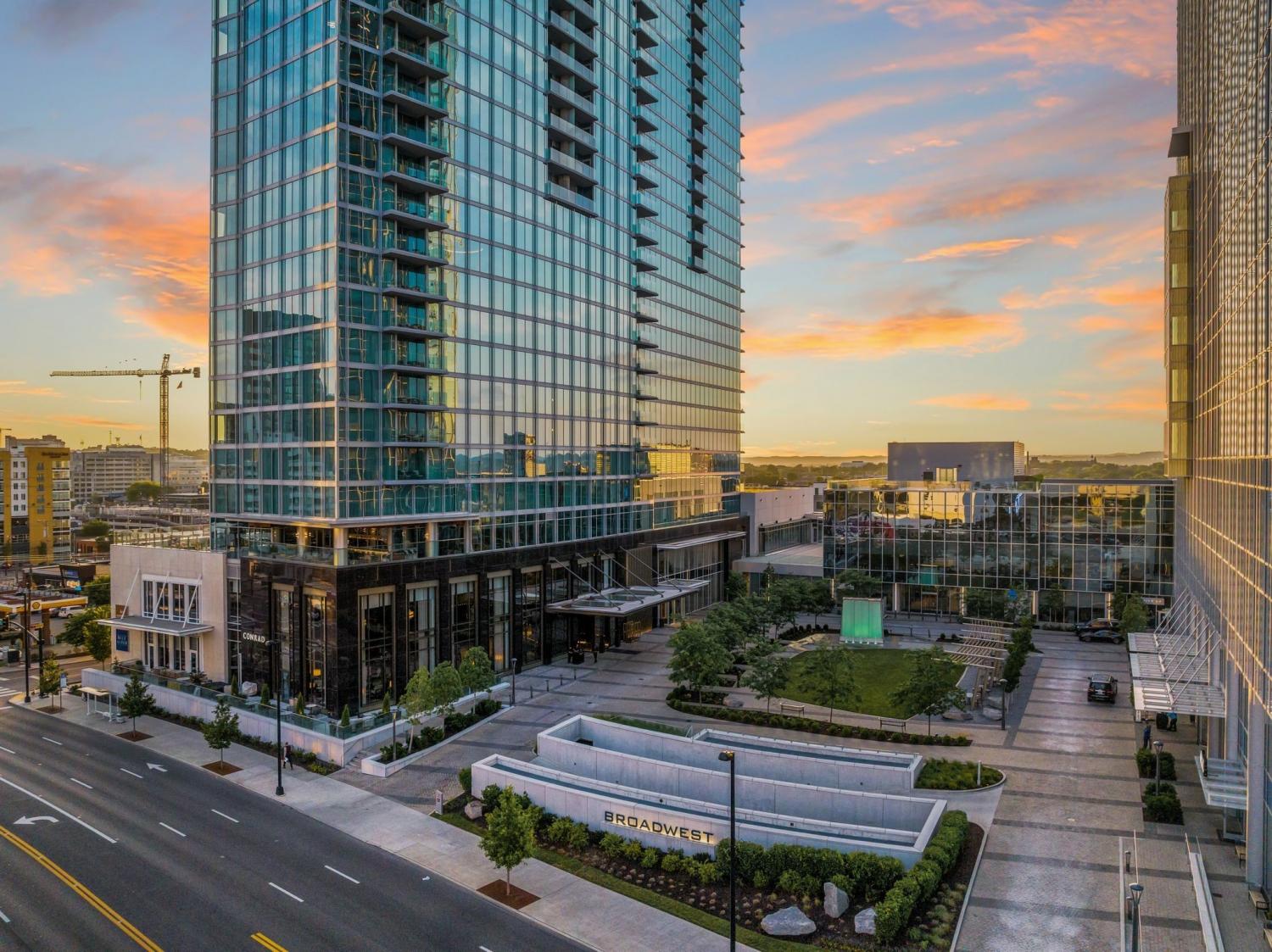 Experience elevated city living in Broadwest’s most coveted one-bedroom + den floorplan, where floor-to-ceiling windows frame sweeping views of Nashville. This 997 square-foot residence is thoughtfully designed with refined finishes + smart functionality — including a spacious wood-paneled flex space with large windows and its own half bath, perfect for a home office, guest space, or whatever you may need. Impeccably finished with herringbone hardwood floors, motorized blinds, a wet bar with dedicated wine storage, and top-tier SubZero and Wolf appliance package, this home is both stylish + move-in ready. Enjoy your private balcony and take in the skyline or retreat to the building’s premier amenities: a 34th-floor pool, cutting-edge fitness center, sauna, steam room, and more. Two reserved garage parking spaces add ease to everyday living, while residents also enjoy exclusive access to luxury hotel services at the Conrad — including valet, room service, and more. Seamlessly blending comfort, style, and sophistication, this residence offers a front-row seat to the vibrant Broadwest lifestyle — all at one of Nashville’s most desirable addresses.