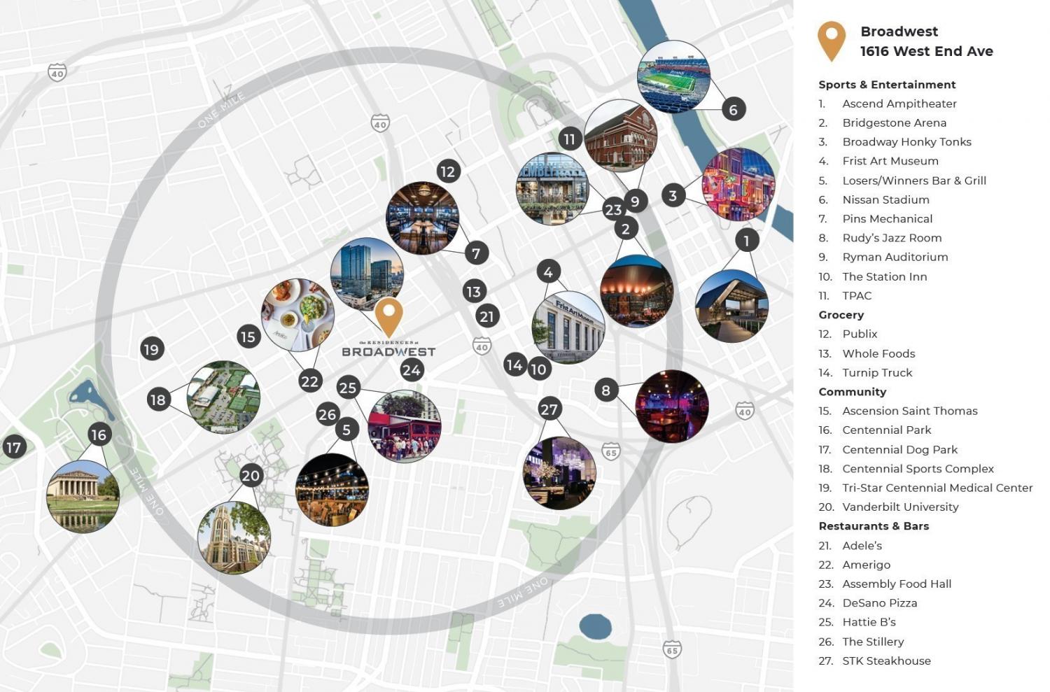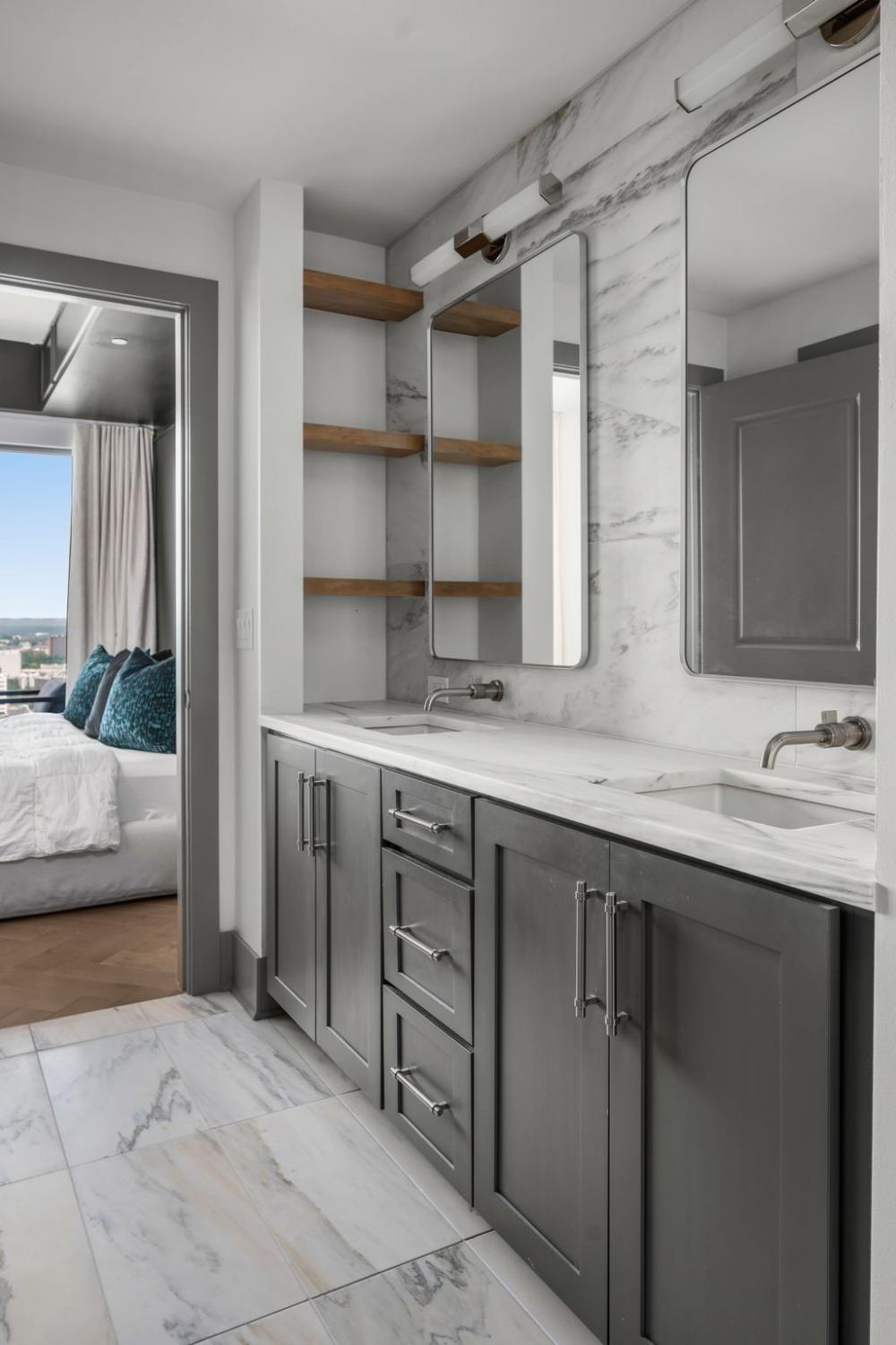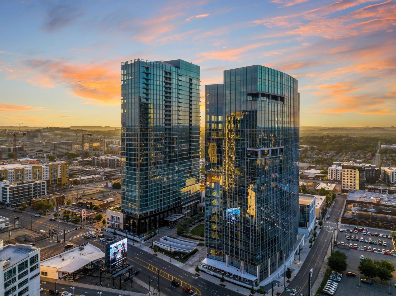 Experience elevated city living in Broadwest’s most coveted one-bedroom + den floorplan, where floor-to-ceiling windows frame sweeping views of Nashville. This 997 square-foot residence is thoughtfully designed with refined finishes + smart functionality — including a spacious wood-paneled flex space with large windows and its own half bath, perfect for a home office, guest space, or whatever you may need. Impeccably finished with herringbone hardwood floors, motorized blinds, a wet bar with dedicated wine storage, and top-tier SubZero and Wolf appliance package, this home is both stylish + move-in ready. Enjoy your private balcony and take in the skyline or retreat to the building’s premier amenities: a 34th-floor pool, cutting-edge fitness center, sauna, steam room, and more. Two reserved garage parking spaces add ease to everyday living, while residents also enjoy exclusive access to luxury hotel services at the Conrad — including valet, room service, and more. Seamlessly blending comfort, style, and sophistication, this residence offers a front-row seat to the vibrant Broadwest lifestyle — all at one of Nashville’s most desirable addresses.