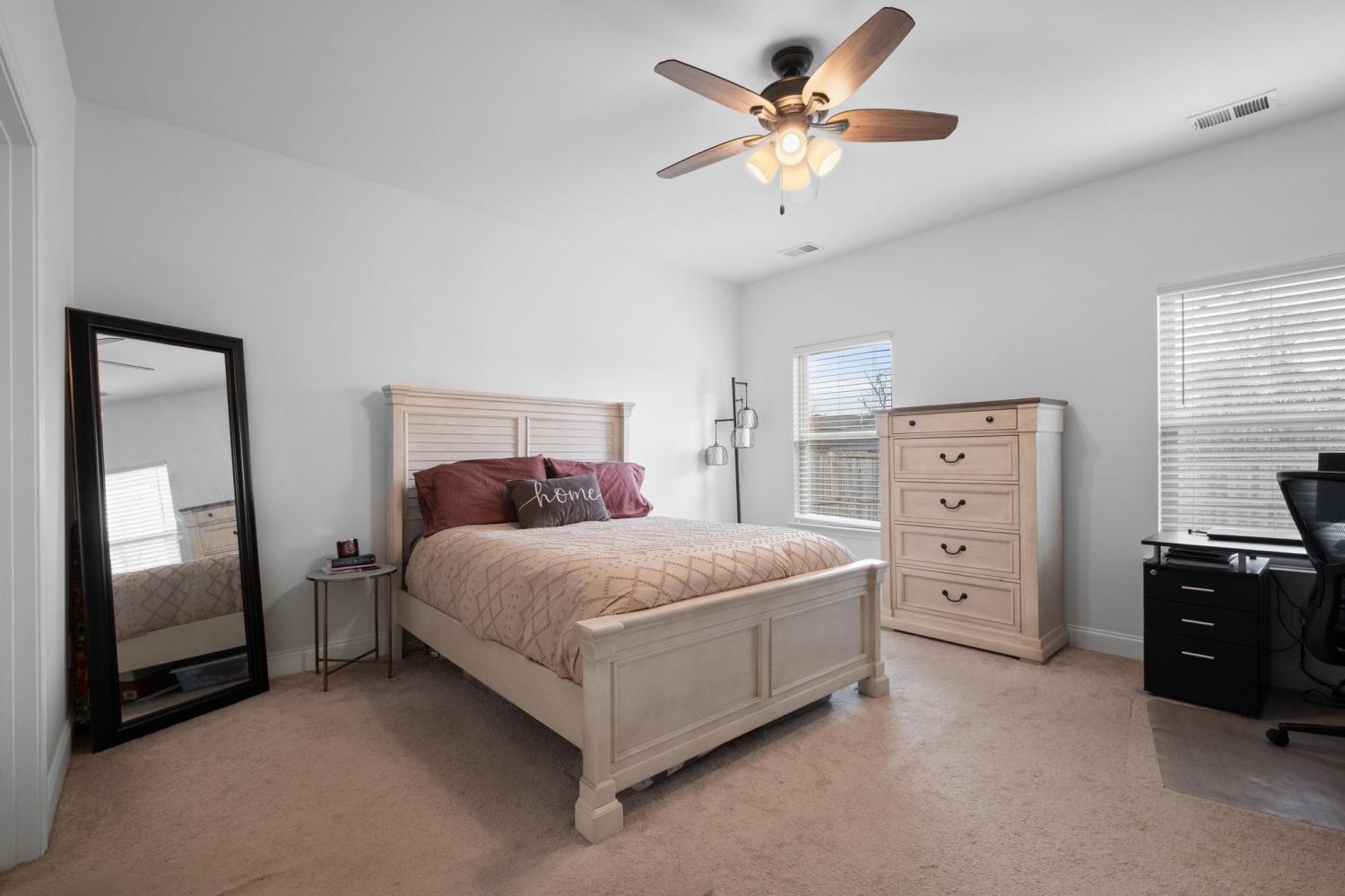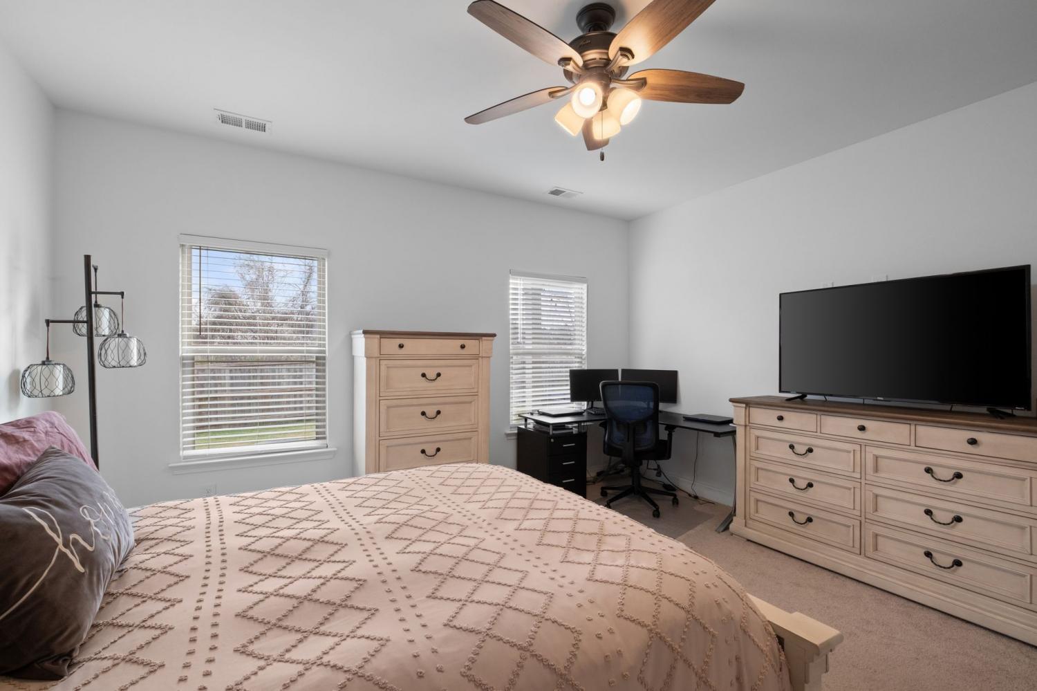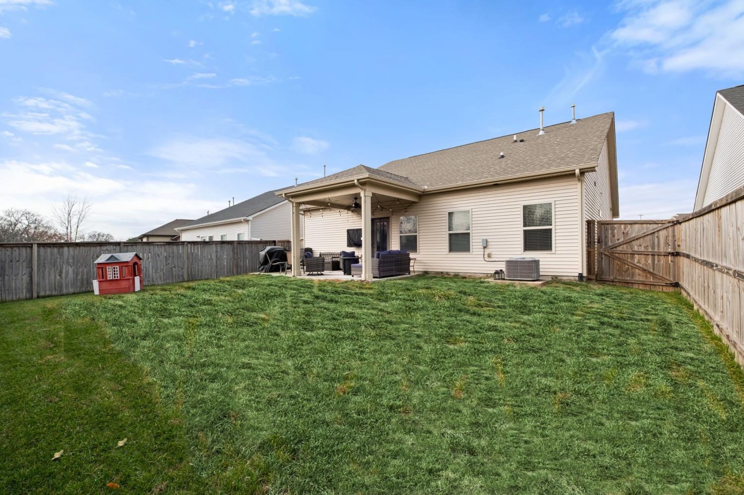 Price Reduction AND $5,000.00 Towards Buyers Closing Costs!!! Best priced home in the neighborhood!! This fabulous one-level brick home sits on a coveted fenced lot backing to peaceful trees and nature. The ideal split-bedroom layout features two bedrooms and a full bath up front, with the private primary suite tucked in the back, complete with a walk-in closet and oversized linen closet. The expansive living, dining, and kitchen area flows as one large open space, perfect for everyday living and effortless entertaining. A dedicated laundry room with a drop zone adds convenience and organization. Step outside to a fenced backyard with both a covered and uncovered patio, ideal for relaxing, grilling, or hosting friends. Located in a wonderful neighborhood with a community pool and just minutes from shopping, dining, and everything you need, this home is an incredible value at this price.