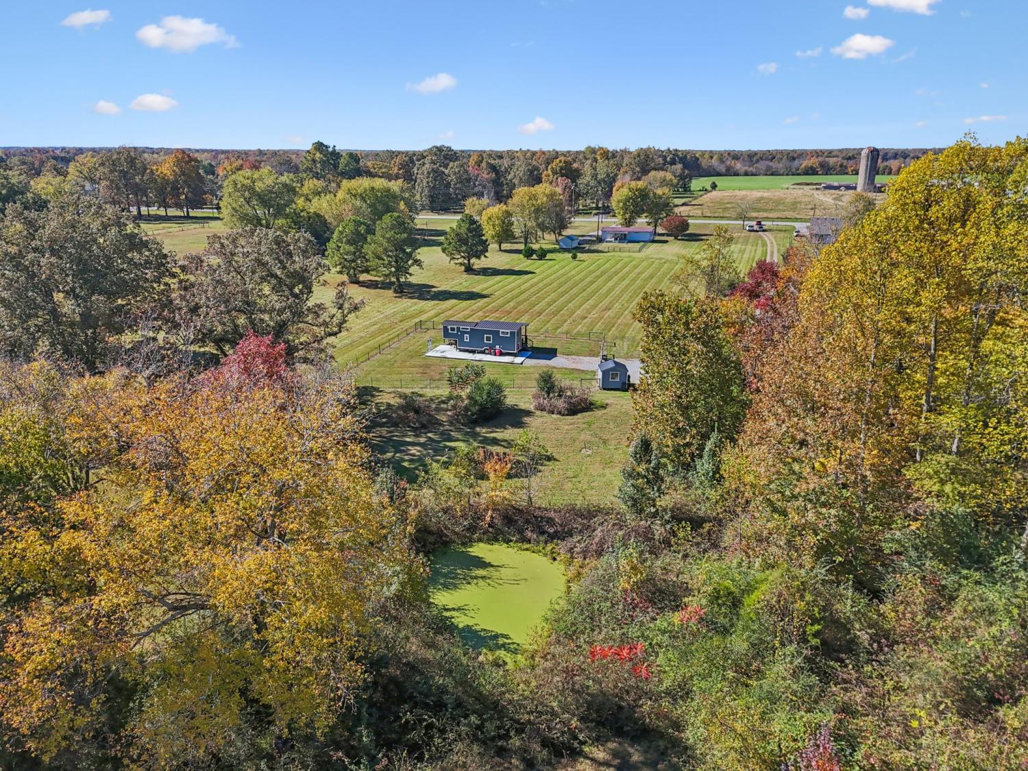 Beautiful 4.21 Acre with open pasture, trees and a pond. This tract has already has been improved with a long driveway, city water, electric, septic system and Tiny home on a large concrete pad to love forever or live in while you build your dream home. Tiny home is adorable inside and out with everything you need including a concrete patio, covered deck, storage building and a fenced yard. Property extends beyond the tree line at the back with an additional possible building site.