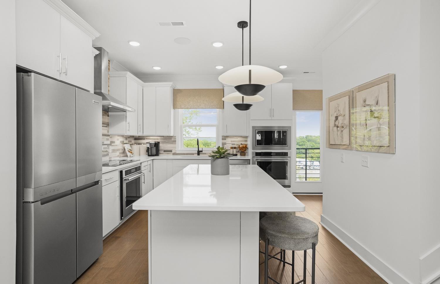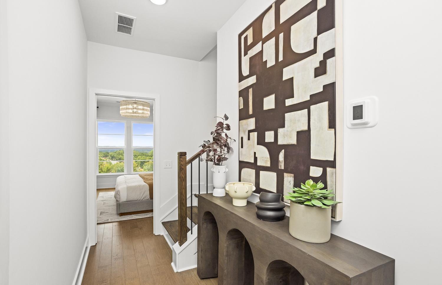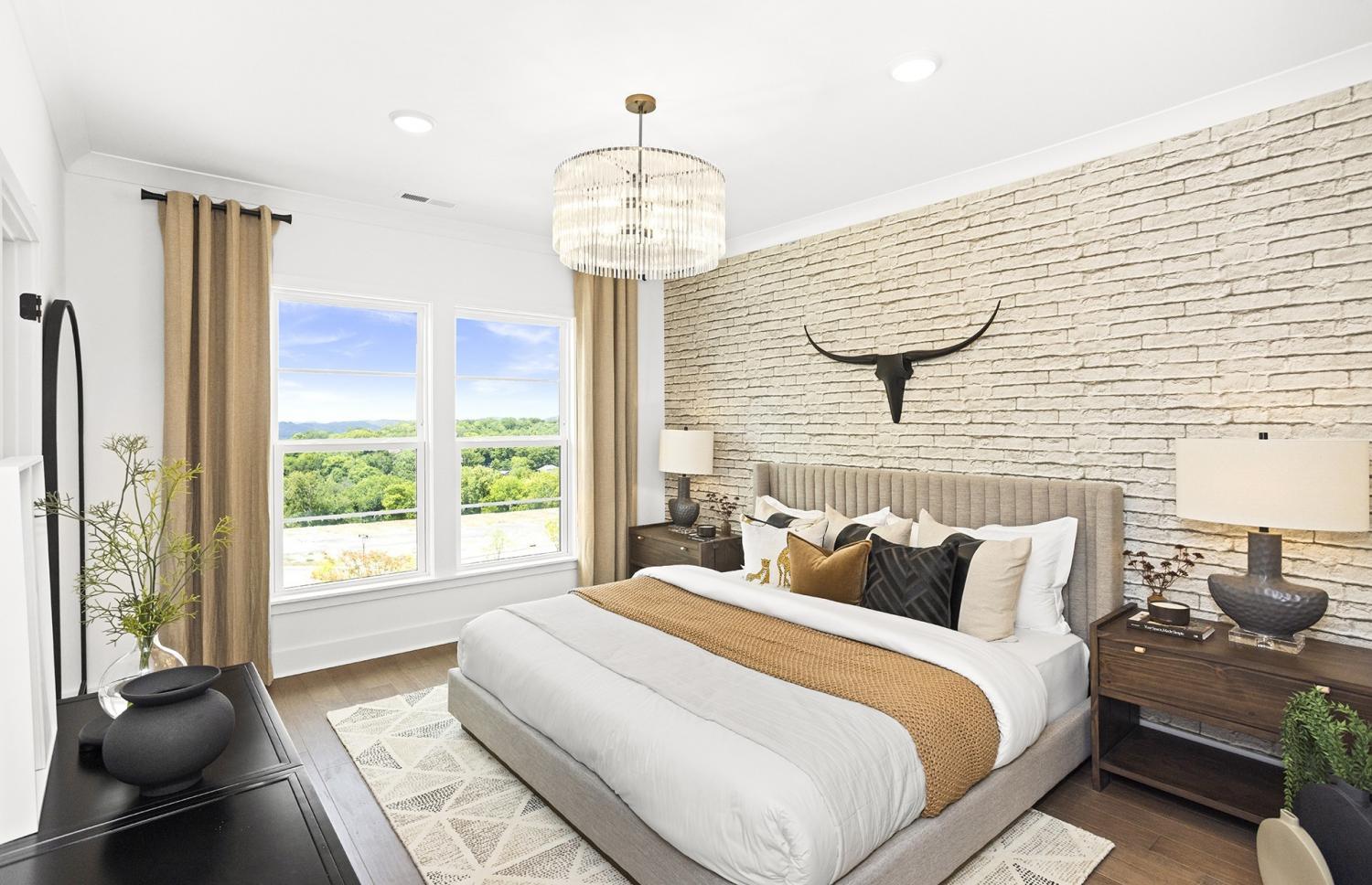 Unmatched Nashville skyline views! This stunning end-unit Teravista floorplan offers breathtaking views from every level. Featuring 2 bedrooms, 2.5 baths, and an open-concept design, this home is perfect for modern living. The gourmet kitchen includes rich wood-tone cabinetry, added café storage, a large quartz island, double ovens, and a spacious walk-in pantry. The primary suite boasts a massive walk-in closet and a spa-inspired bath with dual quartz vanities and a tiled walk-in shower with bench. Enjoy unforgettable sunsets from your private rooftop terrace—ideal for entertaining with panoramic Downtown views. Located minutes from the exciting River Side, River North, and Neuhoff developments, Skyline offers unbeatable value in one of Nashville’s most dynamic areas.Ask about our exclusive in-house lending programs with rates as low as 4.99% through Pulte Mortgage.