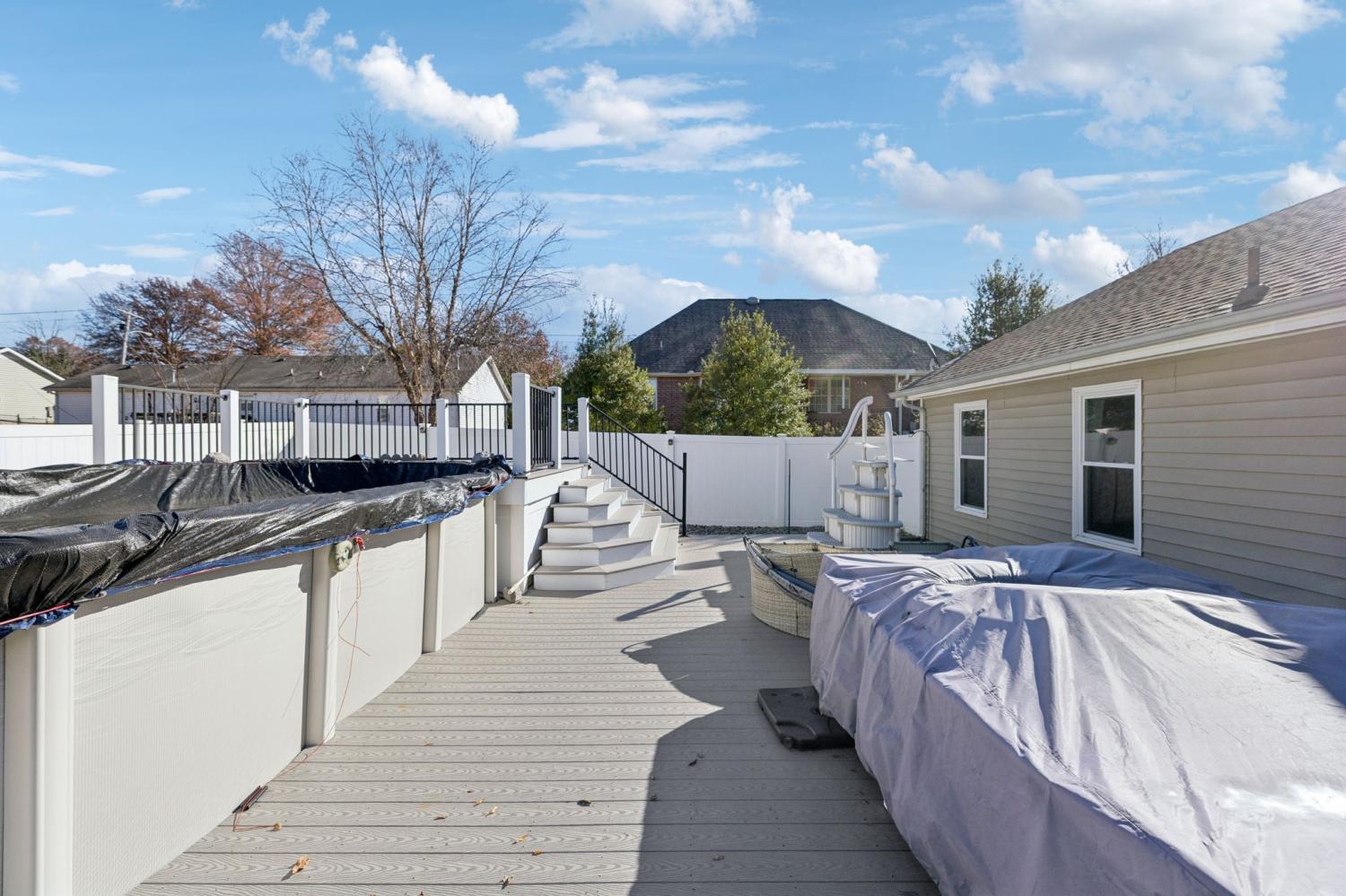 Discover easy one-level living in this warm and inviting home nestled in a peaceful, highly convenient Murfreesboro neighborhood. With quick access to McKnight Park, dining, shopping, golfing, and top-rated schools, this home offers comfort, value, and everyday convenience. Enjoy great curb appeal from the start, highlighted by a welcoming front porch, landscaping, and a new architectural shingle roof (2023). Inside, a spacious open floor plan features high ceilings in the great room - perfect for relaxing or entertaining. The eat-in kitchen offers stainless steel appliances and abundant cabinet space. The roomy primary bedroom includes its own full bath and walk-in closet, while two additional bedrooms share a second full bathroom. Step outside to your private paradise! Take a dip in the above-ground pool (5 yrs old) with a brand-new motor, filter, and updated filtration system, unwind on the 4-year-old like-new deck, or relax in the privacy-fenced yard with attractive and durable vinyl fencing. All outdoor and pool furniture remains, and a storage shed adds extra convenience. Major updates include new vinyl flooring throughout (excluding bedrooms), fresh paint this year, a brand-new handicap-accessible shower/jetted walk-in tub, new water heater, new windows, and new electrical panel/wiring with generator hookup. Washer, dryer, and refrigerator are negotiable, and sellers are offering a carpet allowance with the right offer. With NO HOA, you’ll enjoy the freedom to personalize your property as you choose. This charming Murfreesboro home combines comfort, convenience, and lifestyle in one inviting package. Don’t miss this one!!