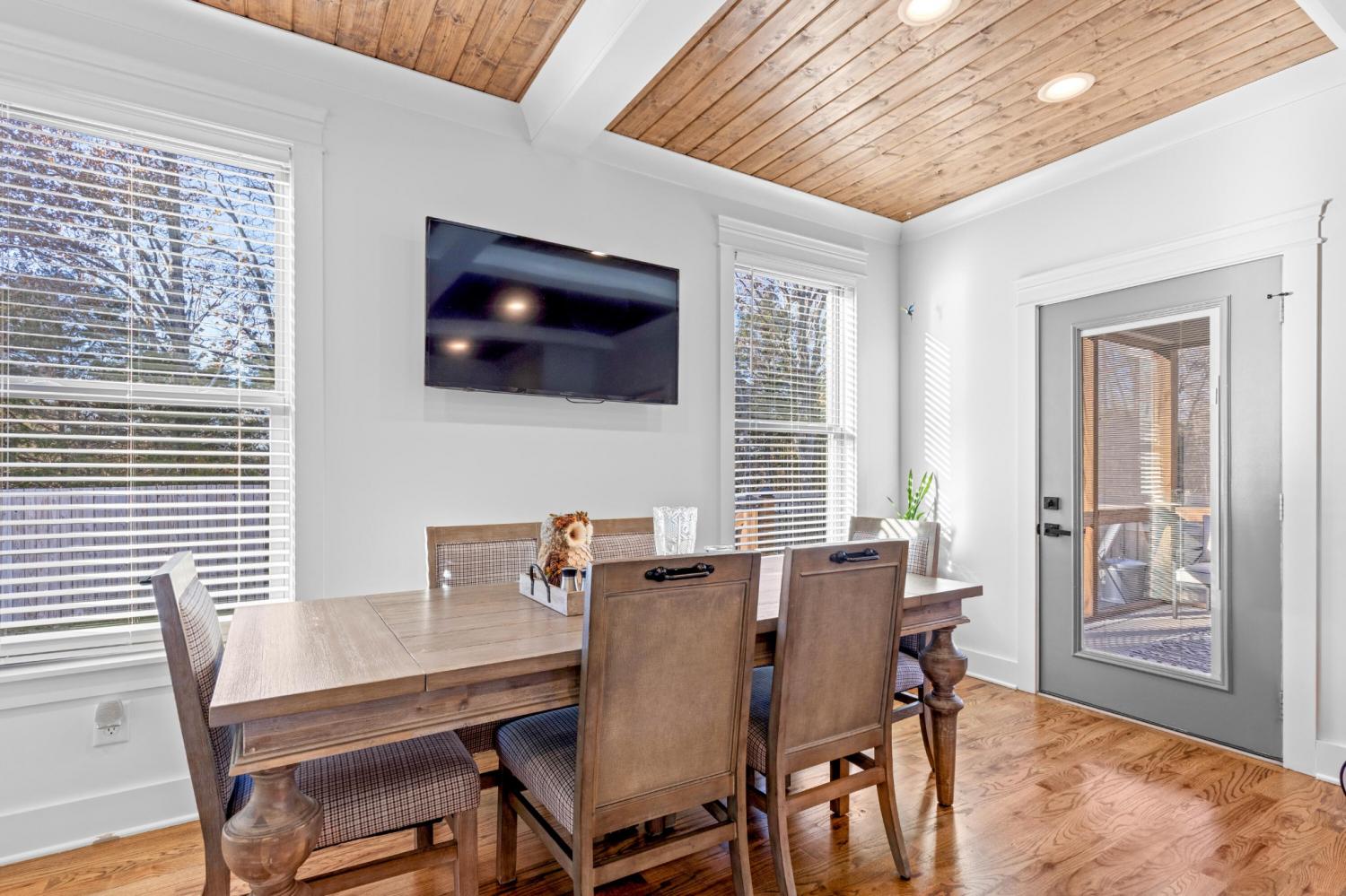 Welcome to 8870 Silver Maple Dr., a beautifully designed 4-bedroom, 3.5-bath home filled with thoughtful architectural details throughout. Located just 7 minutes from Cambridge Square and offering quick access to major highways, this home blends comfort, convenience, and elevated style. Step inside to a light-filled living room centered around a stone fireplace, accented by vaulted ceilings that enhance the sense of space and warmth. The adjacent dining room is a standout with its hardwood beamed ceilings, a design feature that continues into the kitchen, where you'll also find a cozy breakfast nook. The kitchen is both stylish and functional, equipped with a double wall oven, microwave drawer, built-in gas stovetop, and a double-door smart refrigerator. Ample cabinetry ensures abundant storage for all your culinary needs. From the main living area, step out onto the screened-in back porch, perfect for year-round enjoyment. This peaceful space overlooks a large back deck and a fenced-in yard, offering an ideal setting for outdoor dining, relaxation, or play. The oversized primary suite is a true retreat, featuring beamed ceilings, a spacious walk-in closet, and an ensuite bathroom complete with a soaking tub, walk-in shower with a built-in bench, and elegant finishes. Upstairs, you'll find three additional bedrooms and a welcoming living loft area, adding even more flexibility for guests, work-from-home space, or recreation. Additional highlights include two garages, abundant natural light, and a neighborhood that offers a community pool and sidewalk-lined streets, ideal for walking and enjoying the outdoors. Combining a thoughtful layout with exceptional amenities, this home delivers space, character, and convenience in one beautiful package. Don't miss your chance to make 8870 Silver Maple Dr. your next home.