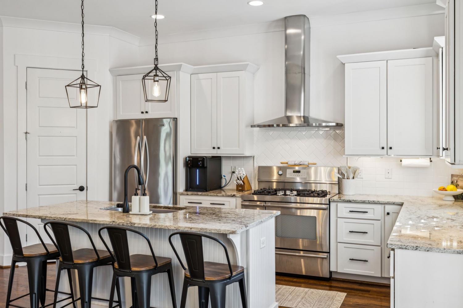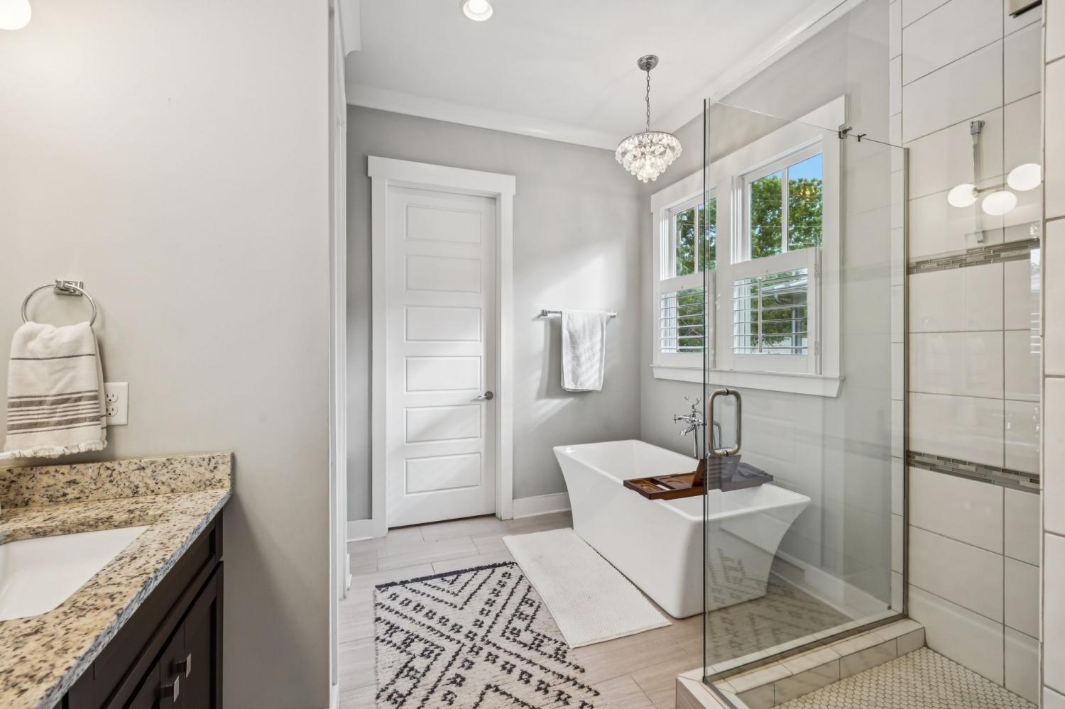 Easy walking distance to all things 12 South, Vanderbilt, and Belmont; this immaculate nearly 3,600 sq ft 5 bedroom 4 full bathroom home blends classic charm with modern updates and feels! Inside, you’ll find rich hardwood floors, a cozy fireplace, and elegant coffered and trey ceilings throughout. Recent updates include full interior paint, kitchen upgrades, upgraded lighting throughout, and a state of the art full size golf simulator (extra 500/month for golf stimulator access). The chef’s kitchen is a showstopper! Complete with stone countertops, stainless steel appliances, a 5 burner gas stove with double ovens, walk-in pantry, and a covered porch perfect for morning coffee or entertaining. The main level primary suite includes a luxurious spa bath with a tiled shower, soaking tub, double vanities, walk-in closet, and its own laundry area. Upstairs offers three additional bedrooms, two full baths, a second laundry room, and a bonus room ideal for a playroom or home office. Downstairs, the terrace level features a private in-law suite with its own entrance (no steps!), full bath, bedroom, the golf simulator, and access to an exterior grilling porch and deck. Full turf in the front yard makes this a very low maintenance home. The oversized 3-car garage offers plenty of storage. This home is walkable to some of Nashville’s best dining, shopping, and entertainment. This one has it all—style, space, and location. Come see it for yourself! Book your private showing now! (Furniture in photos not included) (washer and dryer included)