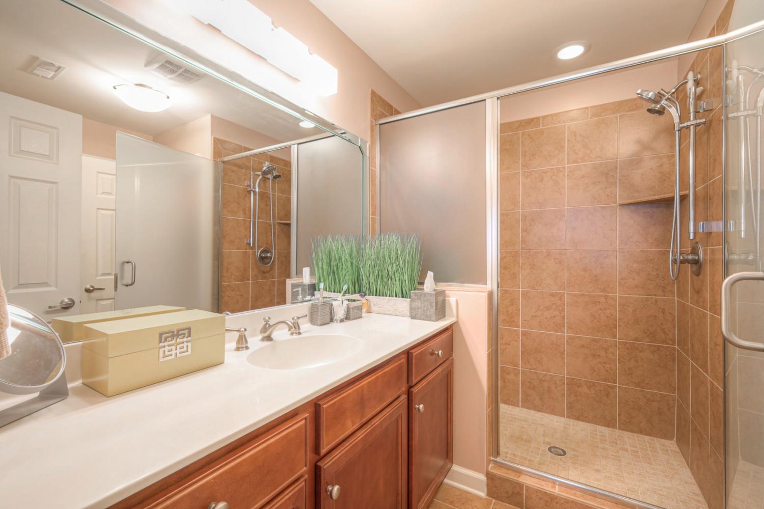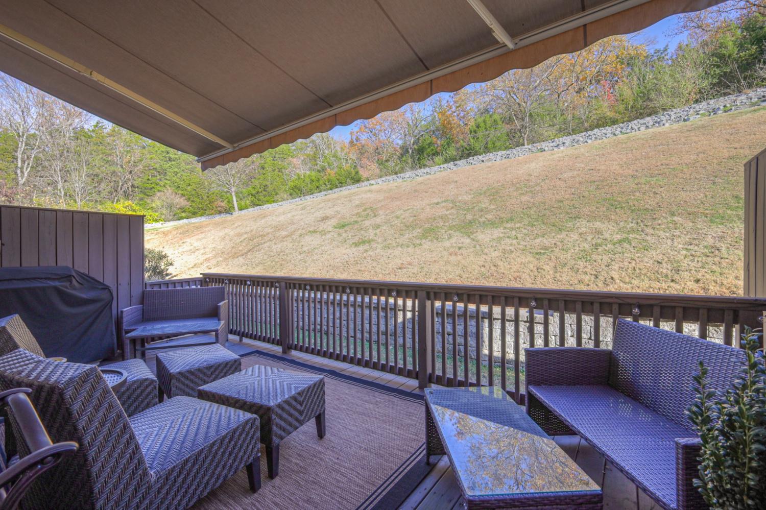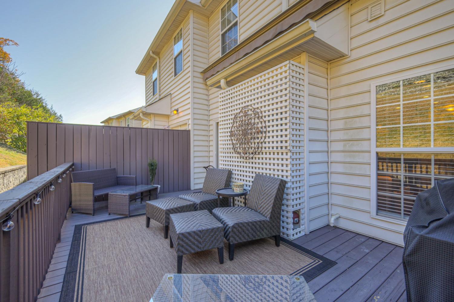 Welcome to this inviting two-story condo unit located in the final building at the end of Brentwood Pointe, just steps from the cul-de-sac and convenient visitor parking. This home offers a peaceful setting with a back porch overlooking a beautiful open hillside with mature trees and frequent wildlife sightings and natural views and added privacy. The outdoor space features a natural gas hook-up, French doors with retractable screens, and a remote-controlled retractable awning that provides shade and comfort at the touch of a button. Inside, the main level boasts hardwood floors and a cozy gas fireplace. Upstairs, the plush carpeting adds warmth, and the spacious primary suite includes dual sinks, a walk-in shower, and a private toilet room. The second bedroom boasts a spacious closet and its own en suite. Recent updates include refreshed interior paint on the main level and in the primary bathroom, along with an updated gas burner and log kit for the fireplace. Enjoy the custom-closet addition to the upstairs hallway for increased organization. The View residents enjoy fantastic community amenities, including a swimming pool all in a prime location with easy access to shopping, dining, and everyday conveniences.