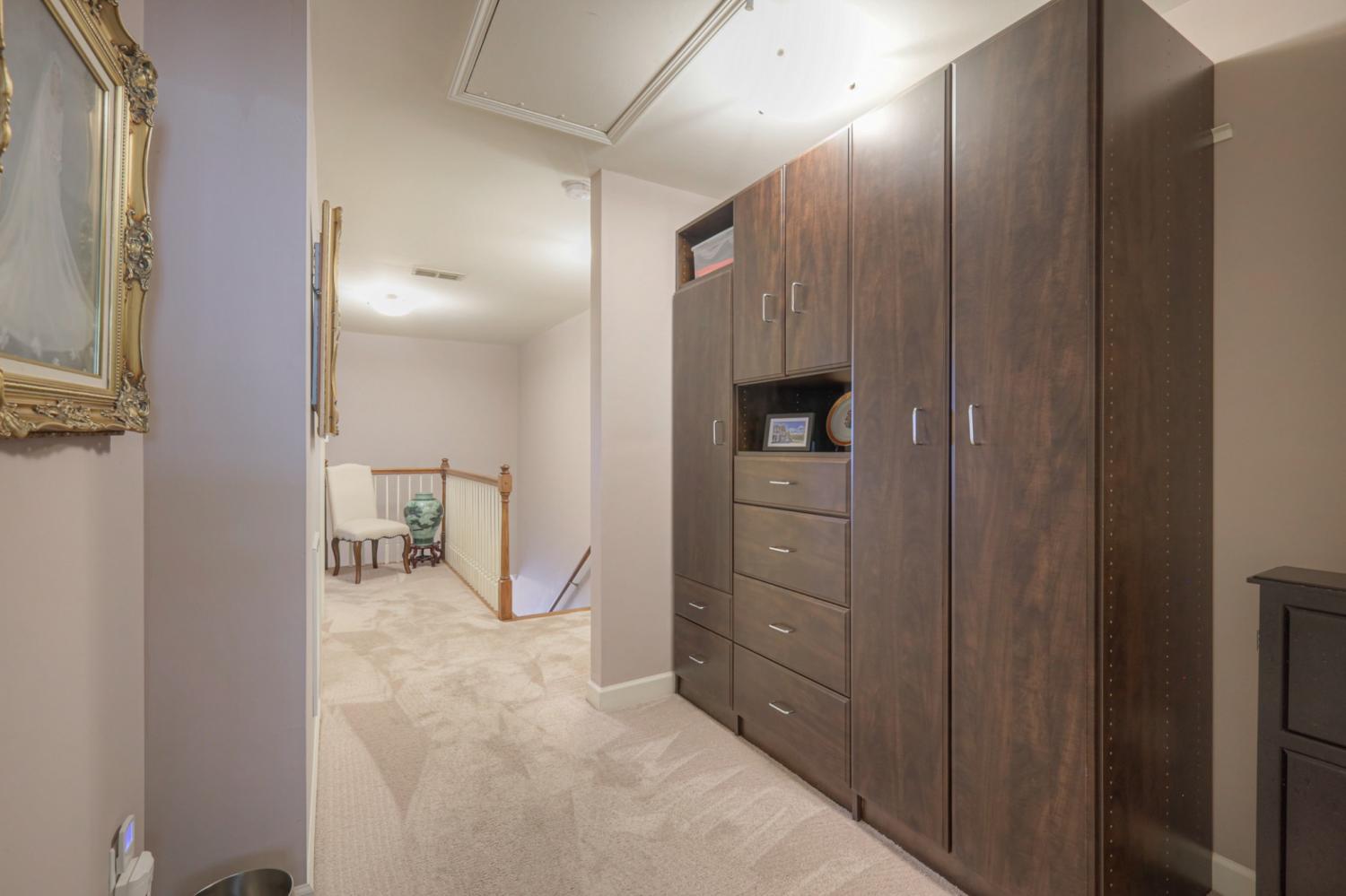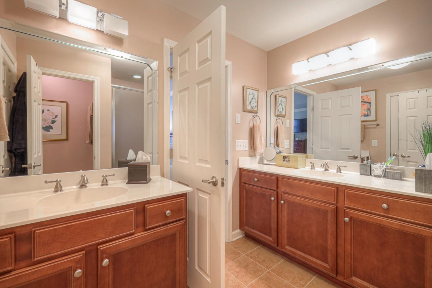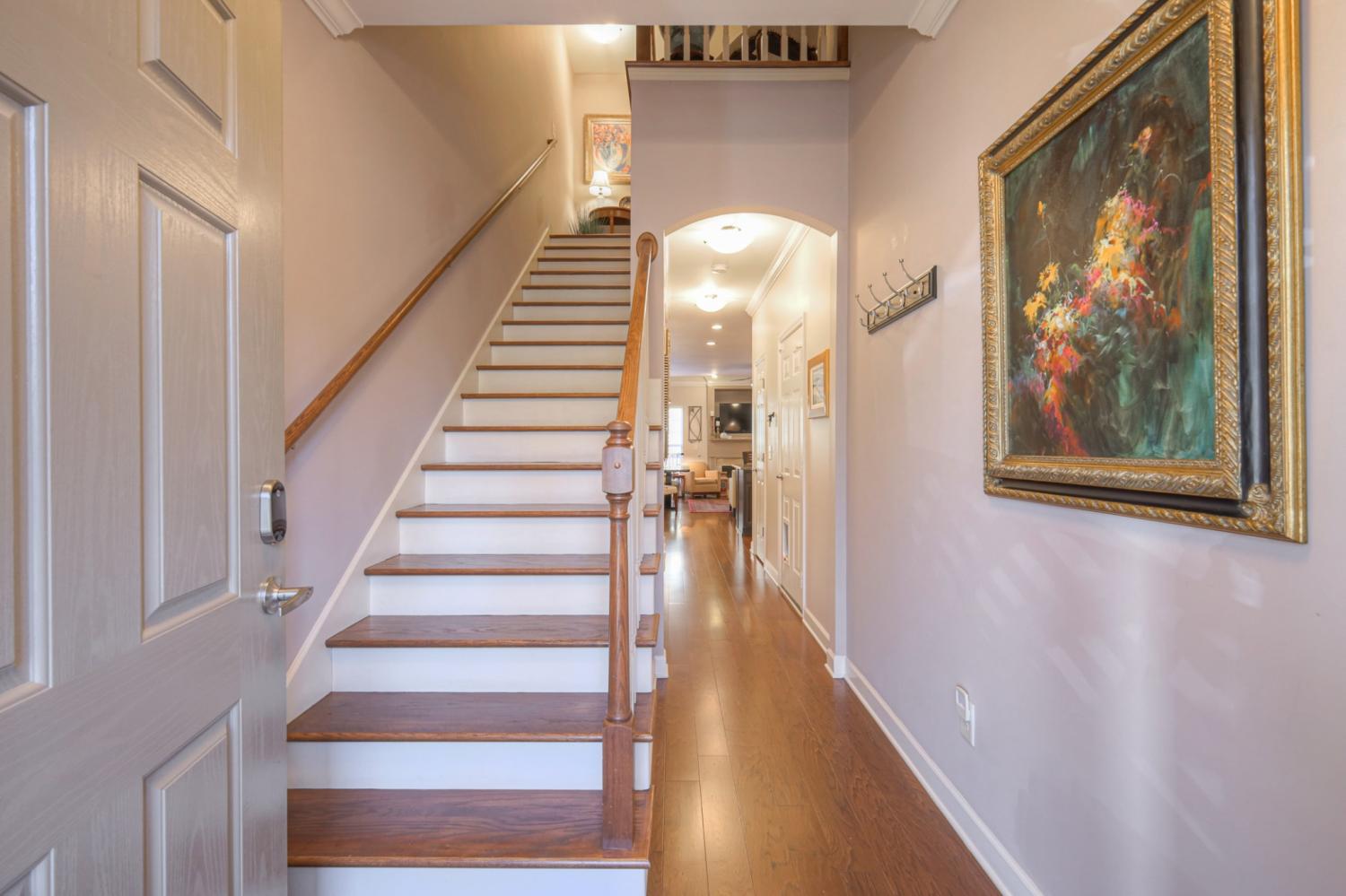 Welcome to this inviting two-story condo unit located in the final building at the end of Brentwood Pointe, just steps from the cul-de-sac and convenient visitor parking. This home offers a peaceful setting with a back porch overlooking a beautiful open hillside with mature trees and frequent wildlife sightings and natural views and added privacy. The outdoor space features a natural gas hook-up, French doors with retractable screens, and a remote-controlled retractable awning that provides shade and comfort at the touch of a button. Inside, the main level boasts hardwood floors and a cozy gas fireplace. Upstairs, the plush carpeting adds warmth, and the spacious primary suite includes dual sinks, a walk-in shower, and a private toilet room. The second bedroom boasts a spacious closet and its own en suite. Recent updates include refreshed interior paint on the main level and in the primary bathroom, along with an updated gas burner and log kit for the fireplace. Enjoy the custom-closet addition to the upstairs hallway for increased organization. The View residents enjoy fantastic community amenities, including a swimming pool all in a prime location with easy access to shopping, dining, and everyday conveniences.