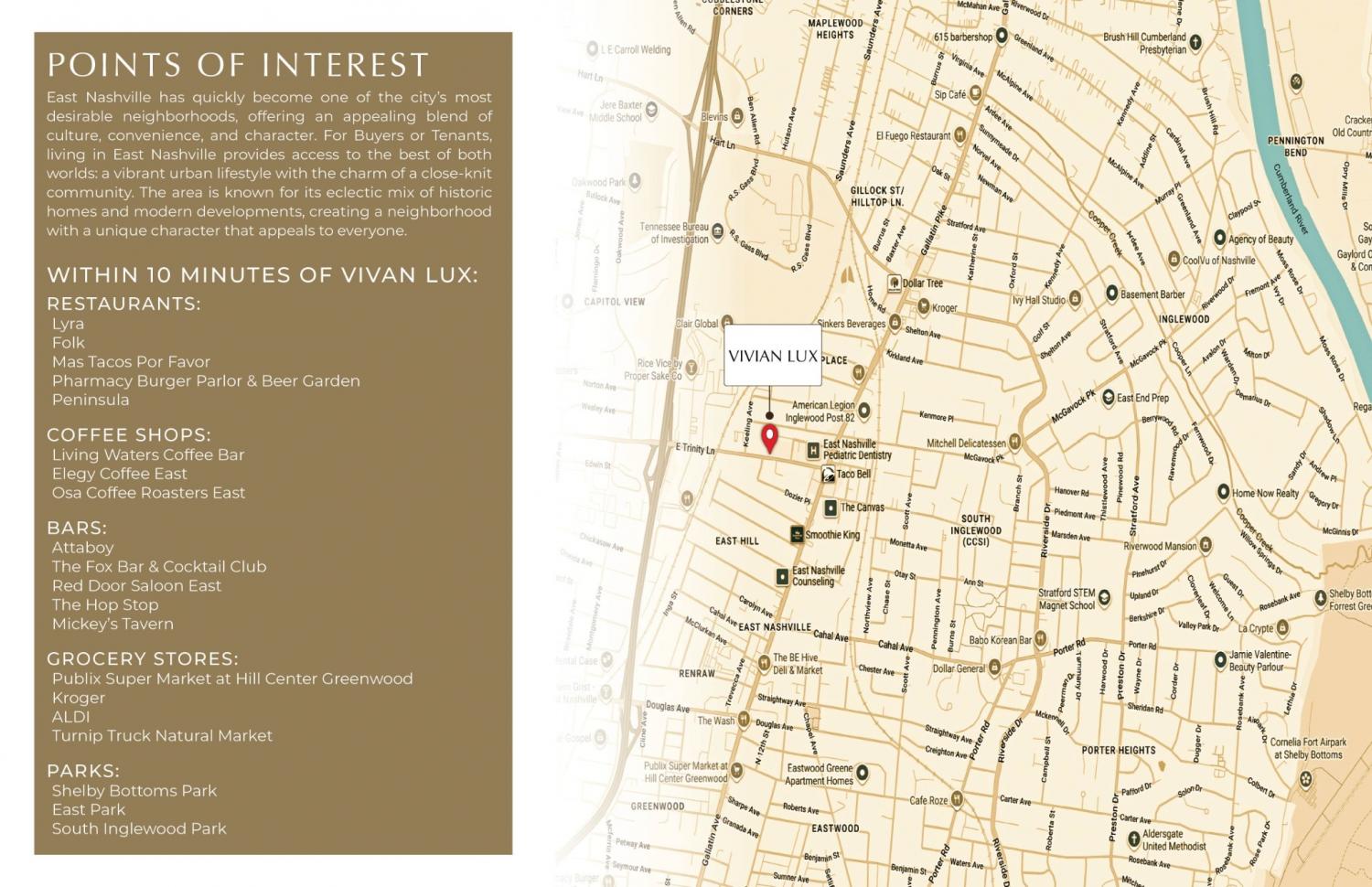 Preferred Lender Incentive equaling 1% for buyer to use toward closing costs or rate buydown! This property could be a perfect 1031 exchange opportunity w/ 100% bonus depreciation & cost-segregation strategies, buyers may save up to 30% on their taxes- Investors continue to buy strs because of the high yield income & tax advantages & are a hedge against inflation! Vivian Lux is an exclusive boutique community of 8 new-construction homes in vibrant East Nashville—only 4 remain. This commercially zoned NOO-STR–eligible 4 bed, 4 bath home spans 3 levels- 1,894 sq. ft. & can sleep up to 12 guests, making it an amazing income-producing asset. Curated by CLK Designs, the interior features a warm, elevated designer palette. The kitchen showcases striking two-toned cabinetry, white quartz countertops, a bold statement backsplash, brushed brass fixtures, and premium Frigidaire Professional Line appliances—including a microwave with built-in air-fryer functionality. A balcony just off the living room provides an effortless indoor–outdoor flow. Light oak LVP flooring flows throughout, and each spacious bedroom offers a cozy, private retreat ideal for Airbnb guests. All bathrooms feature quartz countertops and beautifully detailed tilework. The showstopper is the expansive rooftop deck with panoramic downtown skyline views—complete with hot-tub hookups, and the option to add a private hot tub for just $5,000. 1-car garage adds security and convenience, w/ guest parking onsite. Future amenities—including a pickleball court & putting green—will further enhance guest experience and occupancy. Perfectly positioned on East Trinity Lane with quick access to Ellington Pkwy & major highways, plus walkability to East Nashville favorites: Osa Coffee, Fox Bar, Grimeys, Attaboy, Folk, Pharmacy Burger, Turnip Truck & Publix. Outdoor lovers will love the proximity to Shelby Bottoms and South Inglewood Park.