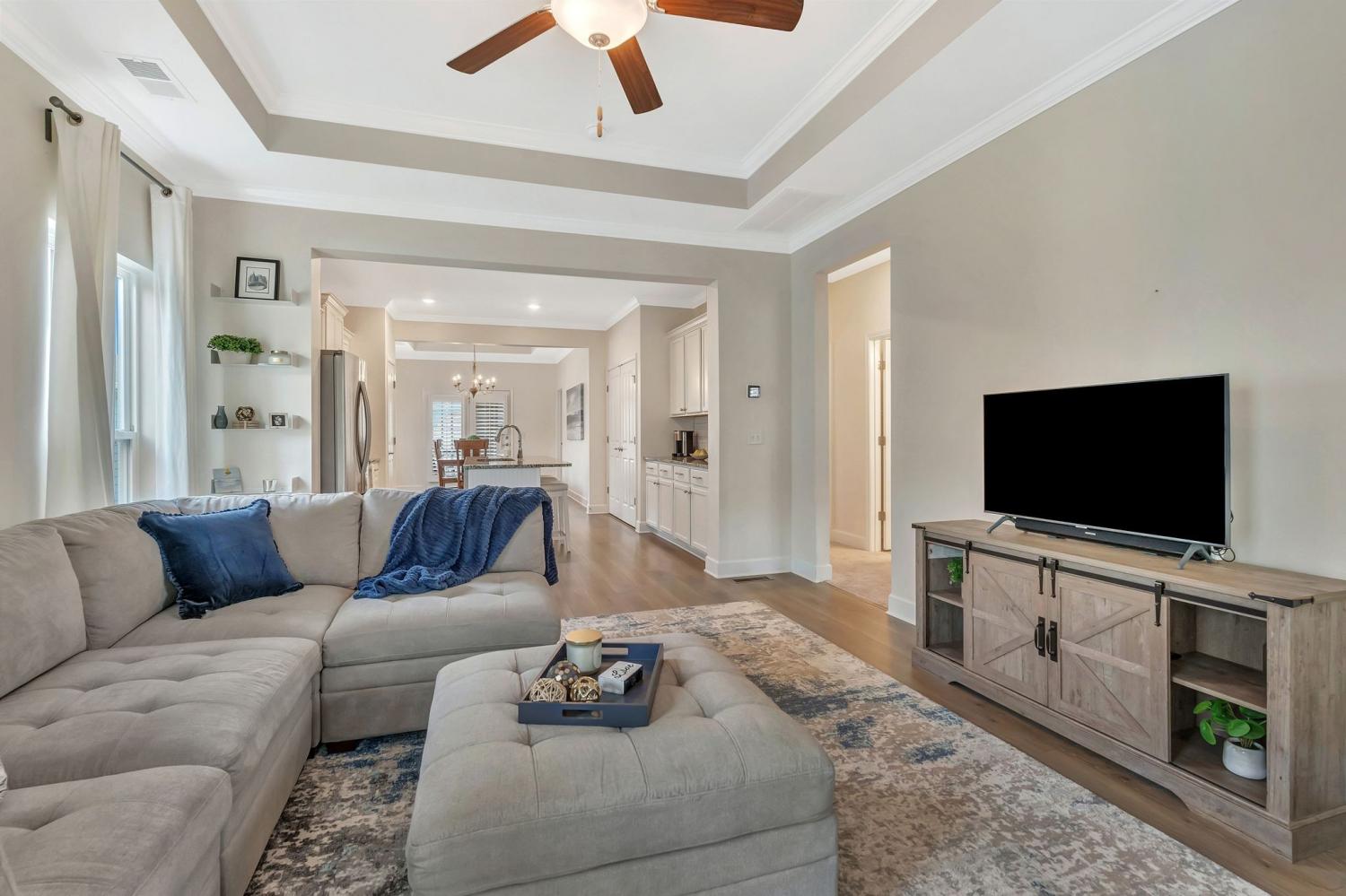 The perfect craftsman cottage—inviting, charming, and thoughtfully designed for everyday comfort. Enjoy slow mornings on your covered front porch with a cup of coffee and peaceful neighborhood views. This stand-alone, single level home offers both the essentials and the upgrades you’ve been looking for. Inside, you’ll find 3 bedrooms (or 2 bedrooms plus a dedicated office), 2 full bathrooms, and an airy open-concept living area filled with natural light and enhanced by timeless plantation shutters. The crisp white kitchen features expansive granite countertops, under-cabinet lighting with multiple settings, and the flexibility to convert from electric to gas cooking (if gas is connected). The adjoining living room offers a warm, welcoming space to unwind or entertain. Retreat to the spacious primary suite, complete with a double-vanity ensuite bath and a generous walk-in closet. A standout feature of this property is the two-story, two-car garage, offering exceptional storage options or the opportunity to build out a lofted living or hobby space. Enjoy outdoor dining or weekend BBQs on the covered back deck. Major upgrades include a new HVAC compressor (2024), encapsulated crawl space with commercial-grade dehumidifier, whole-house water filtration system, and pre-wiring for an alarm system. The refrigerator, washer, and dryer all remain. HOA includes high-speed internet, garbage pickup, and lawn care. This community has amenities at every turn—walk to the dog park, pavilion barn, playground, trails, pilates studio, or the neighborhood bakery for fresh bread. In the summer, join the thriving community garden. All of this, plus unbeatable convenience: Mere minutes to the new Publix and Village Green shopping complex, 24 minutes to Downtown Nashville, and 20 minutes to BNA. Homes like this rarely come available in this neighborhood.