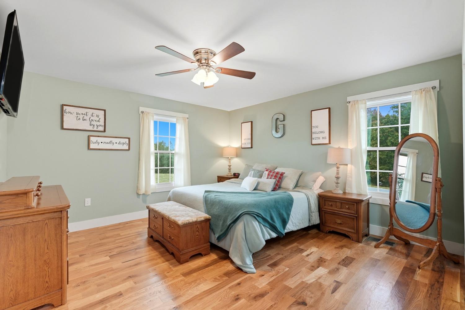 This farmhouse sits atop a hill that provides mile wide views, AMAZING SUNSETS & PRIVACY ~ 1860 sq ft DETACHED SHOP with leanto ~ 63+ ACRES ~ bring your animals to graze the lush green pastures or get ready to see wildlife galore on this hunters dream property! The home could be the perfect place to homestead or it could be enjoyed as a hunters lodge paradise. Garden spots, pastures for food plots or animals, CREEK, pond for watering livestock and wildlife ~ HOUSE features: HARDWOOD FLOORING, HARDWOOD CEILINGS, LARGE FRONT & BACK PORCHES, STAINLESS STEEL APPLIANCES, OVERSIZED KITCHEN ISLAND, SHAKER STYLE DOORS, RECESSED PANEL CABINETS, POCKET DOOR, TILE FLOORING, GRANITE COUNTERTOPS, OPEN FLOORPLAN, 4 BEDROOMS, FULL HEATED AND COOLED BASEMENT (SEMI-FINISHED), ALTERNATIVE HEAT SOURCE FOR EXTREME CONDITIONS (HEAT MASTER) 3 GARAGE SPACES