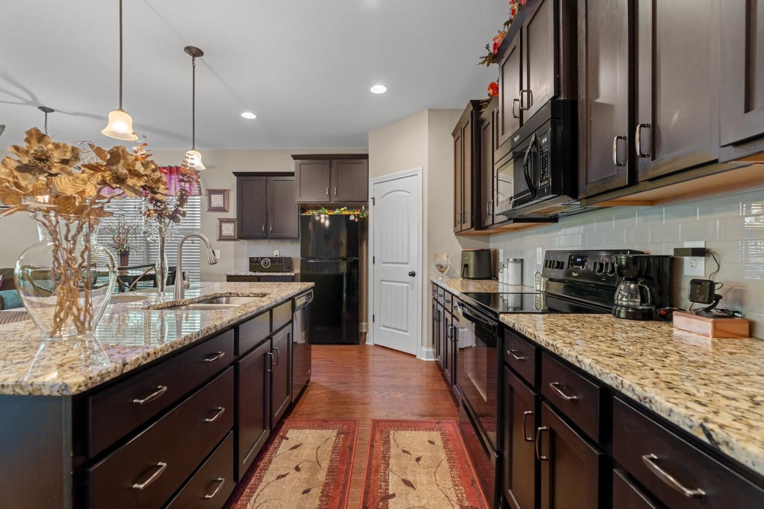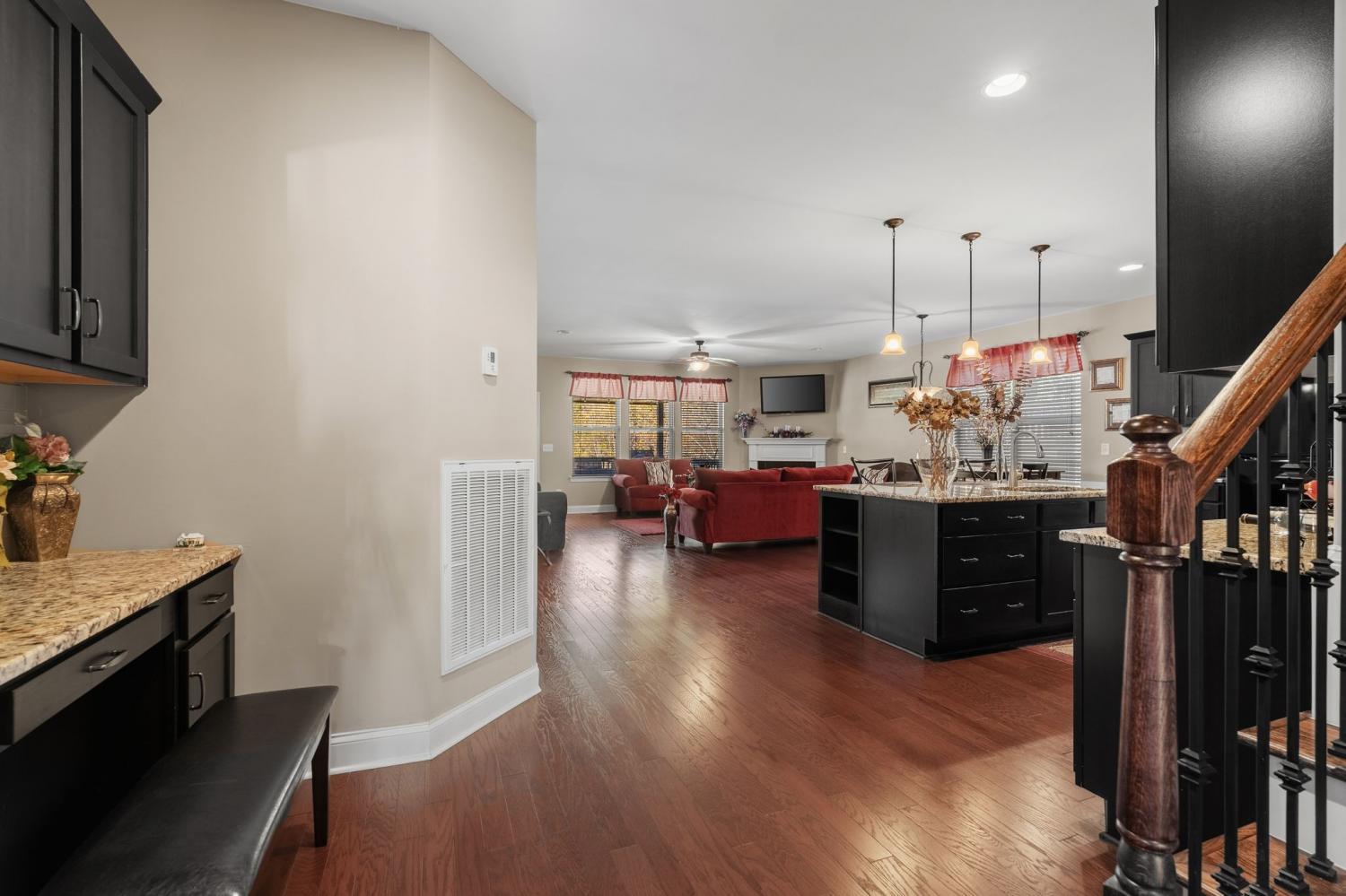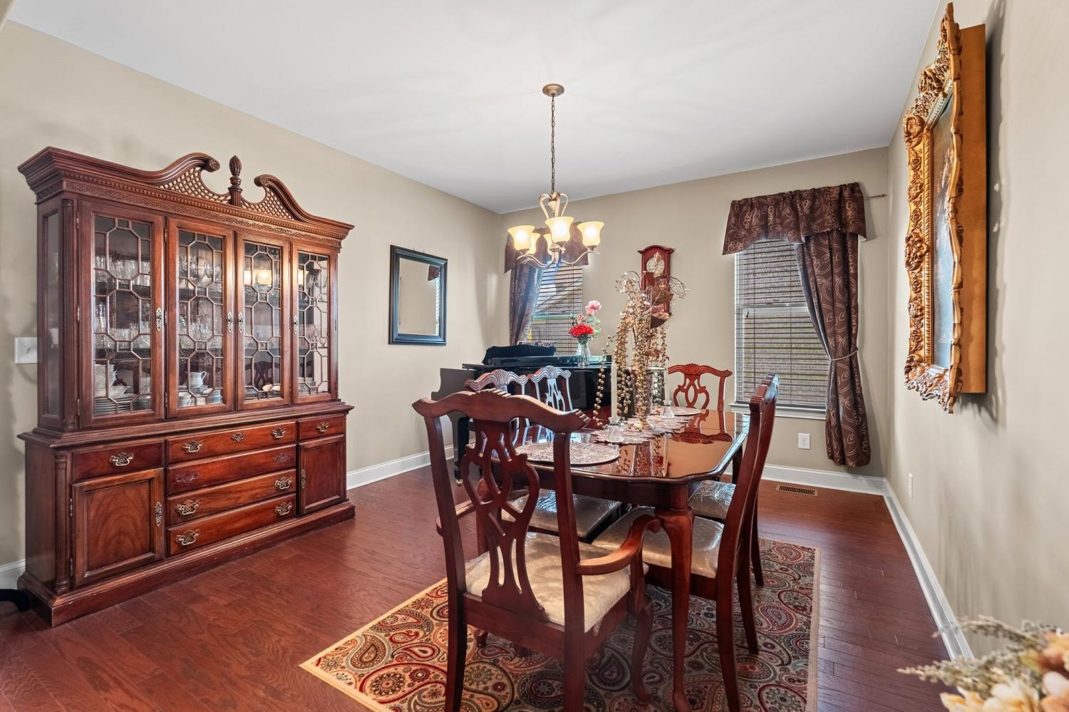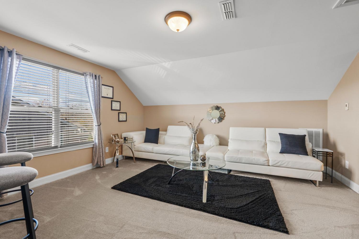 Tollgate Village in Thompson's Station is known for the lifestyle amenities desired by so many!!! Fabulous pool, clubhouse, fitness center all connect to greenway that meanders through the hills and valleys along with Thompson's Station Community Garden and Mars Dog Park nearby. Restaurants, medical offices, retail, adjacent high school and community lake make this area a place to call home!! This immaculate home offers 2 beds on the main level plus a separate dining room that can convert to a 3rd bedroom or office, built-in desk area, open concept kitchen and den, with views of common space in cul-de-sac behind the covered back deck. Upstairs, you will find another bedroom, full bath, and bonus room, great for guests' privacy, or teenager dream space! Amenities include saltwater pools, volleyball, pickleball courts, and the occasional food truck!!