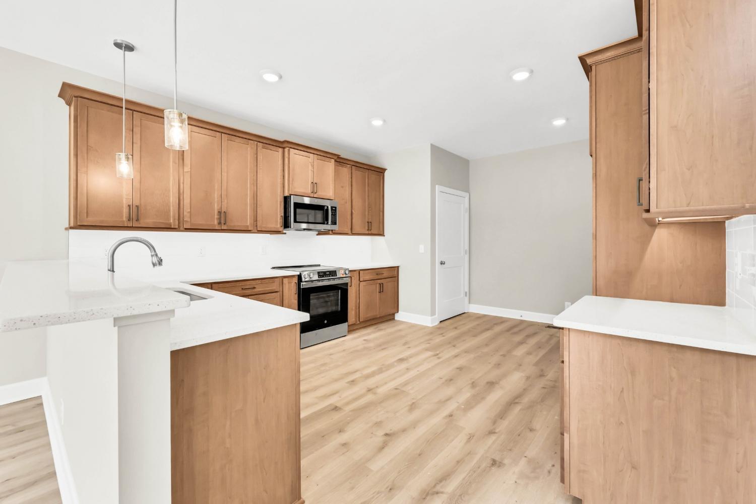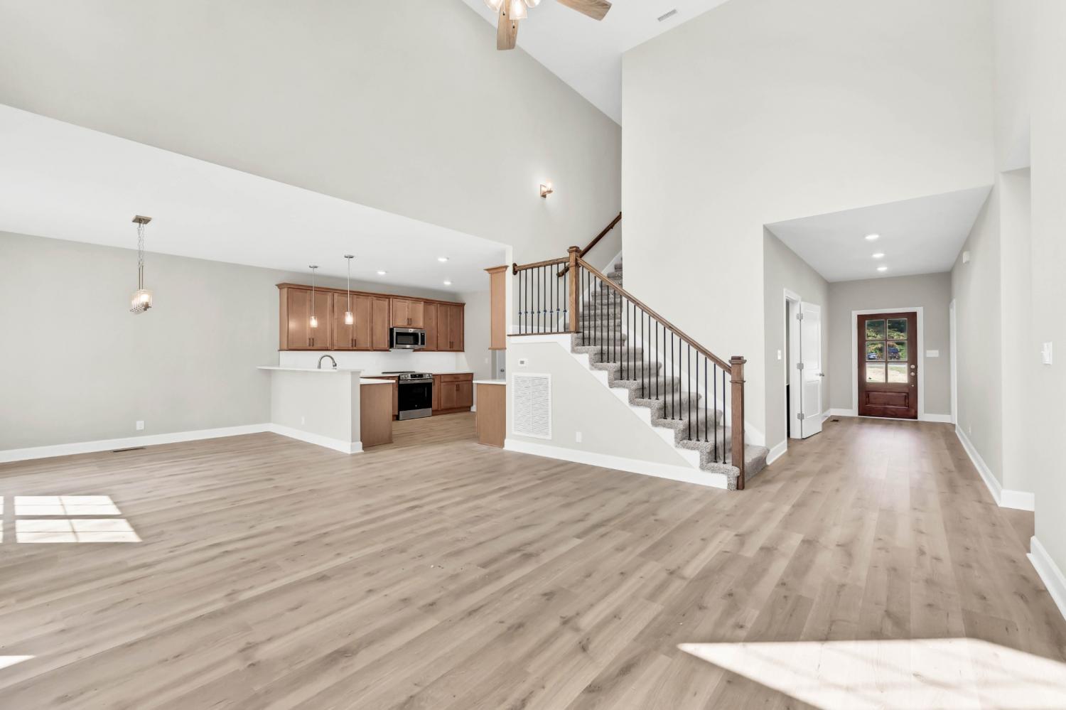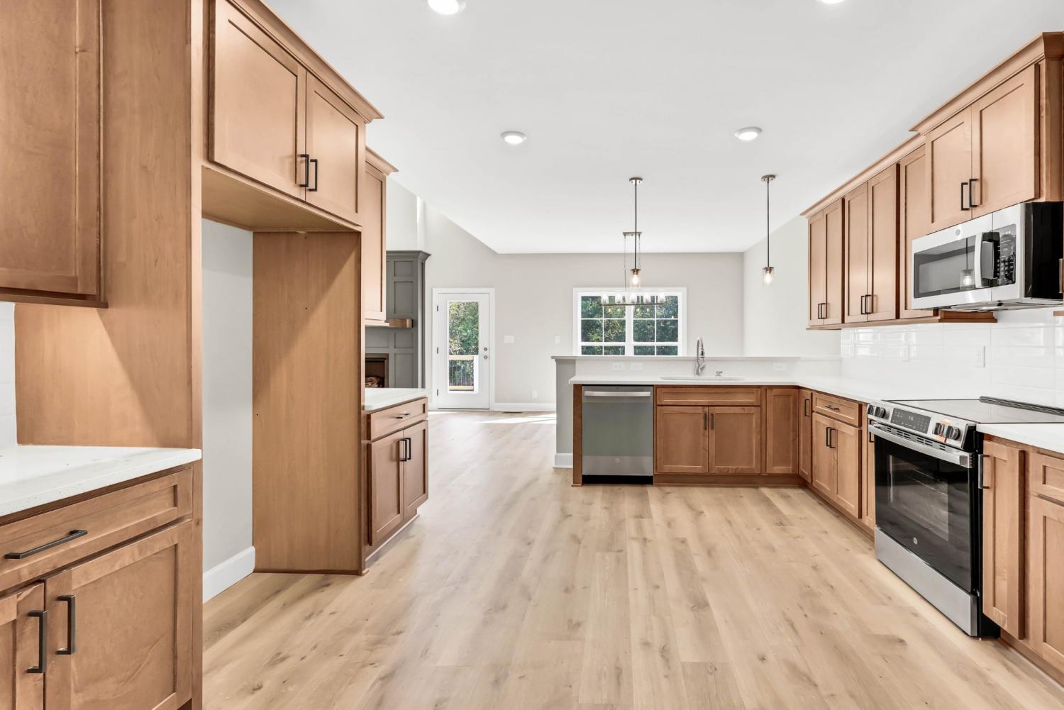 Welcome to the "Quickley" by BRM Homes, a stunning new construction home designed for modern living. Upon entry, you are greeted by an inviting living room and dining room combination, perfect for entertaining. The kitchen is a chef's dream, boasting quartz countertops, ample cabinet storage, and stainless appliances. On the main floor, you'll find a spacious primary bedroom. The primary bath also features double vanities, a standalone tub, shower cave, and walk-in closet. Additionally, there is a conveniently located spare bedroom and a full bathroom just off the entry. A true laundry room adds everyday convenience. Upstairs, you'll find two additional spare bedrooms with generous closet space, as well as a bonus room with full bath—perfect for a game room, guest suite, or office.