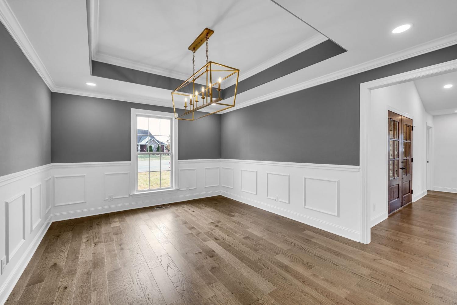 Come see this beautiful new build in the coveted Garden Gate neighborhood! This home flows so well! You walk into the beautiful wooden doors to a vaulted family room. The family room will have a beautiful wooden beam down the center with overhead lighting and chandelier in the center. Not only is the room open and bright but it will have a beautiful stone fireplace with custom made built ins on either side. The dining room off the den is large enough to host family or friends and boasts beautiful moldings. The kitchen is off of the den and will have beautiful cabinetry and is open to the family room creating a perfect scene for hosting or just being able to interact with family while cooking in your beautiful kitchen! The rec room is a short distance up the stairs and is vaulted and spacious. Will be a perfect playroom, media room, teen room. The bedrooms are spacious with beautiful large bathrooms! Must see!