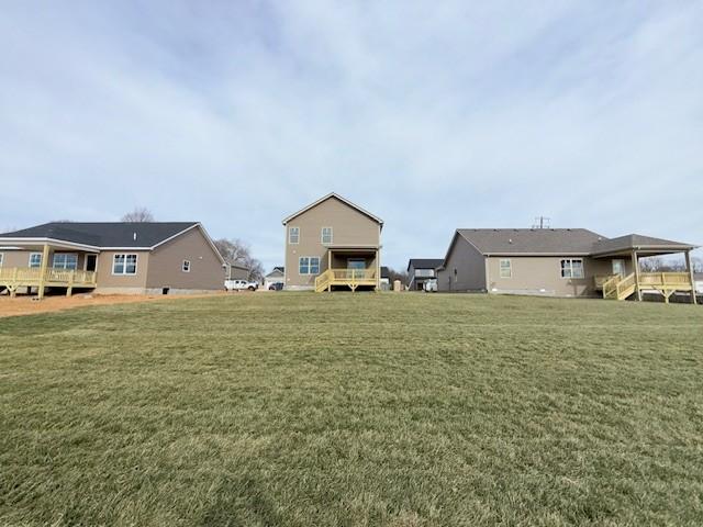 Experience the perfect blend of style, functionality, and contemporary comfort in this beautifully crafted new-construction two-story home offering 3 bedrooms and 2.5 baths. From the moment you step inside, the thoughtfully designed layout creates a warm and inviting atmosphere ideal for both everyday living and entertaining, enhanced by durable and stylish LVP flooring throughout the entire first floor. The open-concept main level is anchored by a stunning kitchen that truly serves as the heart of the home. Quartz countertops, ample cabinetry, and a spacious pantry provide exceptional workspace and storage for cooking and hosting. Stainless steel appliances—including a stove, oven, dishwasher, and microwave—complete the sleek, modern look while delivering dependable performance. Step outside to enjoy the covered back deck overlooking a large backyard with full sod—perfect for outdoor dining, play, or simply relaxing in your private outdoor space. Upstairs, all bedrooms and the laundry room are conveniently located on the second floor, creating a functional and private living arrangement. The spacious primary suite offers a peaceful retreat with a tray ceiling, a generous walk-in closet, and a private en-suite bathroom featuring a walk-in shower. The additional bedrooms are versatile and ideal for family, guests, a home office, or hobby space. With quality finishes, modern construction, and a layout designed for today’s lifestyle, this home provides an outstanding opportunity to enjoy brand-new living in a beautifully built space. Whether you’re hosting friends, enjoying quiet evenings at home, or starting a new chapter, this inviting property delivers the perfect place to call home—just minutes from Wade’s Way City Park for added outdoor enjoyment.