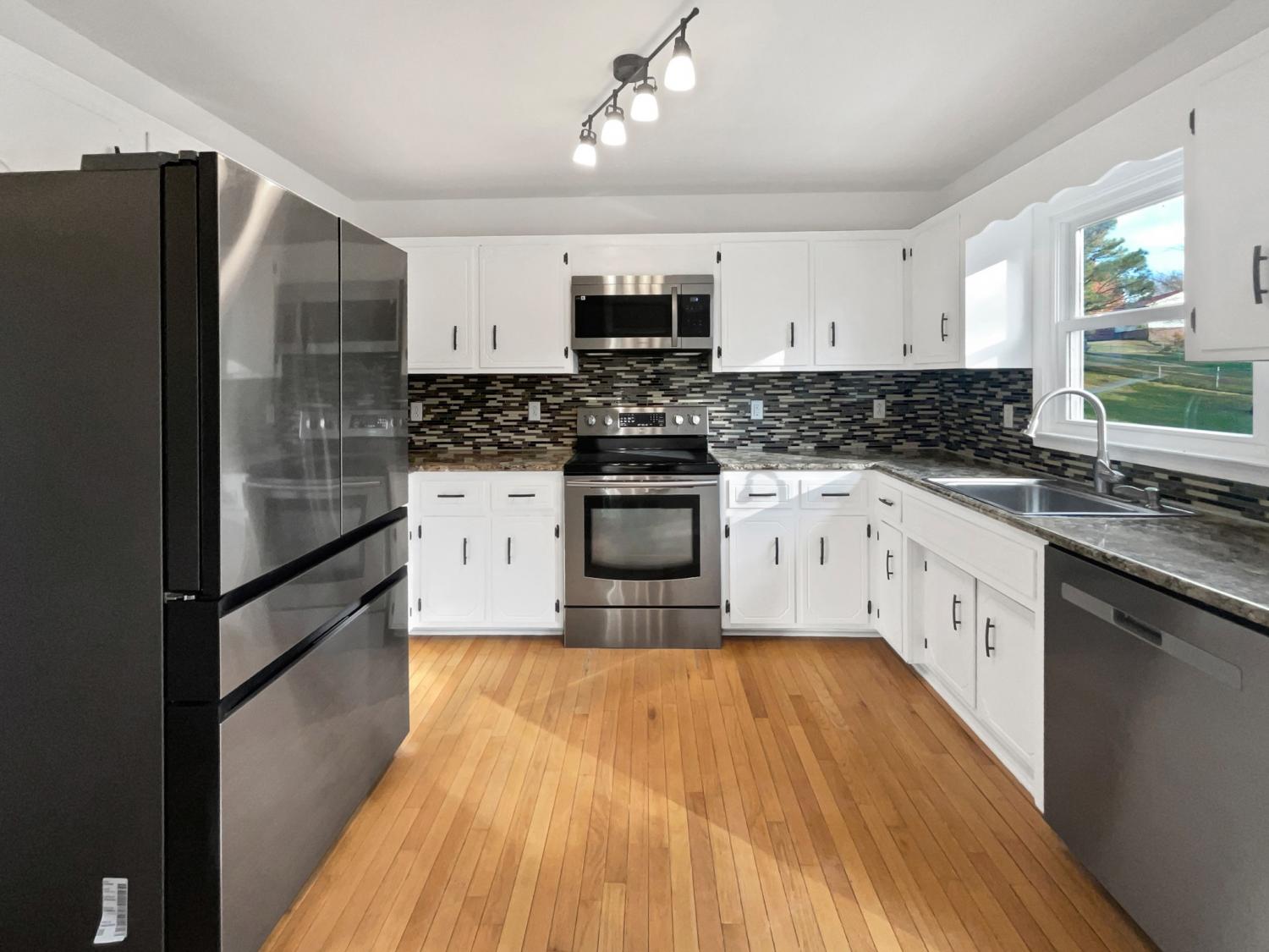 Stunning open-concept home featuring a bright white kitchen with a beautiful backsplash and stainless-steel appliances. Enjoy plenty of storage throughout, making organization effortless. Step outside to a large deck overlooking a privacy-fenced backyard—perfect for relaxing or entertaining.
