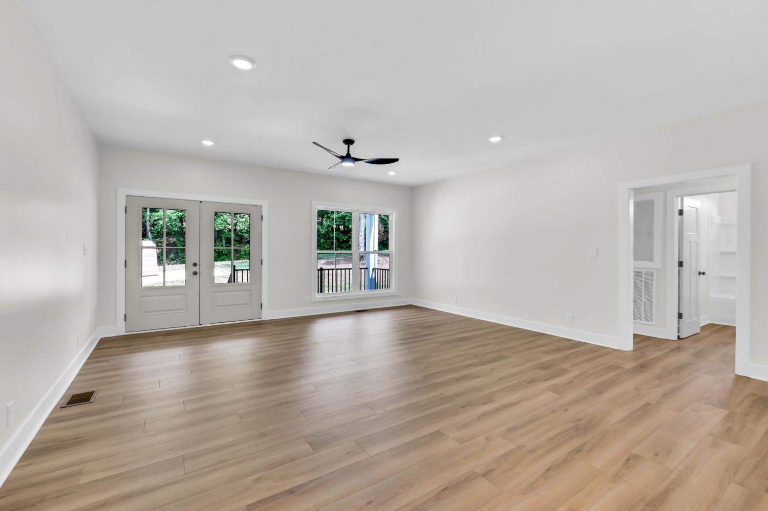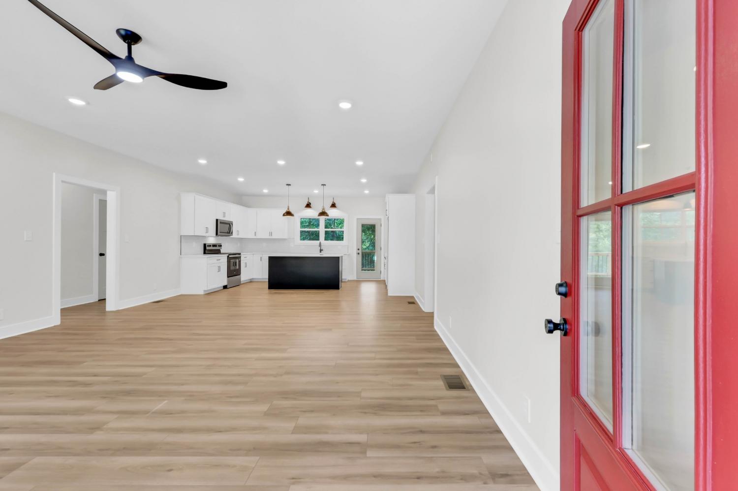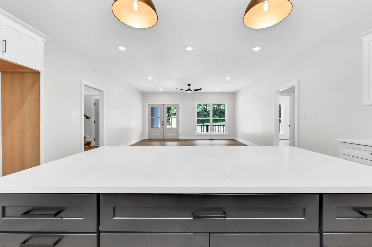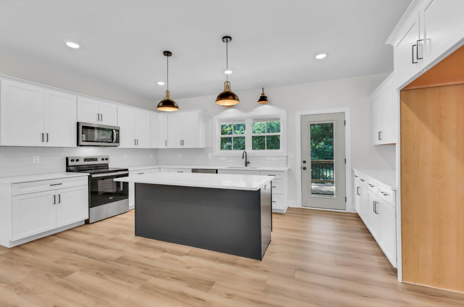 Tucked into a wooded retreat on 1.71 acres, this 2,552 sq.ft. RENCO-built home offers space, style, and a perfect connection to nature. With 3 bedrooms, 3 full baths, and thoughtful design throughout, this one checks every box. Step inside to find a crisp, modern interior—complete with white cabinetry, a navy island centerpiece, quartz countertops, and a sleek tiled backsplash. The spacious living area offers an open flow and great natural light, while the sliding barn door and tiled shower bring in that extra layer of charm. The main-level layout features generous bedrooms and baths, but upstairs you’ll find the true bonus: a massive flex room with dormer windows and character-rich ceilings—ideal for a playroom, guest suite, office, or all of the above. Out back, enjoy a deep covered deck that overlooks your private, tree-lined acreage with a natural creek running through. Whether you're sipping coffee while the deer walk by or hosting summer get-togethers, this is country living with convenience and craftsmanship. No HOA. Just peaceful land, modern comforts, and a builder who delivers every time.