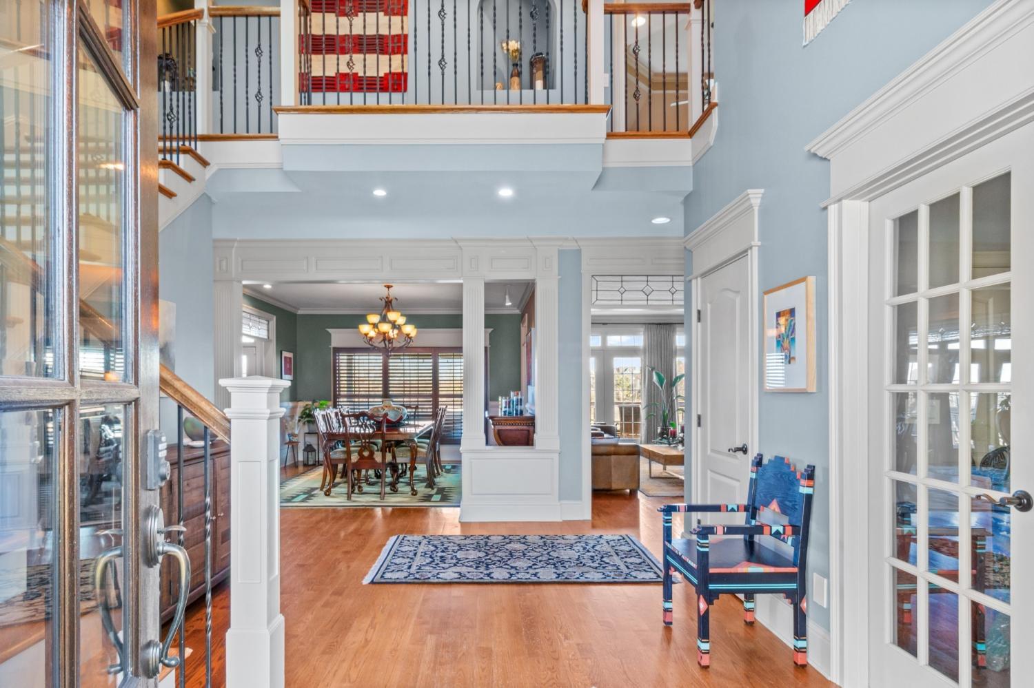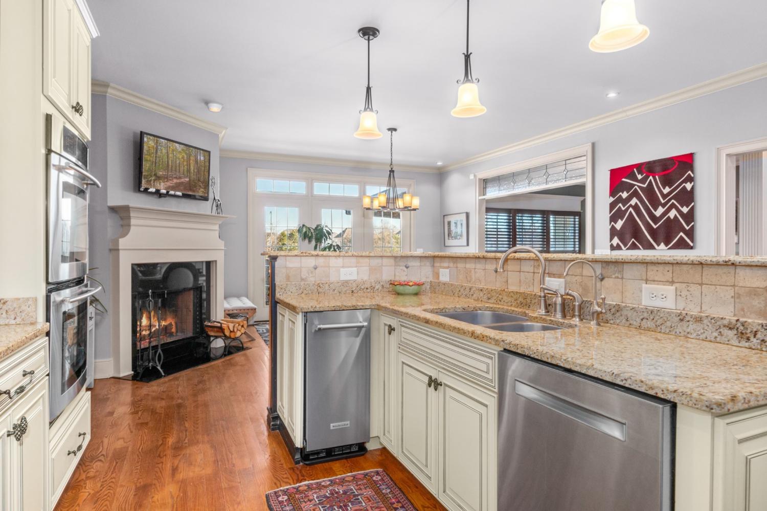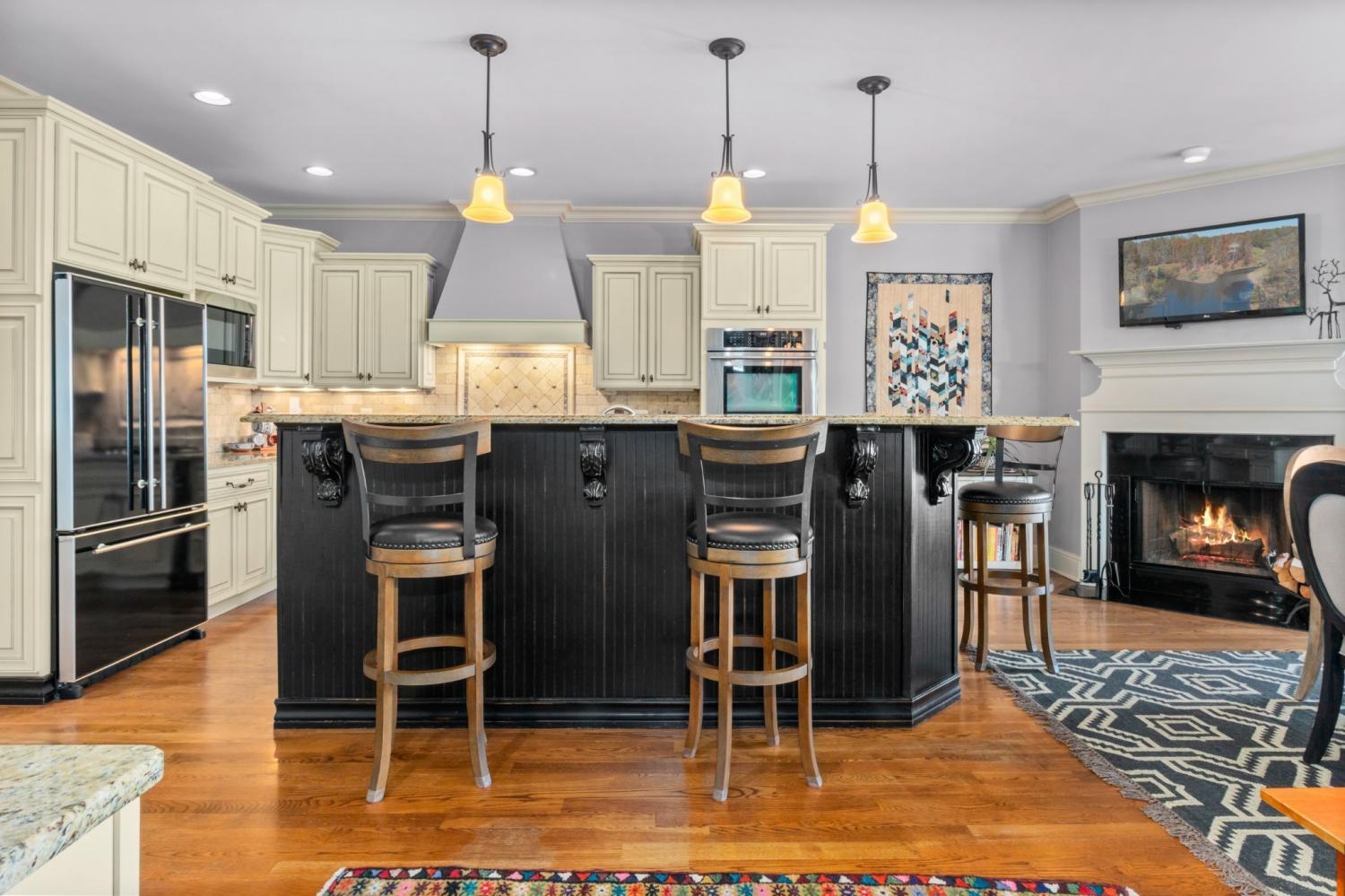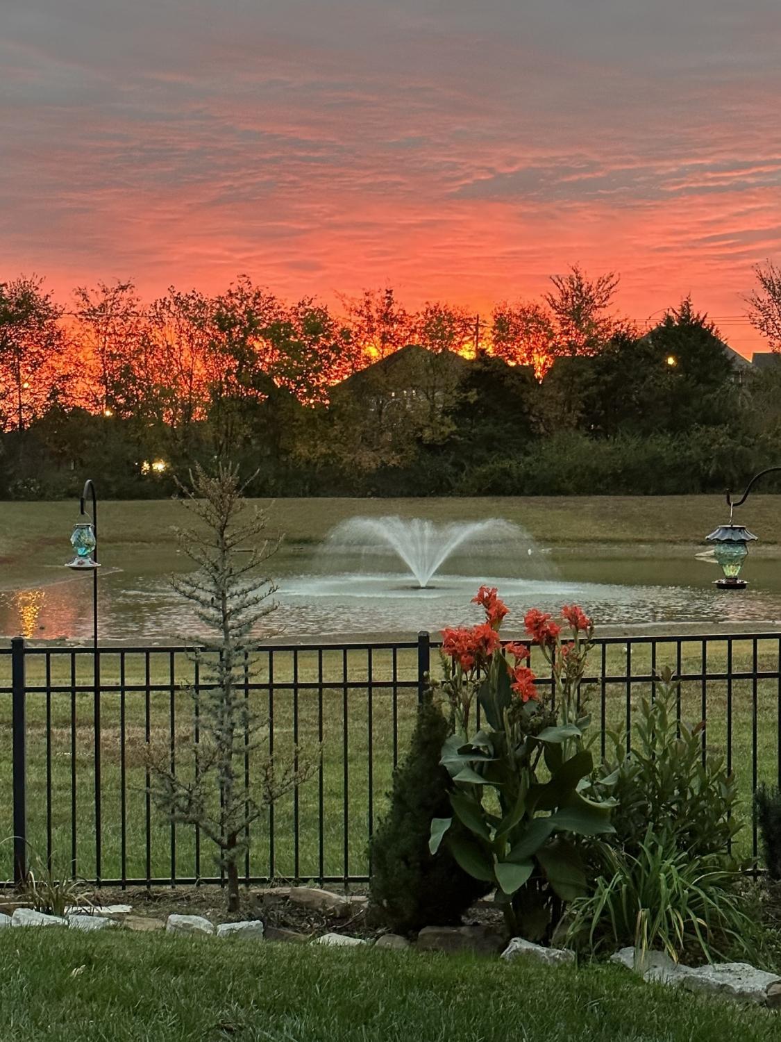 Beautifully Landscaped Brick Home with a View! This home features stunning sunrise views over the pond from floor to ceiling windows, beautiful wood floors and custom cabinetry throughout. The main floor has a 2-story entry opening to an open floor plan that includes a spacious living room with gas fireplace, formal dining room and even an eat-in kitchen with a wood-burning fireplace! You will also find a large pantry, Jenn-air cooktop, double ovens and ice maker in this lovely kitchen. Also on the main floor is the utility room and an office.Upstairs you will find a guest room with an en-suite bath and a Jack and Jill bedroom sharing a full bath. Then there is the Primary Suite Retreat! Only Wow can describe this luxurious space! Huge bedroom with trey ceiling and great view of the pond with its lighted fountain. Adjoining spa like bath has jetted tub, large shower and wrap around vanity with double sinks, then there is the closet of your dreams! Moving to the finished, walk-out basement and you will see an historical bar, large bonus/media room with access to the back yard, 2 bedrooms, one of which adjoins the brand new full bath and has access to the back yard. There is a sink, microwave and wine refrigerator, very large storage area and a maintenance room/shop area with refrigerator, built-in cabinets for projects and tool storage. What a great space! All this in a fantastic location! This gem combines luxurious living, gorgeous views and many thoughtful interior upgrades. Don’t miss it!
