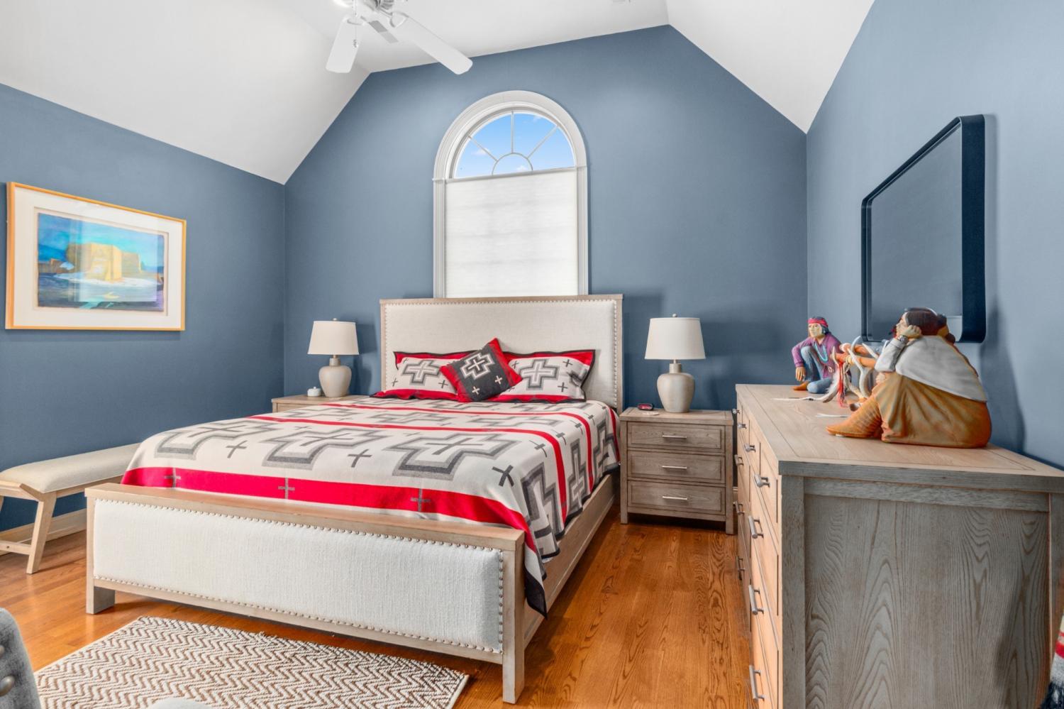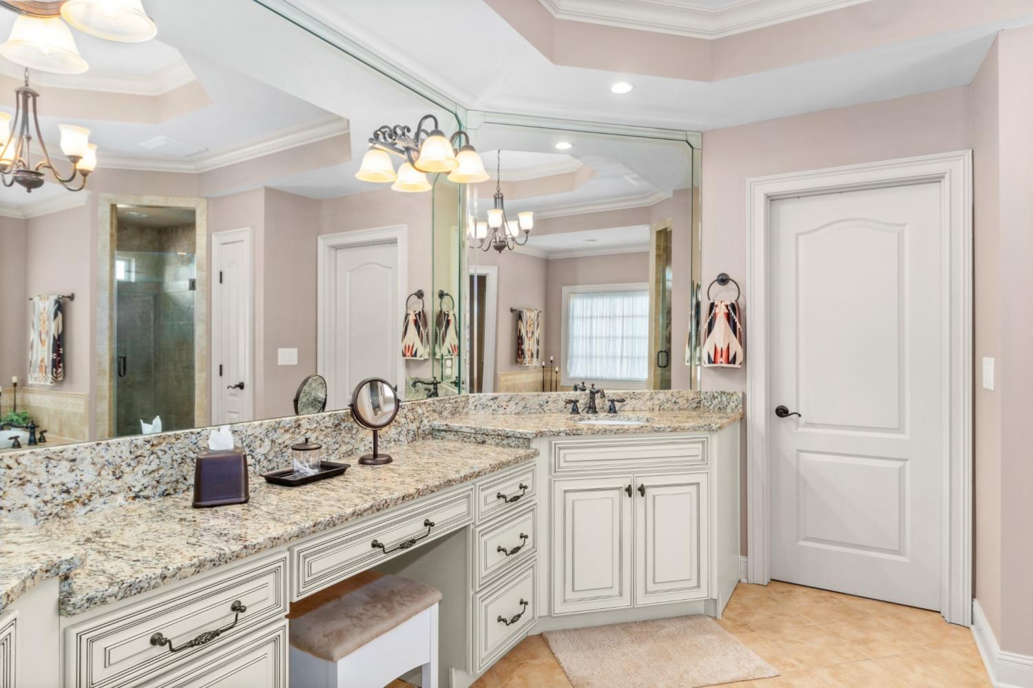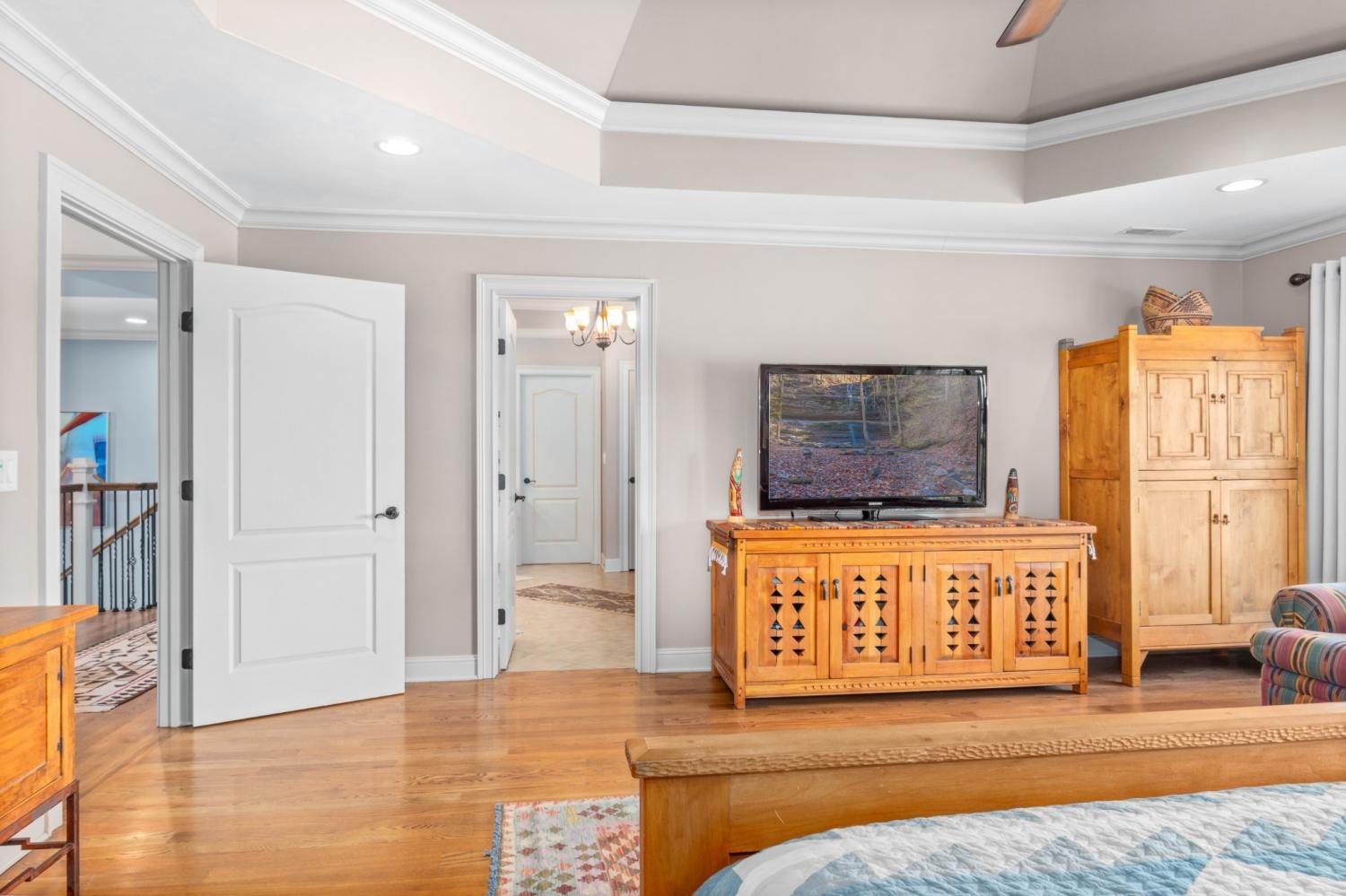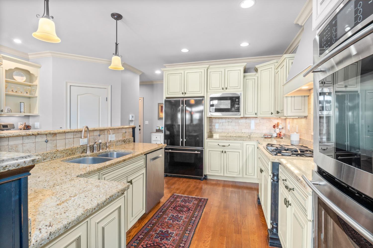Beautifully Landscaped Brick Home with a View! This home features stunning sunrise views over the pond from floor to ceiling windows, beautiful wood floors and custom cabinetry throughout. The main floor has a 2-story entry opening to an open floor plan that includes a spacious living room with gas fireplace, formal dining room and even an eat-in kitchen with a wood-burning fireplace! You will also find a large pantry, Jenn-air cooktop, double ovens and ice maker in this lovely kitchen. Also on the main floor is the utility room and an office.Upstairs you will find a guest room with an en-suite bath and a Jack and Jill bedroom sharing a full bath. Then there is the Primary Suite Retreat! Only Wow can describe this luxurious space! Huge bedroom with trey ceiling and great view of the pond with its lighted fountain. Adjoining spa like bath has jetted tub, large shower and wrap around vanity with double sinks, then there is the closet of your dreams! Moving to the finished, walk-out basement and you will see an historical bar, large bonus/media room with access to the back yard, 2 bedrooms, one of which adjoins the brand new full bath and has access to the back yard. There is a sink, microwave and wine refrigerator, very large storage area and a maintenance room/shop area with refrigerator, built-in cabinets for projects and tool storage. What a great space! All this in a fantastic location! This gem combines luxurious living, gorgeous views and many thoughtful interior upgrades. Don’t miss it!