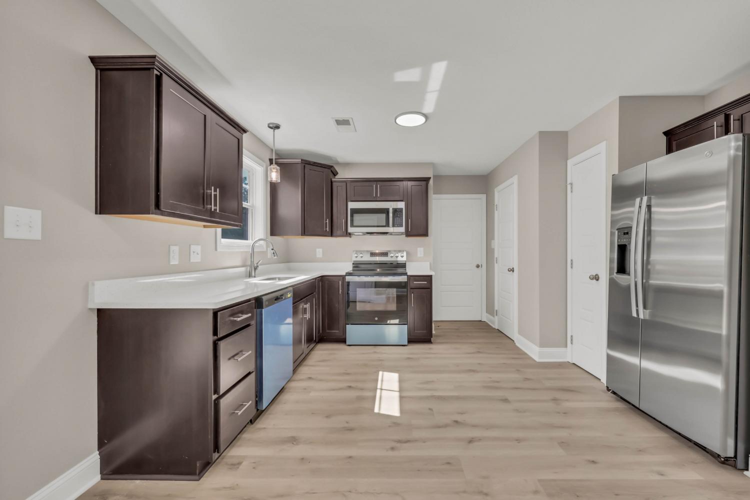 Stunning new construction in the heart of Oak Grove, KY just minutes from Fort Campbell, I-24, and all the conveniences of town. This beautiful home blends modern style with everyday comfort, offering a thoughtful layout and quality finishes throughout. Step inside the generously sized living room just off the open kitchen featuring sleek stainless appliances, elegant stone countertops, a pantry, plentiful cabinetry, a deep sink, and a gooseneck spray nozzle. The spacious primary bedroom is its own retreat, showcasing a massive walk-in closet, abundant natural light, and a tray ceiling, plus a second closet for extra storage. A two-car garage comes upgraded with epoxy floors and an insulated garage door, adding durability and comfort. The large laundry room, conveniently placed off the kitchen with direct access to the garage, makes daily routines easy. Outside, the fully sodded front and backyard offer a clean, finished look from day one. Seller is also offering concessions, making this an even better opportunity to secure a brand new home in a rapidly growing area.