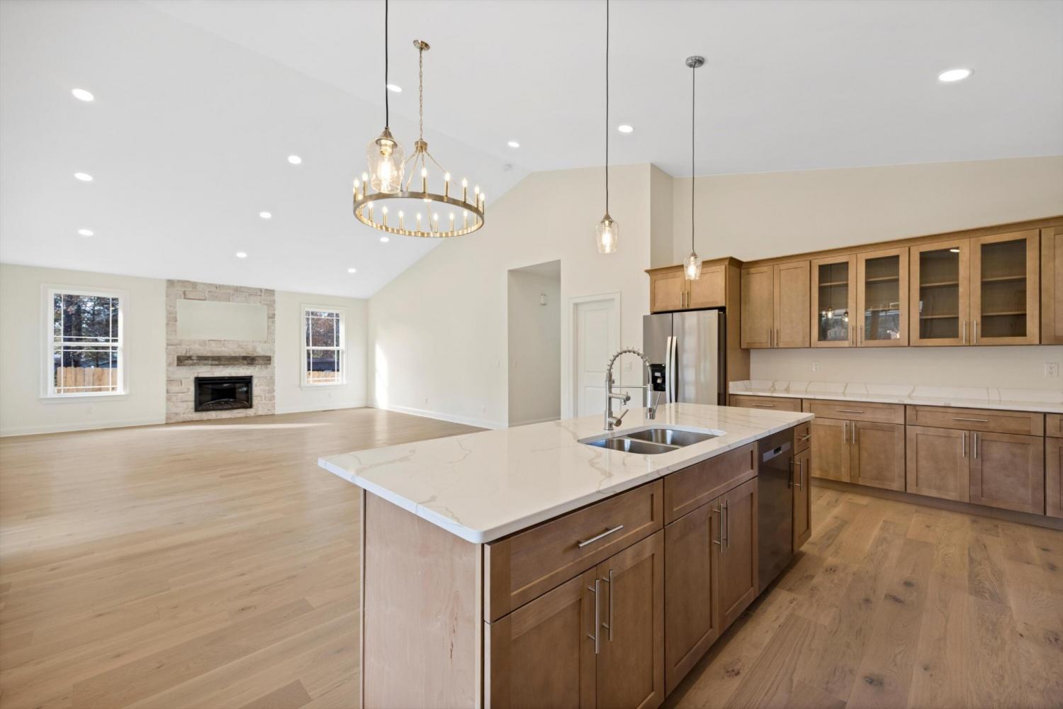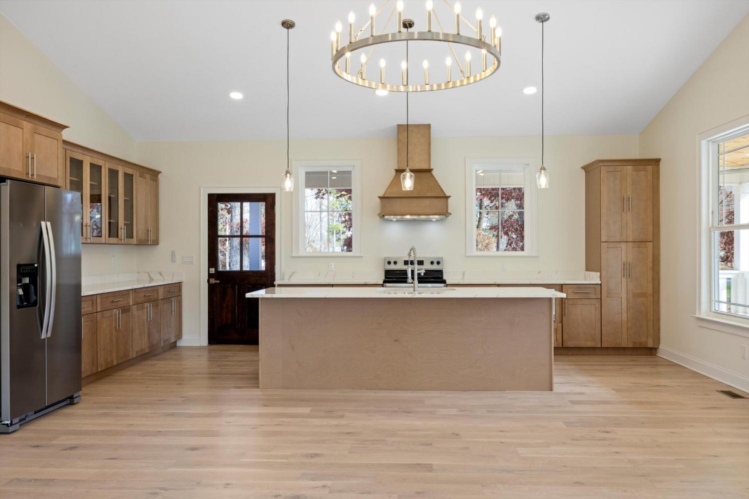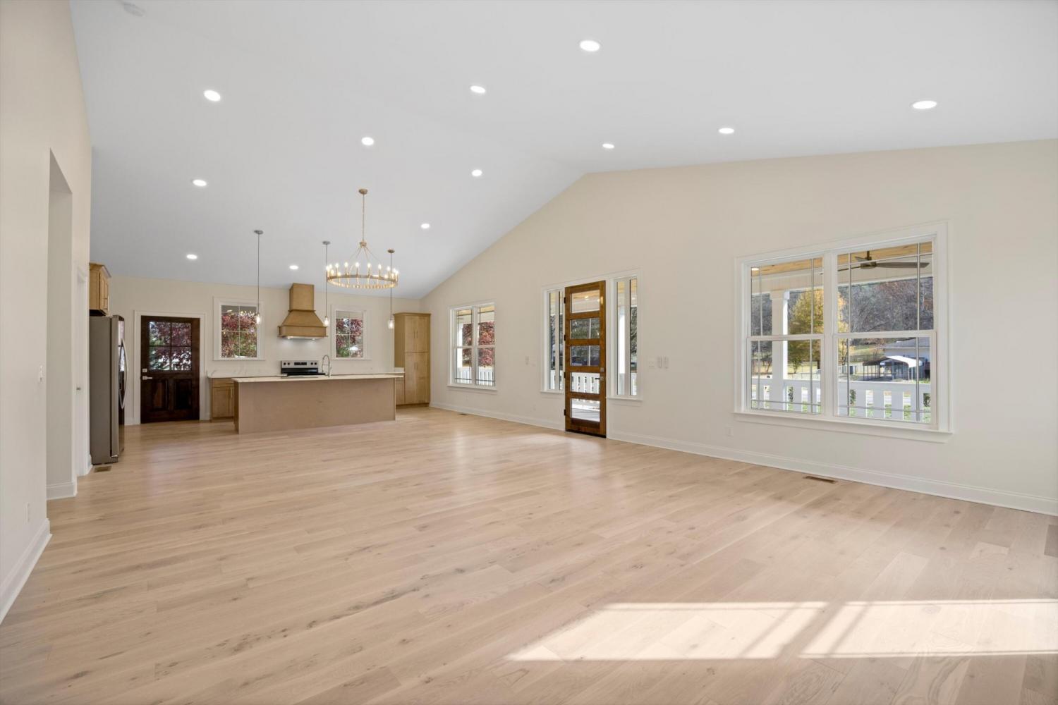 New Construction Modern Farmhouse. Welcome to this stunning 2025-built modern farmhouse, where thoughtful design meets timeless craftsmanship. Offering 2,380 sq ft of bright, open living space, this 4-bedroom, 3-full-bathroom home delivers the perfect blend of luxury and everyday comfort. Step inside to soaring vaulted ceilings and an abundance of natural light cascading across wide-plank hardwood floors. The heart of the home is the expansive great room, anchored by a striking stone fireplace with a custom mantel — ideal for cozy evenings or entertaining on a grand scale. Flow seamlessly into the gourmet kitchen featuring an oversized island with seating, quartz countertops, a custom wood hood, stainless steel appliances, and a walk-in pantry. A spacious dining area and adjacent living room create the ultimate open-concept layout everyone desires. The split-bedroom floor plan ensures privacy. The serene primary suite is a true retreat with tray ceilings, a spa-like ensuite boasting dual vanities, a fully tiled walk-in shower, and an enormous walk-in closet. Three additional generously sized bedrooms (one with its own ensuite bath) and a third full bathroom provide flexibility for family, guests, or a home office. Luxurious finishes throughout, matte black fixtures, designer lighting, and warm wood accents. Oversized 2-car garage (23'11'' × 25'0'') Covered front porch with tongue-and-groove ceiling and ceiling fans — perfect for rocking-chair mornings. Private lot with fenced backyard and plenty of room to add a pool, shop, or garden. Energy-efficient construction and low-maintenance exterior (Hardie + stone). Conveniently located just minutes from Ringgold's charming downtown, top-rated schools, and quick access to Chattanooga (20 minutes) and Dalton, this home offers peaceful country living without sacrificing accessibility. Brand new, never lived in, and ready for you to make it home. Schedule your private showing today — this one won't last long!