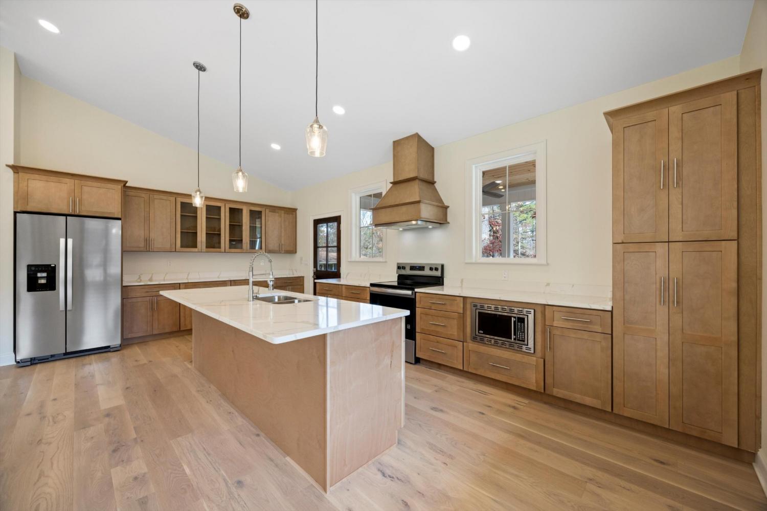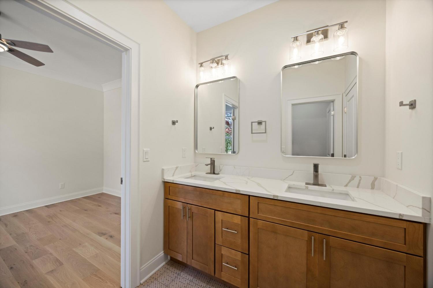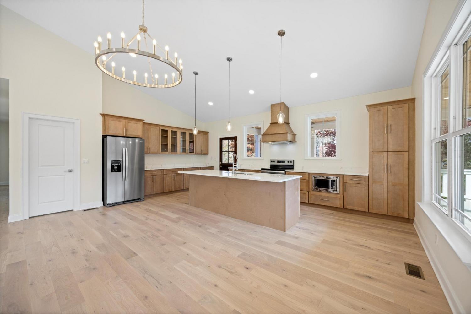 New Construction Modern Farmhouse. Welcome to this stunning 2025-built modern farmhouse, where thoughtful design meets timeless craftsmanship. Offering 2,380 sq ft of bright, open living space, this 4-bedroom, 3-full-bathroom home delivers the perfect blend of luxury and everyday comfort. Step inside to soaring vaulted ceilings and an abundance of natural light cascading across wide-plank hardwood floors. The heart of the home is the expansive great room, anchored by a striking stone fireplace with a custom mantel — ideal for cozy evenings or entertaining on a grand scale. Flow seamlessly into the gourmet kitchen featuring an oversized island with seating, quartz countertops, a custom wood hood, stainless steel appliances, and a walk-in pantry. A spacious dining area and adjacent living room create the ultimate open-concept layout everyone desires. The split-bedroom floor plan ensures privacy. The serene primary suite is a true retreat with tray ceilings, a spa-like ensuite boasting dual vanities, a fully tiled walk-in shower, and an enormous walk-in closet. Three additional generously sized bedrooms (one with its own ensuite bath) and a third full bathroom provide flexibility for family, guests, or a home office. Luxurious finishes throughout, matte black fixtures, designer lighting, and warm wood accents. Oversized 2-car garage (23'11'' × 25'0'') Covered front porch with tongue-and-groove ceiling and ceiling fans — perfect for rocking-chair mornings. Private lot with fenced backyard and plenty of room to add a pool, shop, or garden. Energy-efficient construction and low-maintenance exterior (Hardie + stone). Conveniently located just minutes from Ringgold's charming downtown, top-rated schools, and quick access to Chattanooga (20 minutes) and Dalton, this home offers peaceful country living without sacrificing accessibility. Brand new, never lived in, and ready for you to make it home. Schedule your private showing today — this one won't last long!