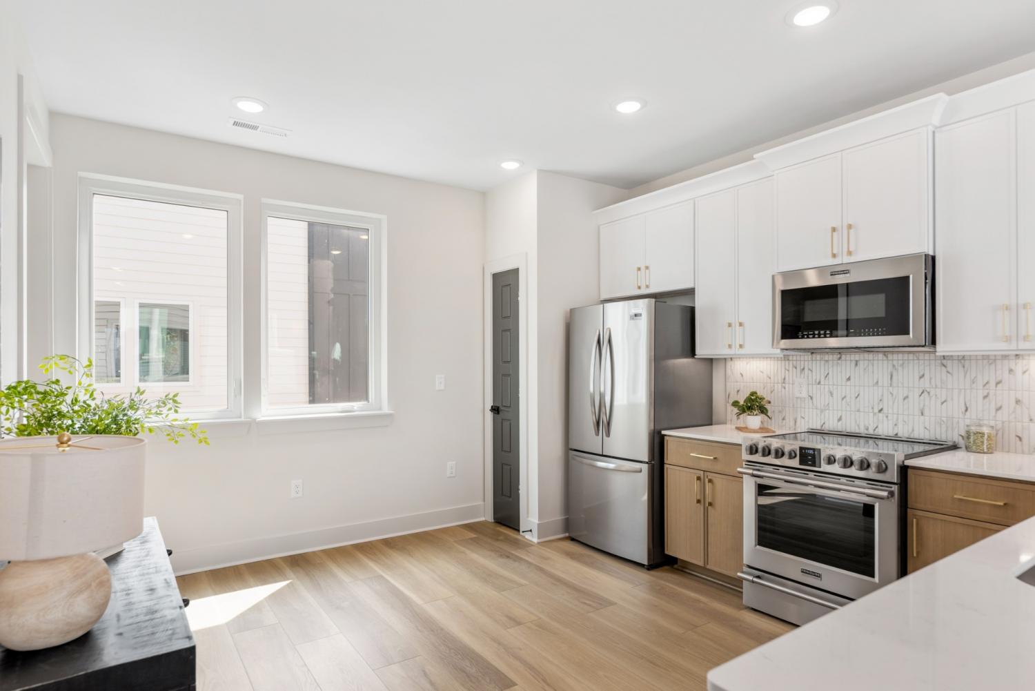 HUGE PRICE REDUCTION! + 1% Preferred lender credit with Erin Milstead with CMG Home Loans towards closing costs or rate buy down. Vivian Lux is an exclusive boutique community of eight luxury new-construction homes in vibrant East Nashville—only four remain. This beautiful 4 bed, 4 bath home spans three levels with 1,894 sq. ft. Curated by CLK Designs, the interior features a warm, elevated designer palette. The kitchen showcases striking white cabinetry, white quartz countertops, a bold statement backsplash, brushed brass fixtures, and premium Frigidaire Professional Line appliances—including a microwave with built-in air-fryer functionality. Light oak LVP flooring flows throughout, and each spacious bedroom offers a cozy, private retreat. All bathrooms feature quartz countertops and beautifully detailed tilework. The showstopper is the expansive rooftop deck with panoramic downtown skyline views—complete with hot-tub hookups, and the option to add a private hot tub for just $5,000. A one-car garage adds security and convenience, with additional guest parking onsite. Future amenities include a pickleball court and a putting green. Perfectly positioned on East Trinity Lane, you’ll enjoy quick access to Ellington Parkway and major highways, plus walkability to East Nashville favorites: Osa Coffee, Fox Bar, Grimeys, Attaboy, Folk, Pharmacy Burger, and essentials like Turnip Truck and Publix. Outdoor lovers will appreciate proximity to Shelby Bottoms and South Inglewood Park. This property is perfect for a primary resident, or 30+ day renter, long term renter and could be a perfect 1031 exchange opportunity.