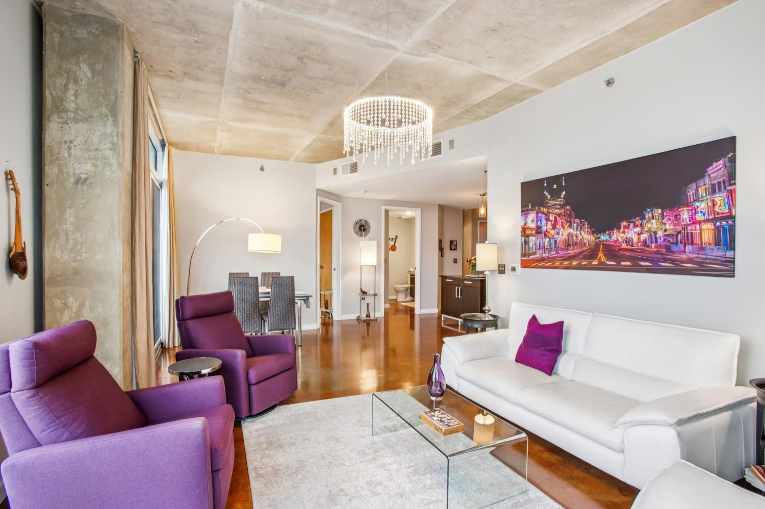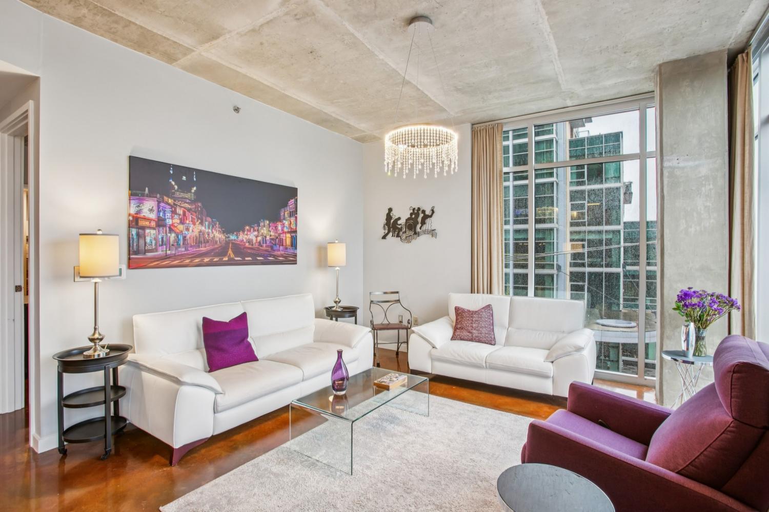 Beautiful CORNER unit looking towards Belmont with breathtaking sunset views! Don't miss out on this well maintained rare corner unit! Two-parking spaces convey valued at $30,000 each, located in an enclosed, secure and gated garage. Easy access to the interstate and to downtown hot spots. Walkable neighborhood to top-rated roof top bars, boutique shops, and top notch restaurants! Within walking distance to many retail & clothing shops, nail salons, and Turnip Truck Grocery Store with Whole Foods 5 minutes down the street on Broadway. One of the quietest neighborhoods in Downtown Nashville after 10 pm. Amenities: 24/7 concierge service that receives & holds packages and sends owners notifications that they have arrived, and are available for pick up, state-of-the-art fitness centers, two swimming pools with lounge areas, outdoor grill stations, dog park, various community lounge areas, yoga studio, conference room, notary service, multiple elevators so no long waits, large freight elevator to help with deliveries and to move in/out of building!