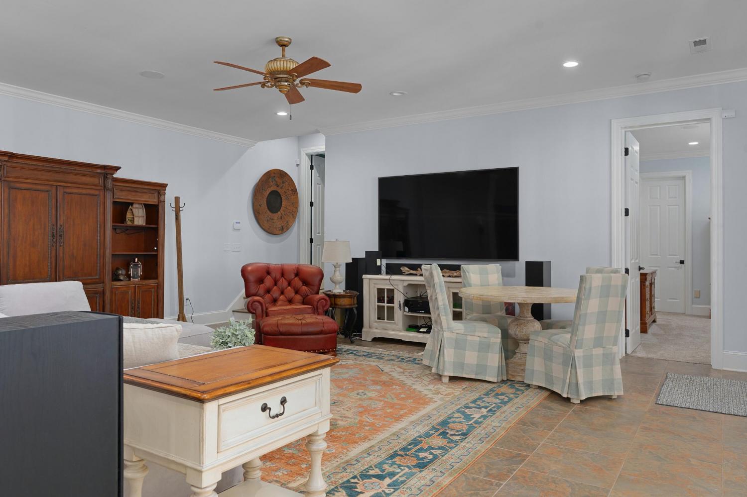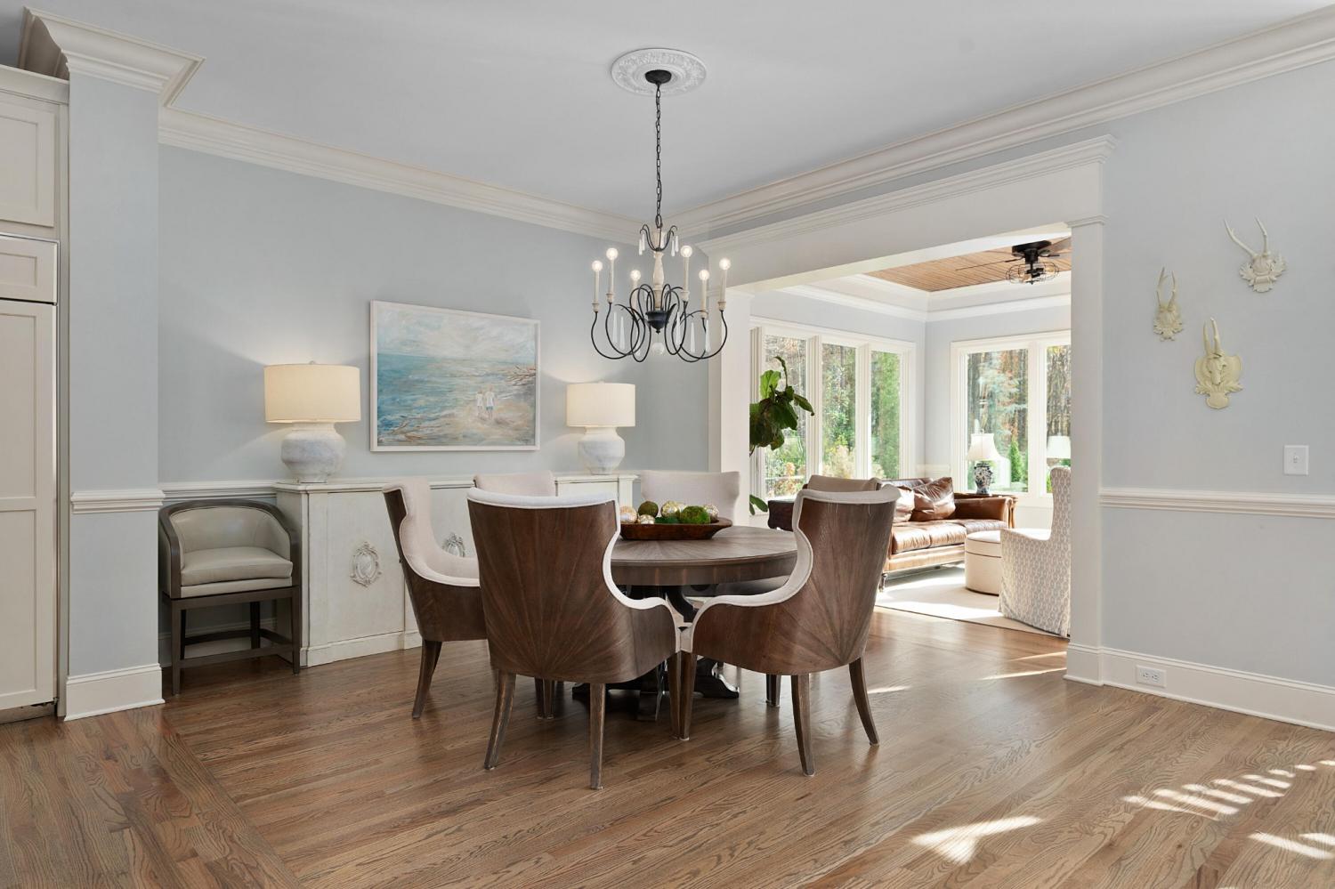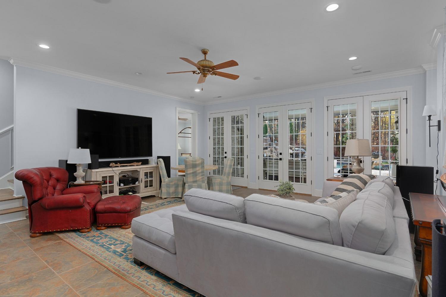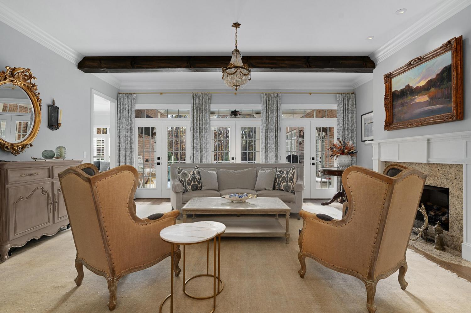 Fantastic opportunity in the exclusive gated Thunder Farms neighborhood in the heart of Ooltewah. This 8 bedroom, 8.5 bath stately brick home is perfectly positioned at the end of a cul-de-sac on 2 partially wooded lots totaling 7.86 +/- acres and boasting a 4-bay garage on the main and a utility garage on the lower level. Recently featured in CityScope Magazine the home has a new heated saltwater Gunite pool with a spa, waterfall, new patio areas and a gas firepit enhancing your outdoor living and entertaining experience year-round. Some additional notable improvements include fencing, a new roof in October 2025, a whole house Generac generator, remodeled gourmet kitchen and laundry/mudroom, a water filtration system in the new kitchen beverage center, a retractable chandelier in the foyer, interior painting, electronic HVAC filters and a dehumidifier system, and 3 of the 4 HVAC units have been replaced in the last 2 years. You will also appreciate the elegant crown moldings and detailed trim, hardwood floors throughout the main level, plantation shutters, 2 tankless/instant hot water heaters, 2 central vacuum units, and a great floor plan with an open layout and 2 bedroom suites on the main level including the luxury primary suite which is a retreat unto itself. Your tour begins with the dramatic 2-story foyer that has access to the powder room and opens to both the dining room and the formal living room. The dining room is spacious enough for all of your family heirlooms, and the living room is inviting with a gas fireplace and 3 sets of French doors to the rear patio which overlooks the new pool, back yard and the partially wooded grounds. The living room adjoins the keeping room which also has a gas fireplace and opens to the breakfast room, sunroom and kitchen. The sunroom will quickly become a favorite spot in the house with its warm natural lighting, brick accent walls and views of your private back oasis.