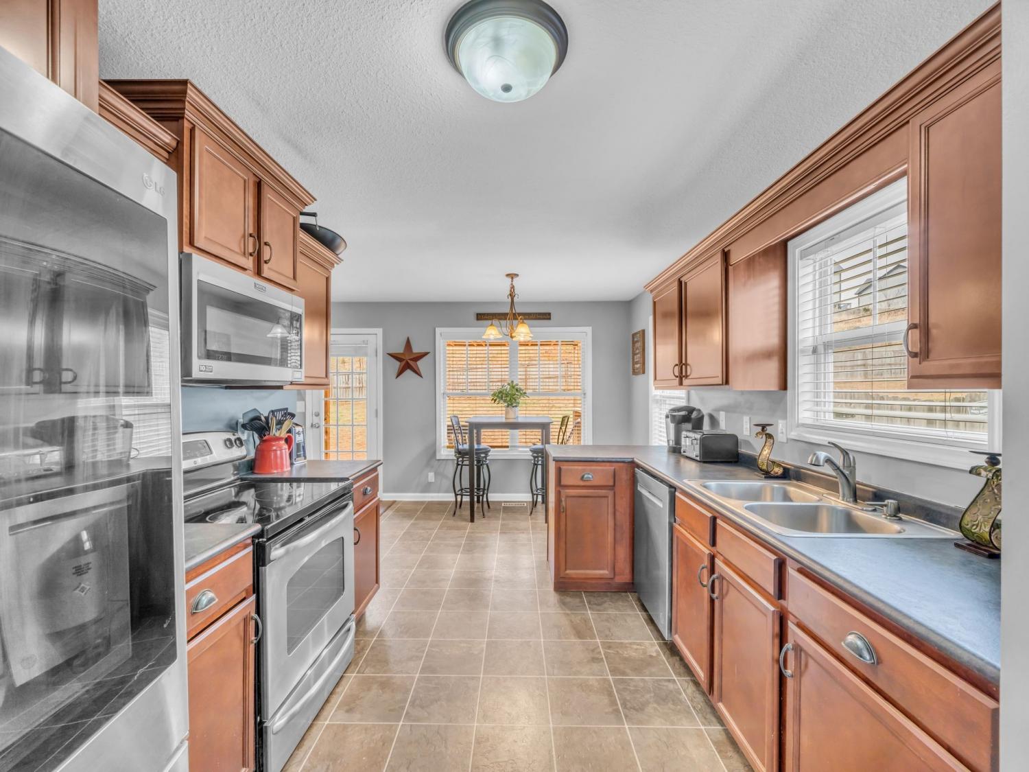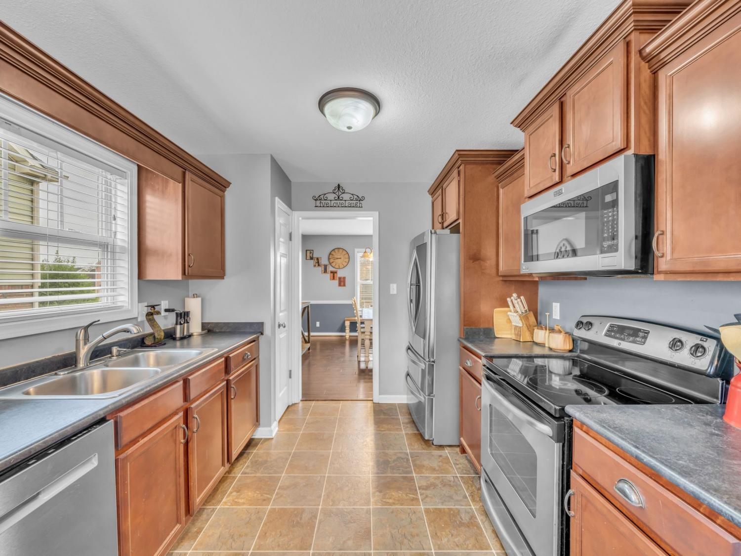Motivated Sellers! Plenty of space for everyone in this wonderful split level home w/ private fenced yard, cozy living room propane fireplace, stainless steel appliances, breakfast nook as well as formal dining for entertaining, 3 beds/2 full baths upstairs and 1 bed/1 full bath downstairs w/ bonus/rec room/man cave and laundry room and 2 car garage. The primary bedroom has a trey ceiling, walk-in closet and attached bath with dual vanities. Brand new laminate floors downstairs. Large new storage shed, grill, garage racks, tv brackets, & Vivint security system to remain. Lot size extends beyond backyard fence. This home not only has it all, but is conveniently located minutes from post and shopping in a quiet neighborhood tucked away in the heart of Ringgold Estates and best yet - no HOA! Sellers to provide professional cleaning and re-seeding the back lawn. Don't miss this one today!