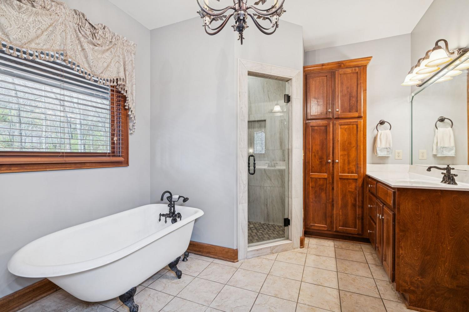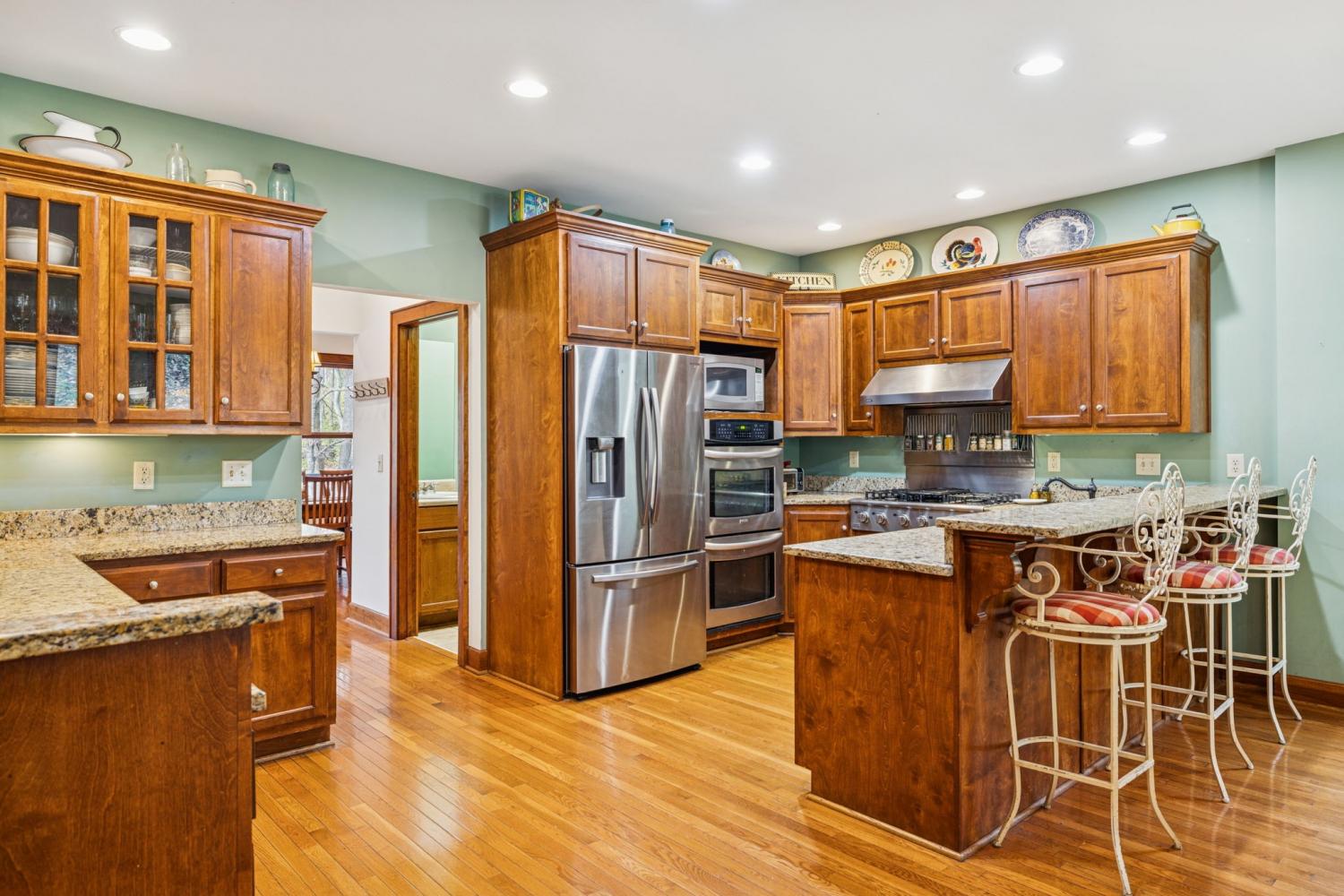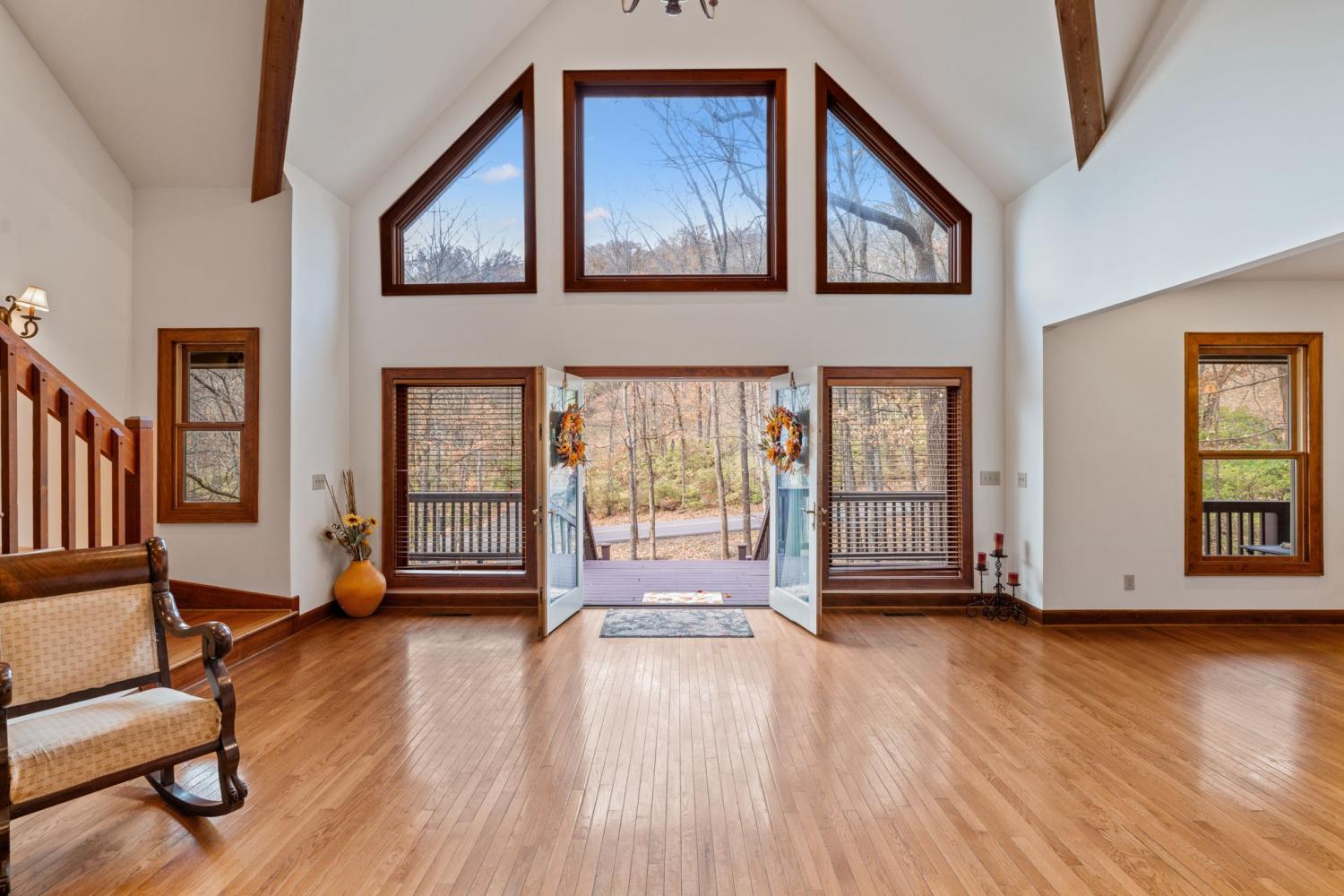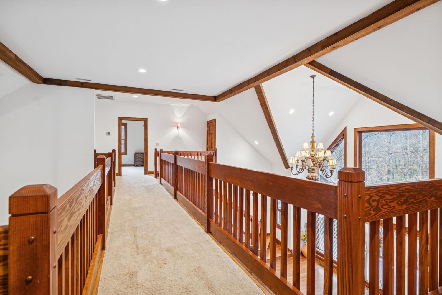 Discover this custom-built 3-bedroom, 4.5-bath home—a serene and secluded escape nestled on 1.65 wooded acres, yet just minutes from top-rated schools, shopping, dining, and offices. Enjoy the best of both worlds with easy access to historic Franklin and a quick 20-minute drive to downtown Nashville. As you approach the full-length cedar front porch, you’ll feel as though you’re among the treetops. Step inside to an open, light-filled interior featuring a soaring cathedral ceiling that extends from the glass entryway to the rear wall anchored by a stunning stone fireplace. The main level showcases rich hardwood floors throughout, including a spacious great room open to the dining area, kitchen, and breakfast room. The well appointed kitchen features double ovens, a gas cooktop, a breakfast/snack bar island, and a second island ideal for entertaining. Step out from the great room onto the covered back porch and take in the peaceful views and visiting wildlife. The main-level primary suite offers a true retreat with dual walk-in closets, a large walk-in shower, and a soaking tub. Upstairs, two generous en-suite bedrooms each provide privacy, large closets, and additional storage. The lower-level features 10-foot ceilings, a spacious recreation room, a full bath, a versatile flex space perfect for a gym or office, and ample storage. The oversized 3-car garage provides even more room for your vehicles, hobbies, and equipment. 2304 N Berrys Chapel is more than a home—it’s a peaceful, private sanctuary perfectly positioned for convenience, comfort, and natural beauty.
