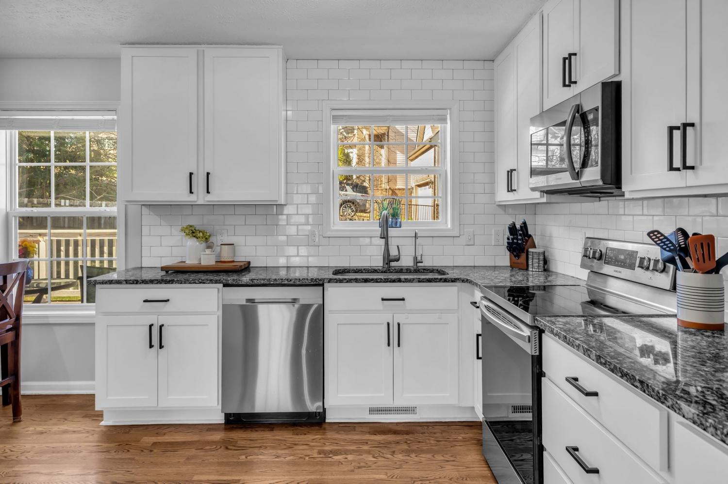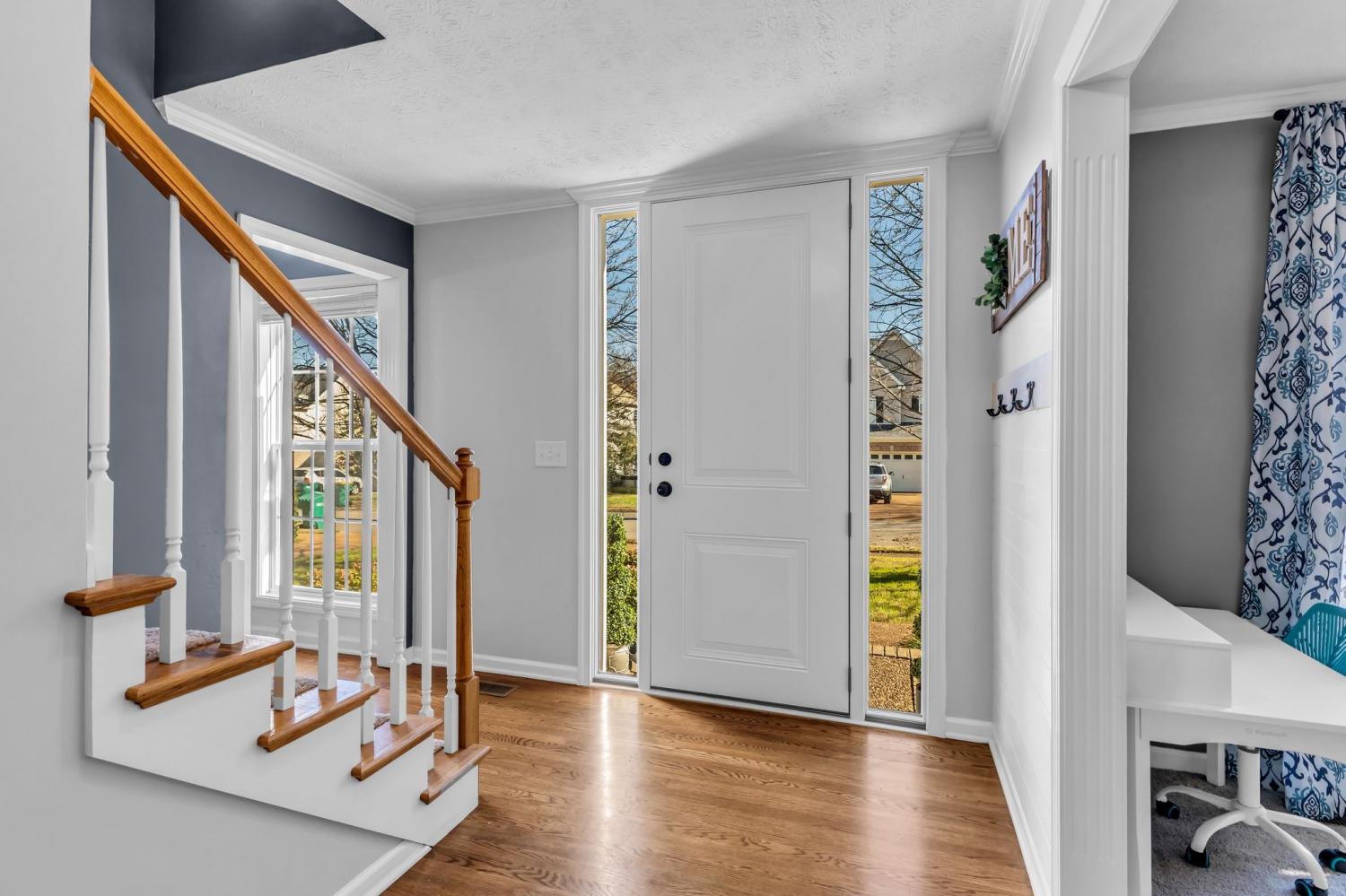Beautiful 2-story home in Wyngate Estates located on a quiet street with a large level lot! Renovated kitchen in 2021 with all new cabinetry, granite counters and stainless appliances! Great layout with 3BR + bonus + first floor den/office and a private multi-use room off the primary suite behind Hide-A-Way bookcase doors. New front and back doors in 2025. HVAC replaced 2020. Roof and gutters replaced 2021. Tankless water heater. Tesla level 2 car charger. Rare side entry garage with large parking area and a fenced backyard with room to run! Tons of value packed into this wonderful Williamson County home.